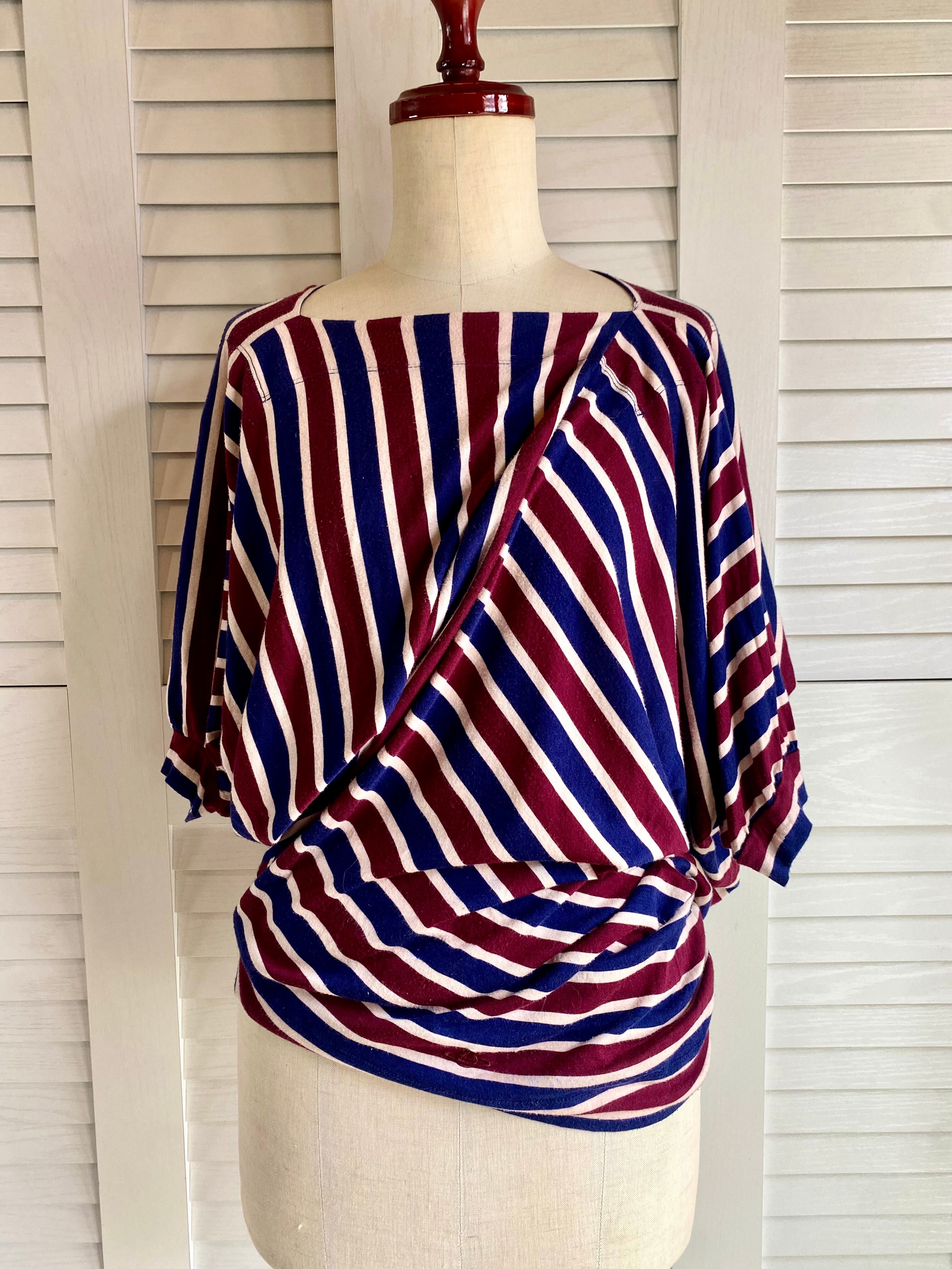 #3 Vivienne Westwood ブリティッシュストライプ 変形デザインカットソー ネイビー×エンジ【キズ有りB品】