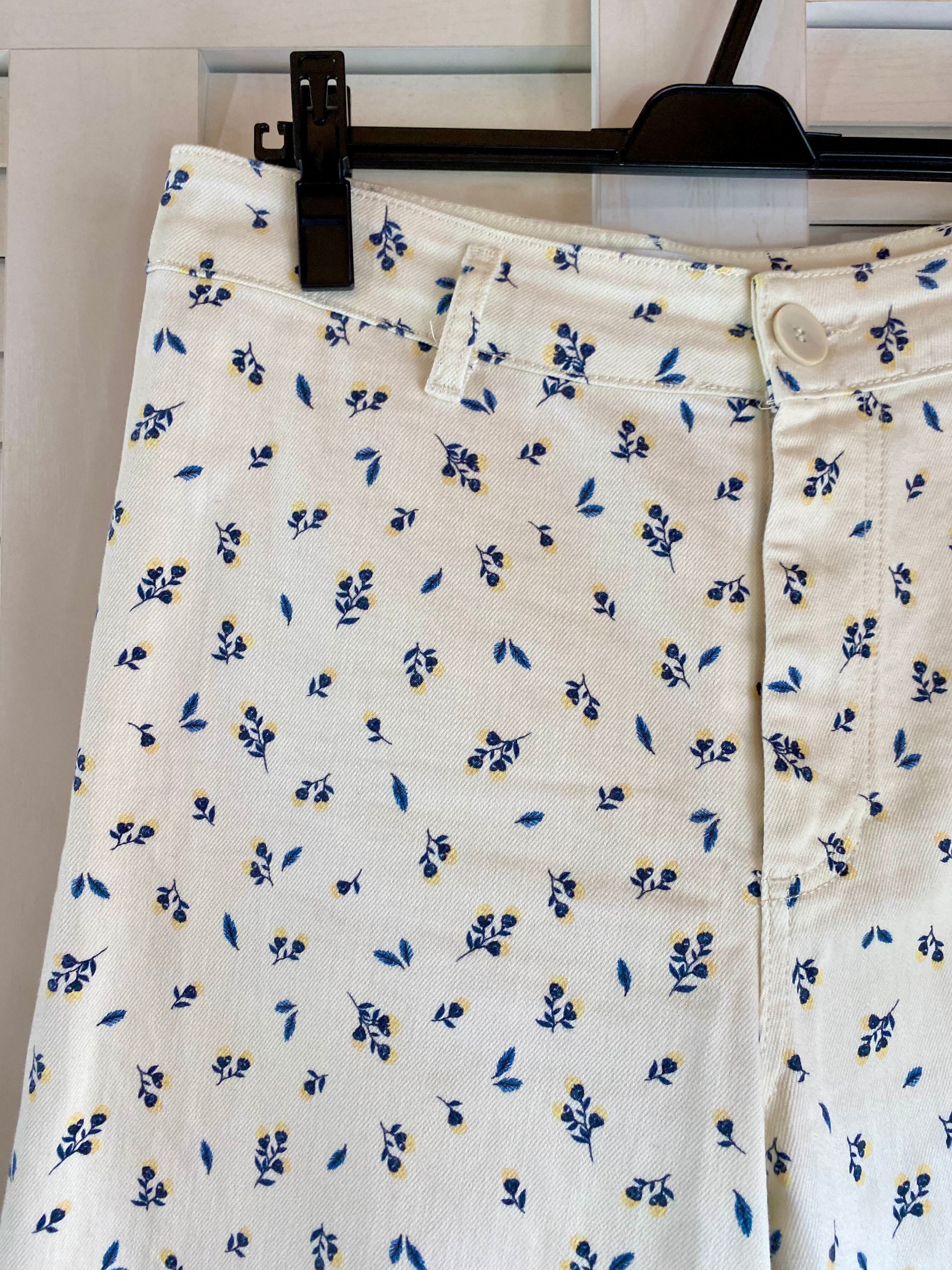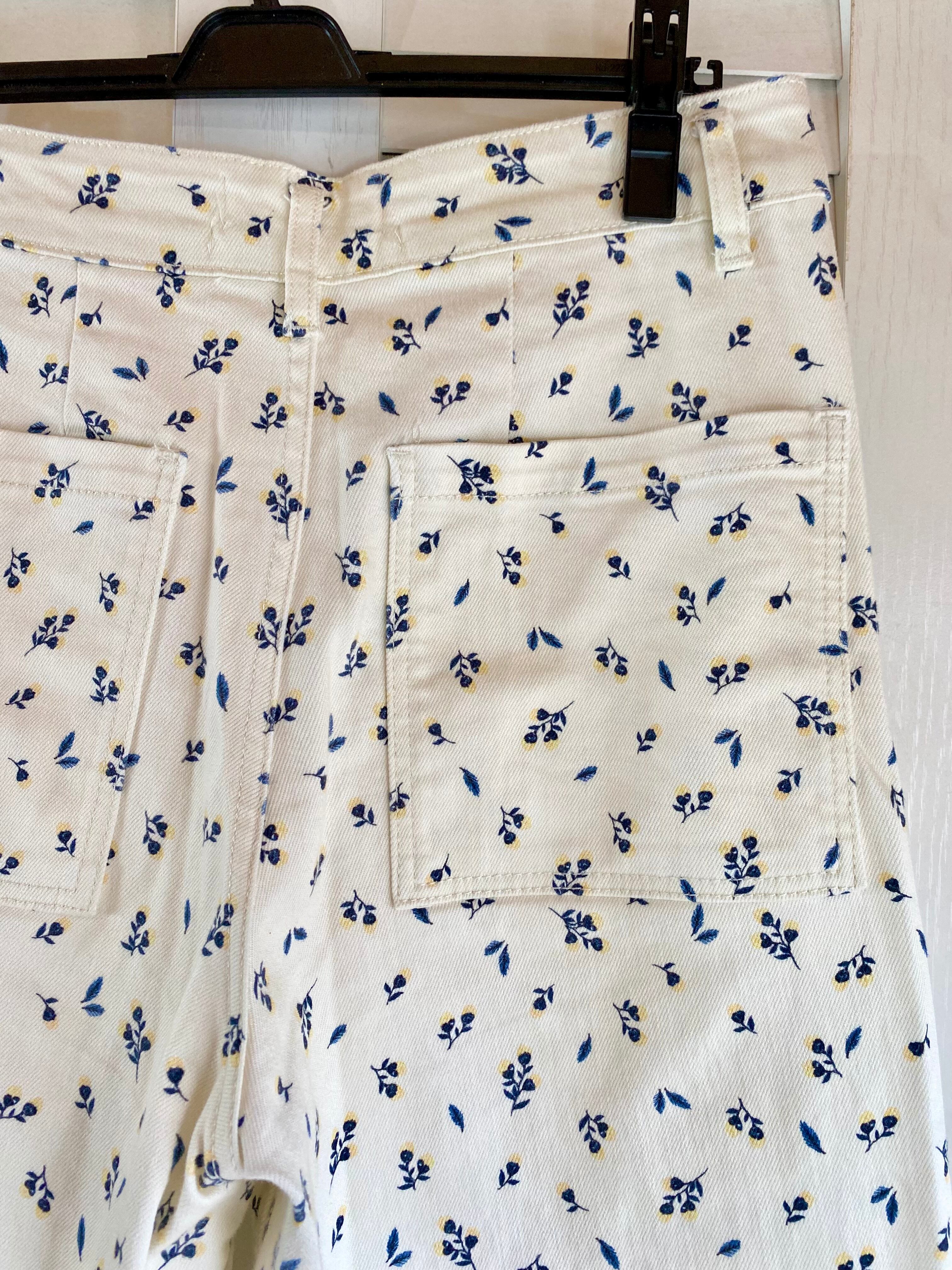 #4 ZARA 小花柄ストレッチホワイトデニム ワイドストレートパンツ アイボリー