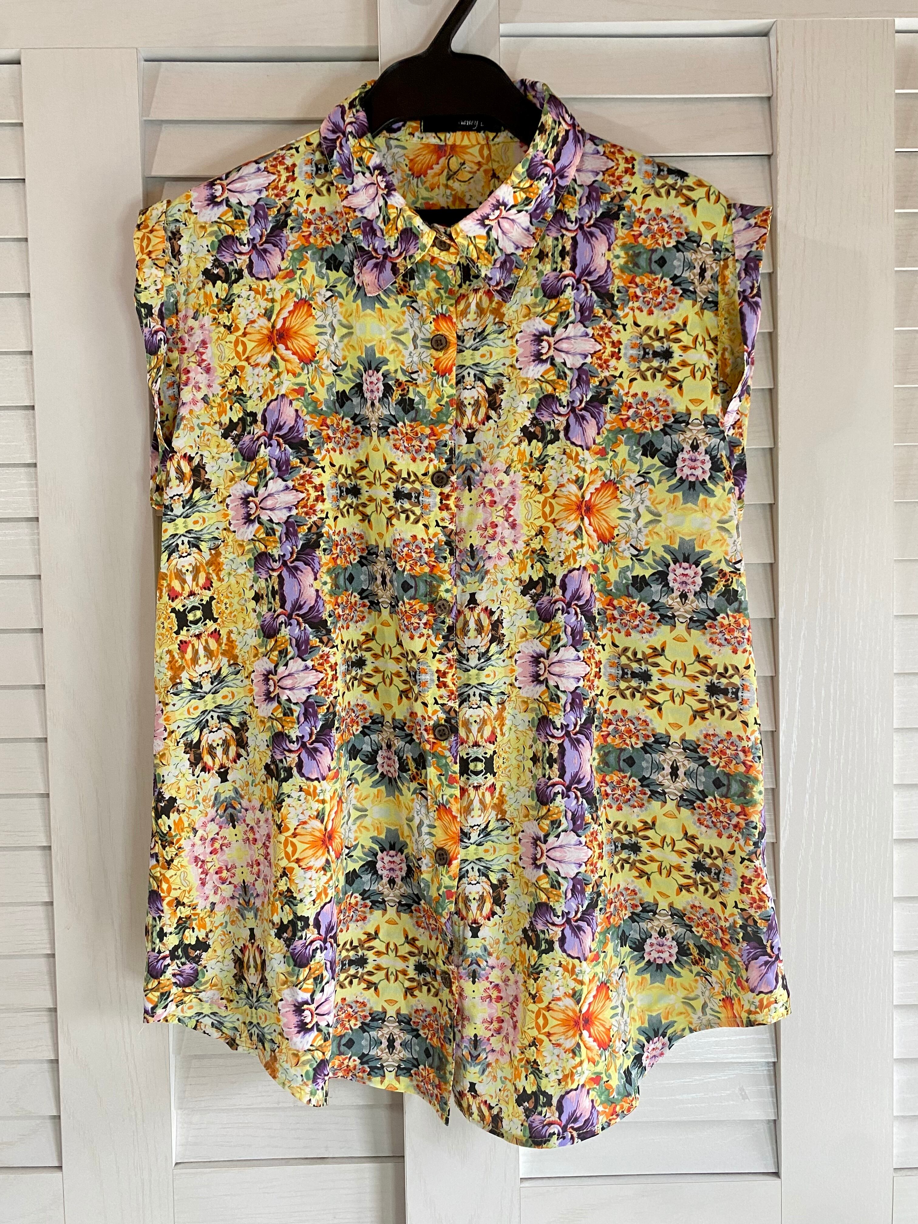 #5 HUDSON honey フローラルプリント フレンチスリーブ シャツブラウス イエロー