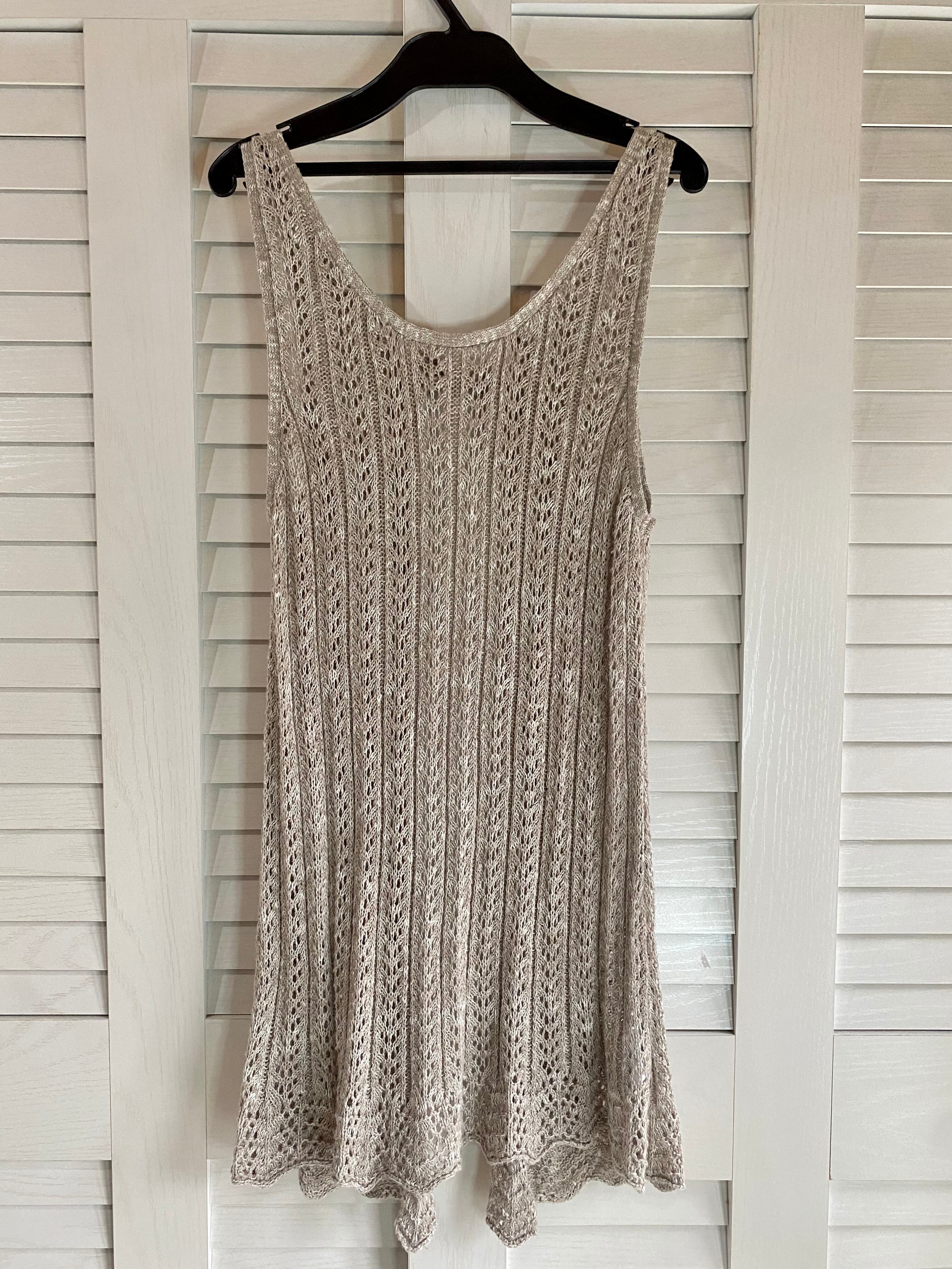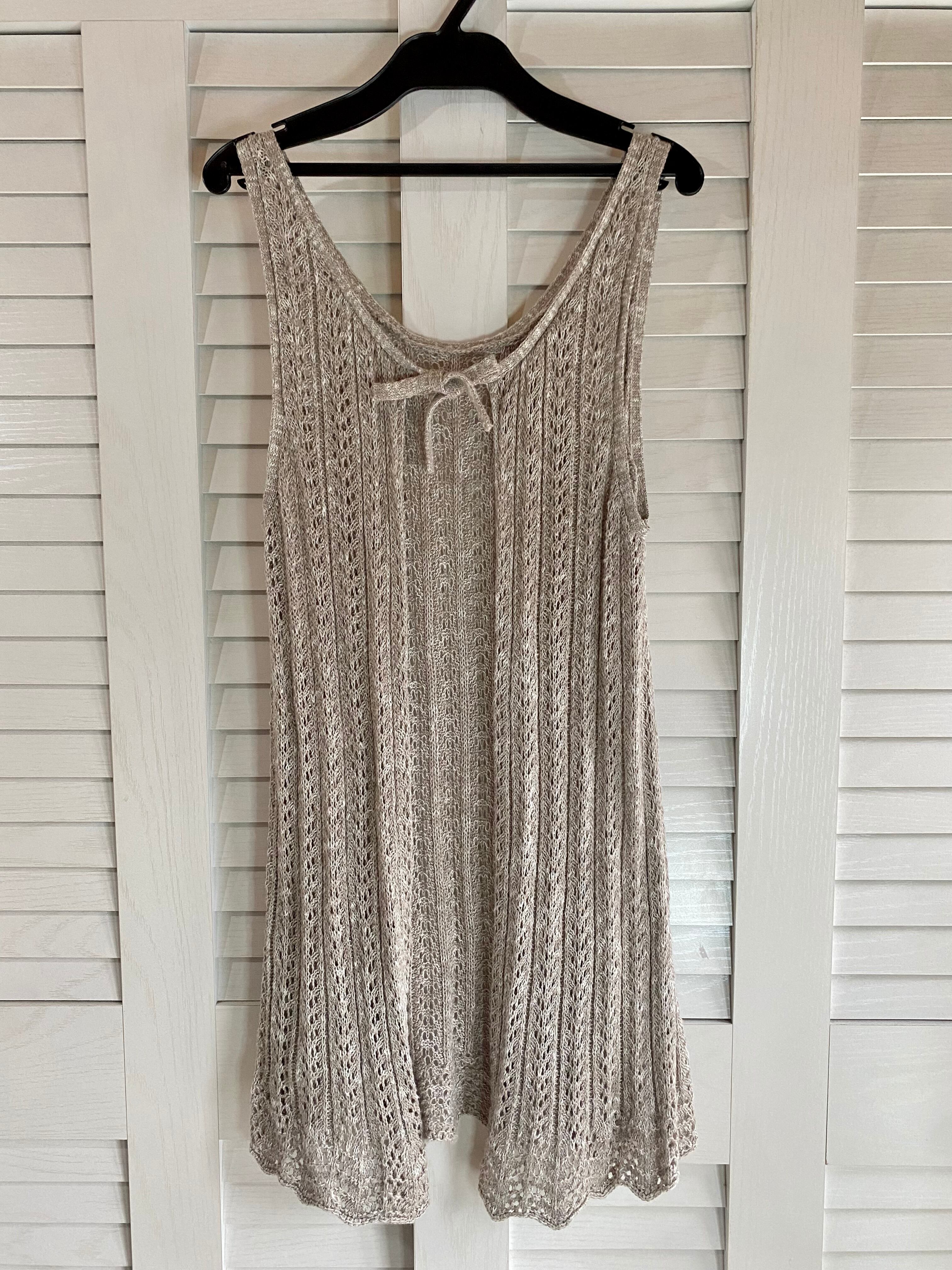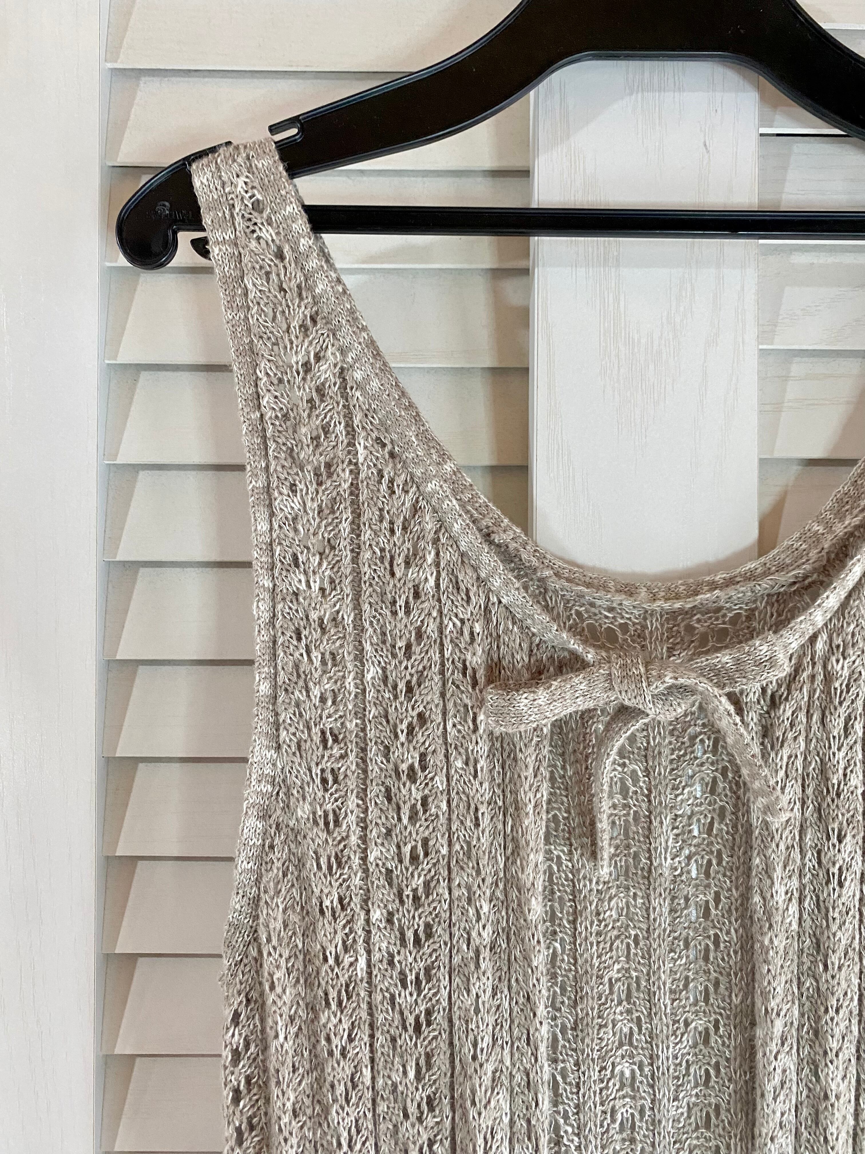 #5 Samansa Mos2 コットンリネン 透かし編みニットジレ グレーベージュ