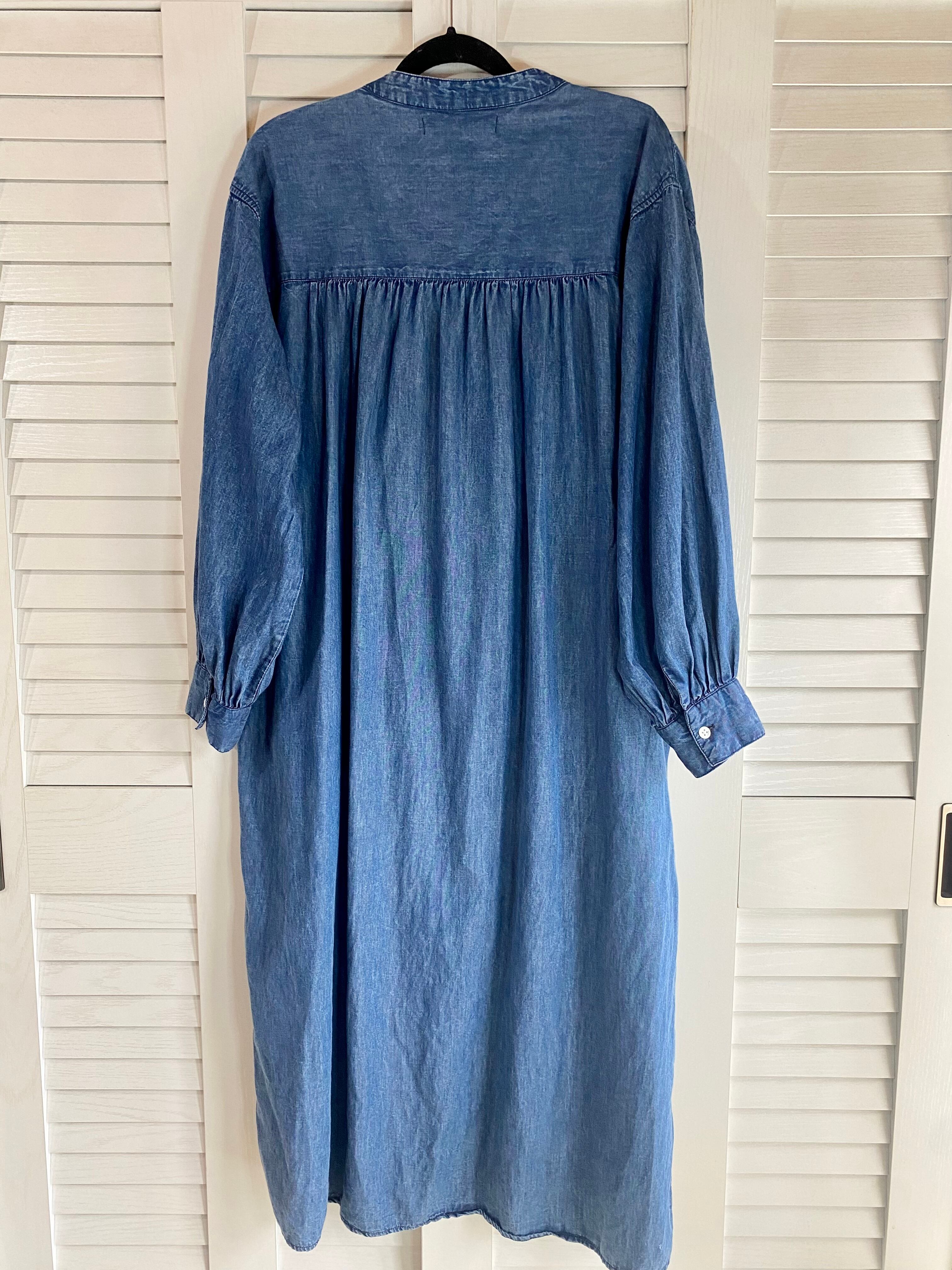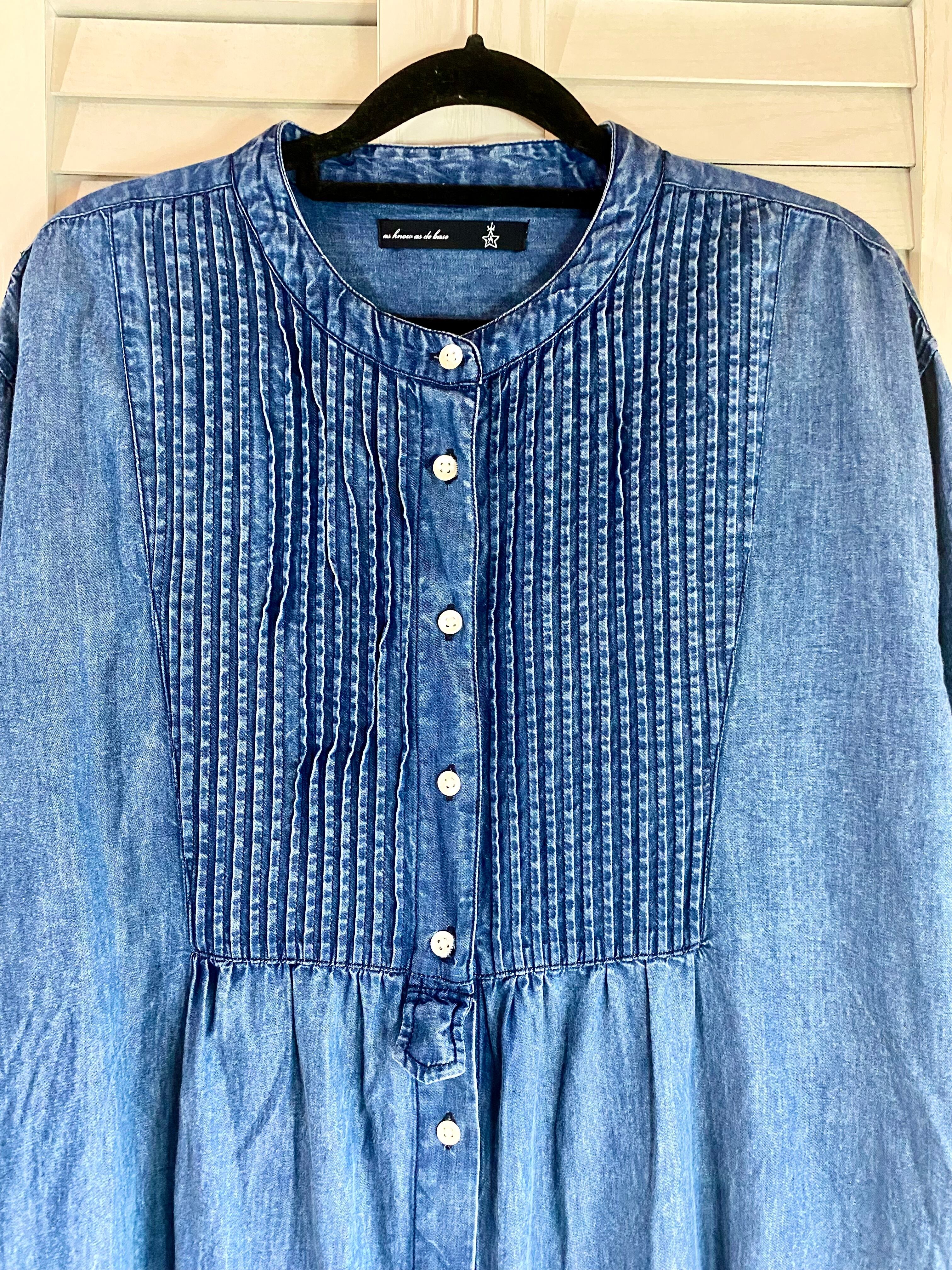 #5 as know as ピンタック ボリューム ダンガリーロングシャツワンピ ブルー