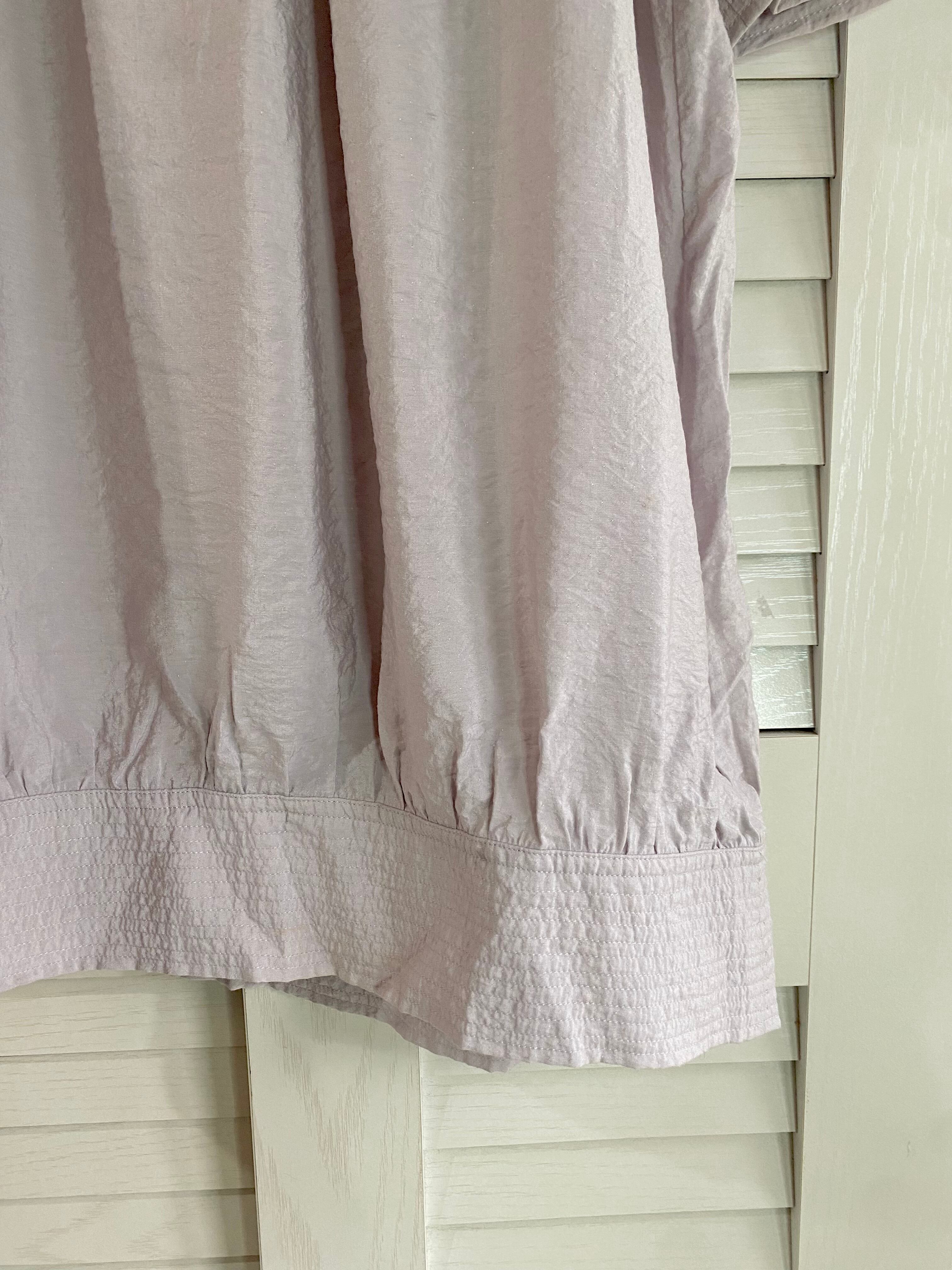 #6 VIS リップル加工 フリル&ステッチ レーヨンチュニックブラウス グレイッシュラベンダー