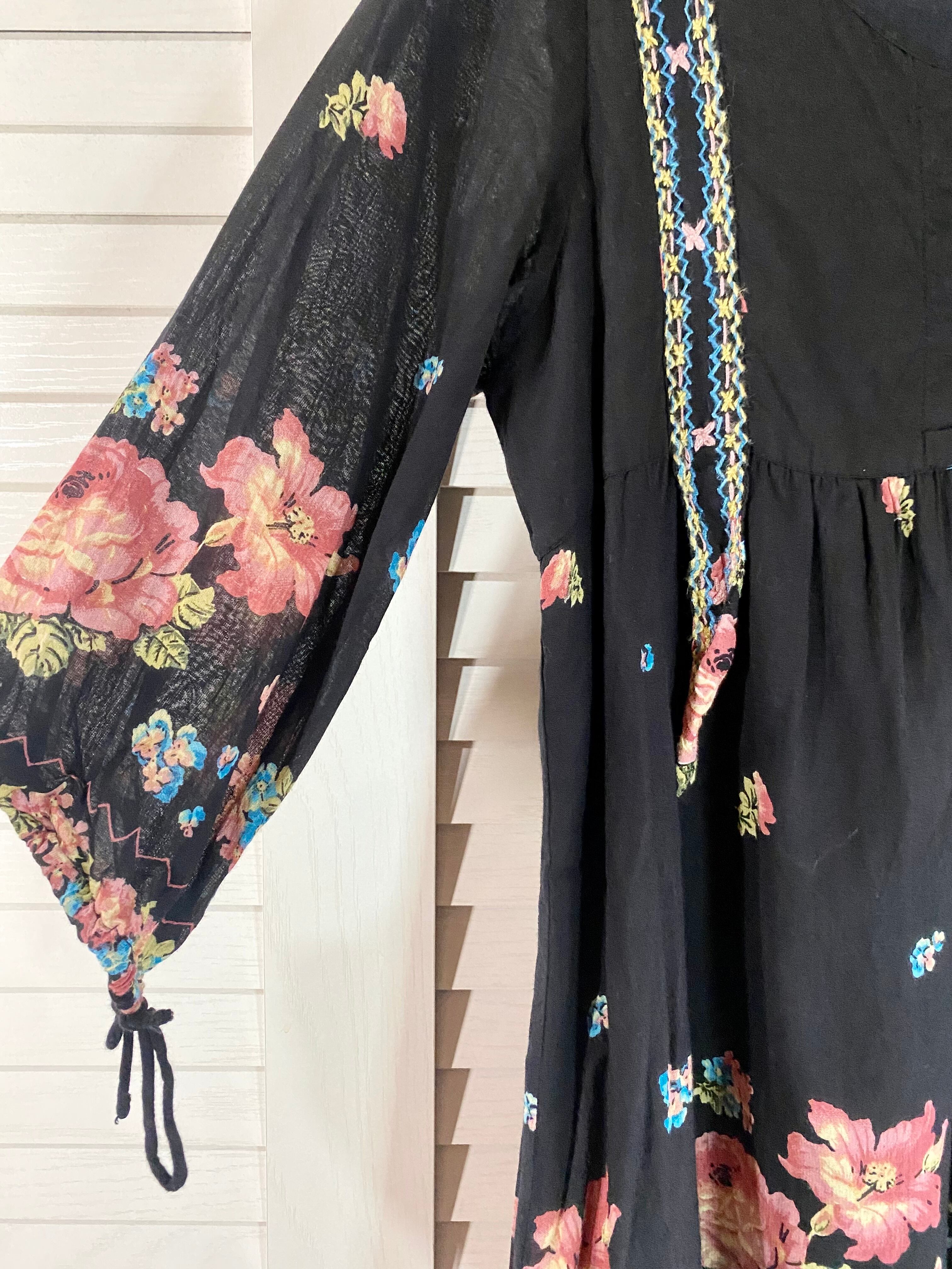 #6 Amina 刺繍&フラワープリント インドコットンレーヨン チュニックワンピ ブラック