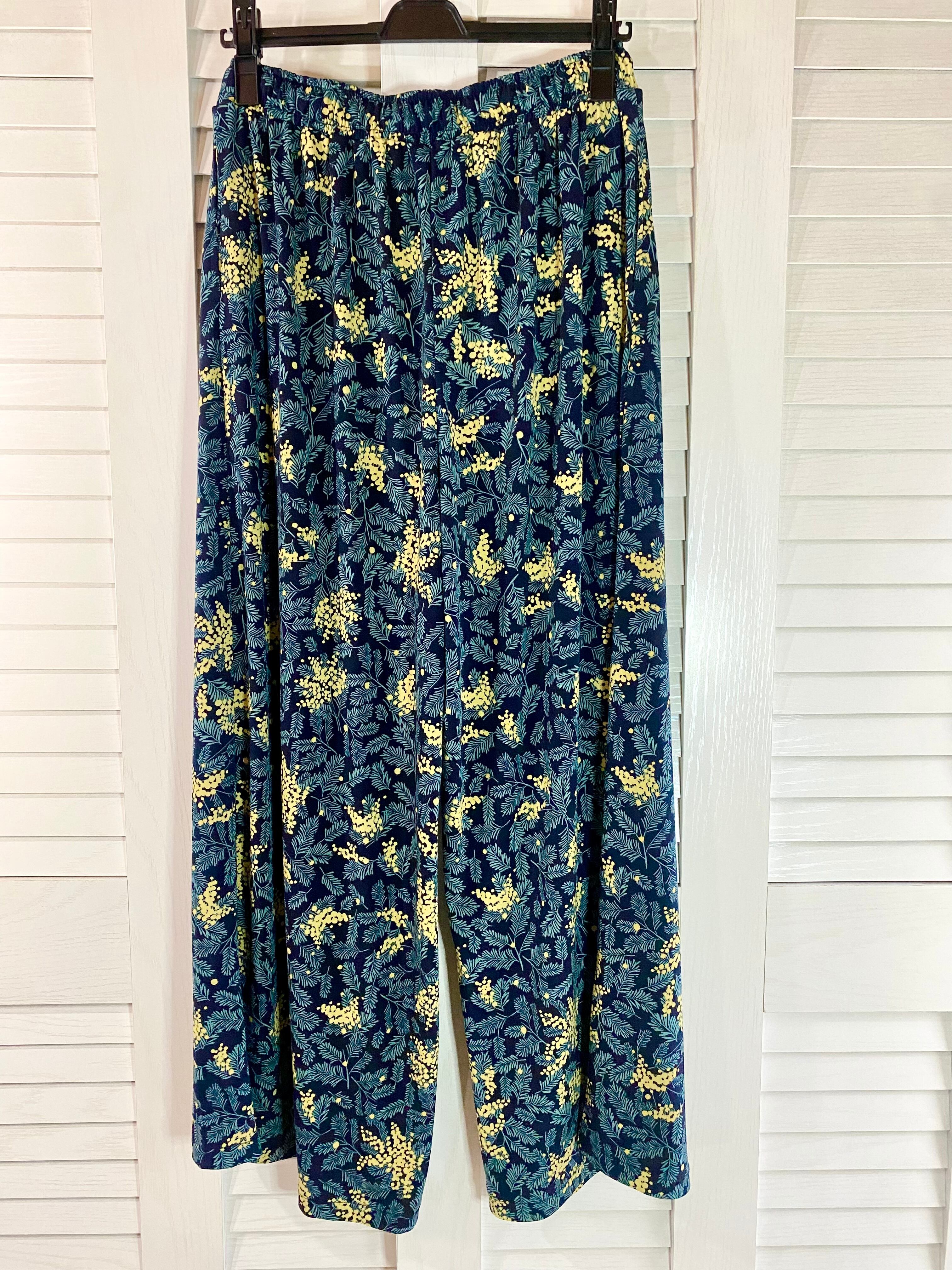 Live in comfort ボタニカル柄 大人っぽテロテロワイドパンツ ネイビー | お洋服屋さん 『GOKKO』