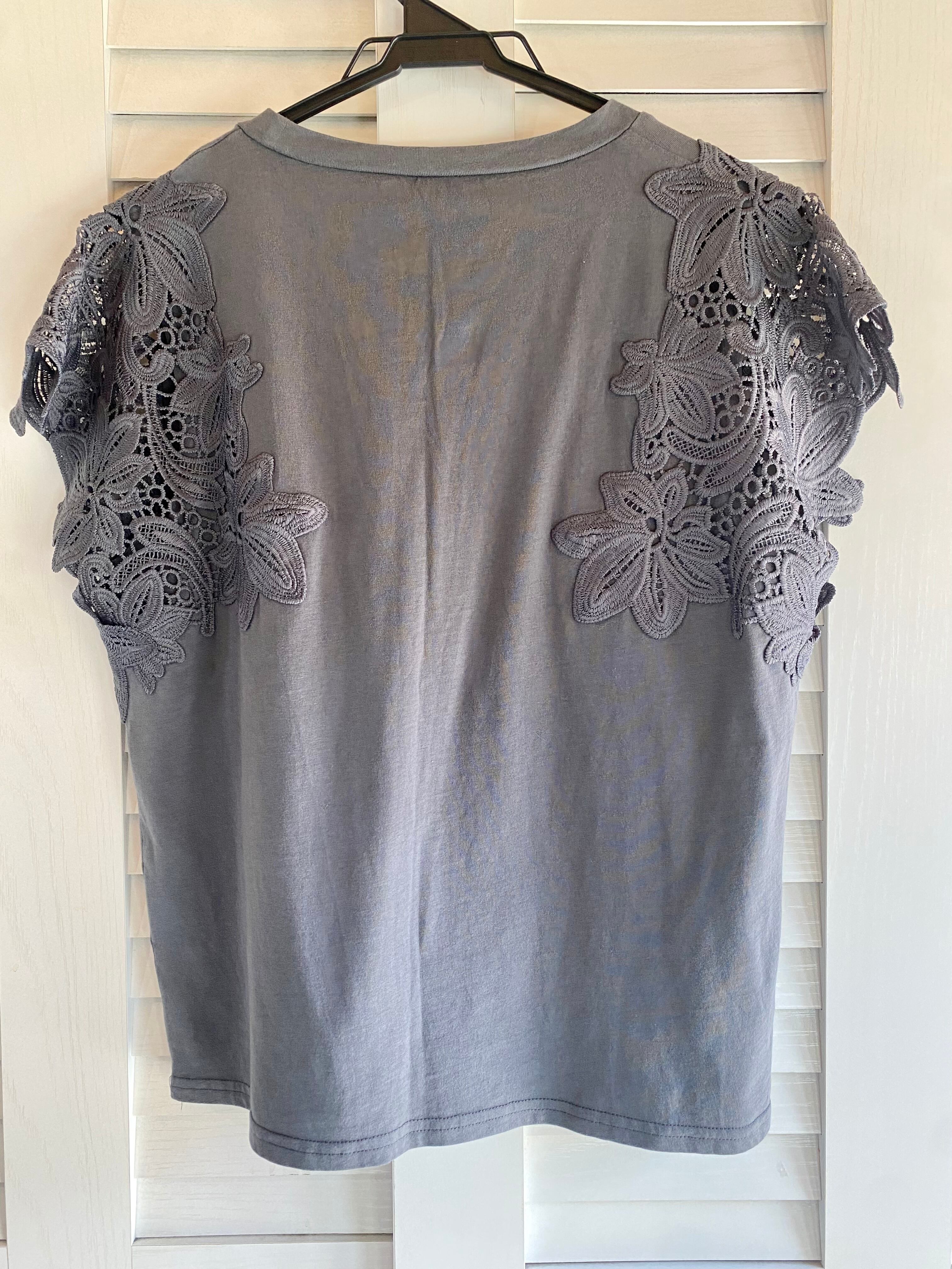 #8【デザインサンプル】ケミカルレース フレンチスリーブ カットソーブラウス チャコールグレー