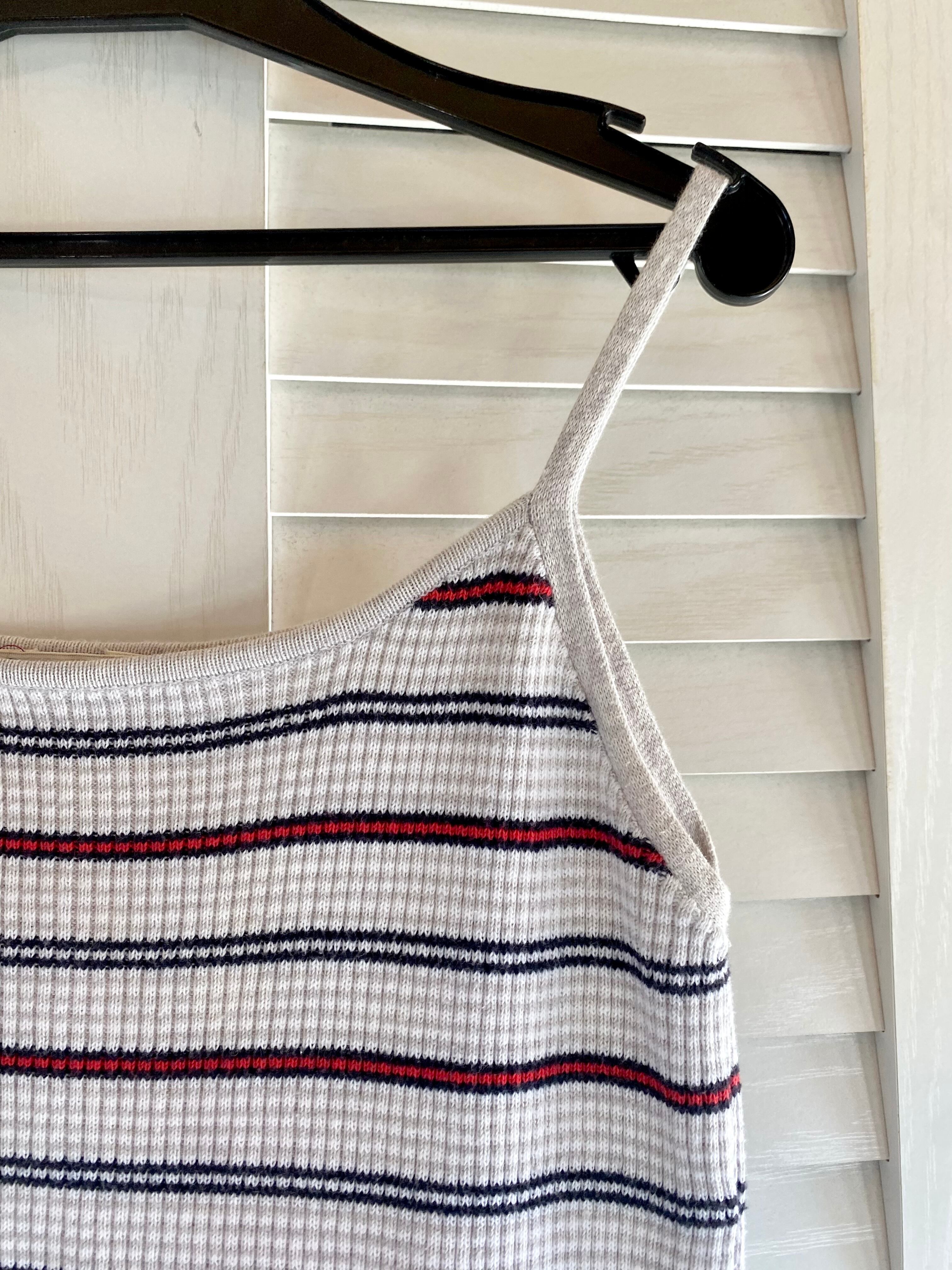 #8【古着屋購入】70Sヴィンテージ 東京スタイル サーマルリブニット トリコロールカラー マルチボーダーキャミ グレーベージュ