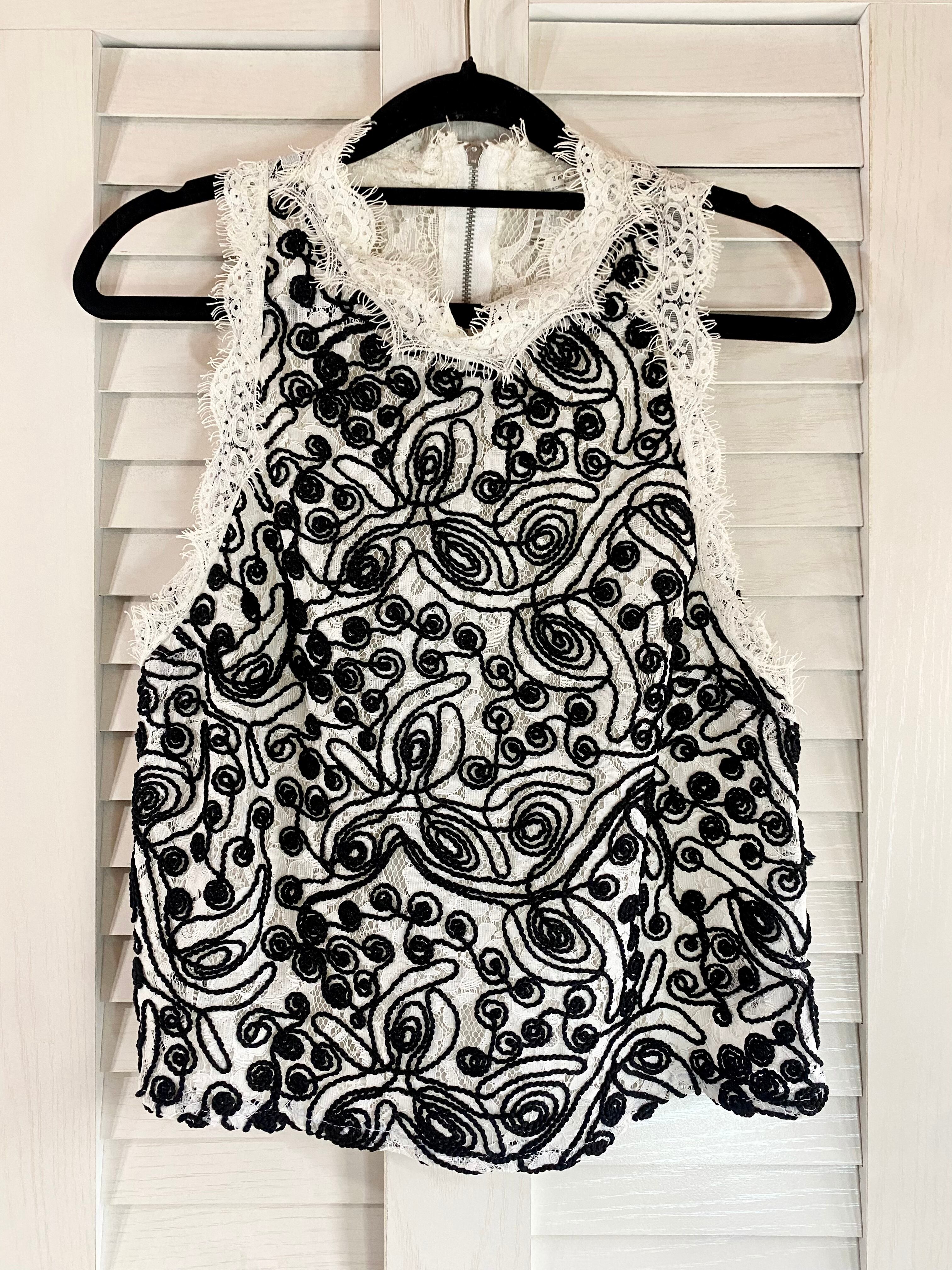 #9 ZARA レース&ブレード刺繍 ノースリーブブラウス ホワイト×ブラック | お洋服屋さん 『GOKKO』