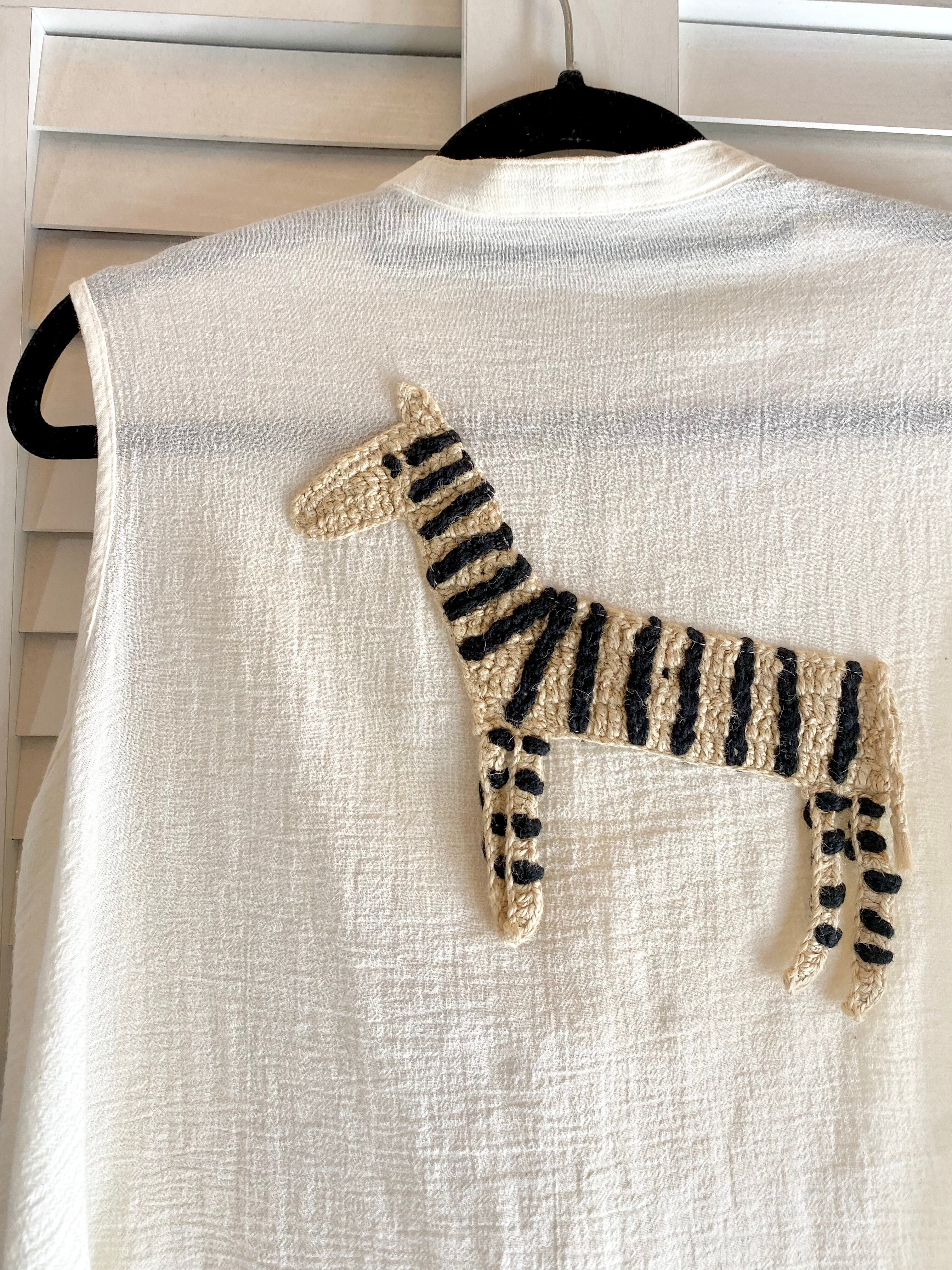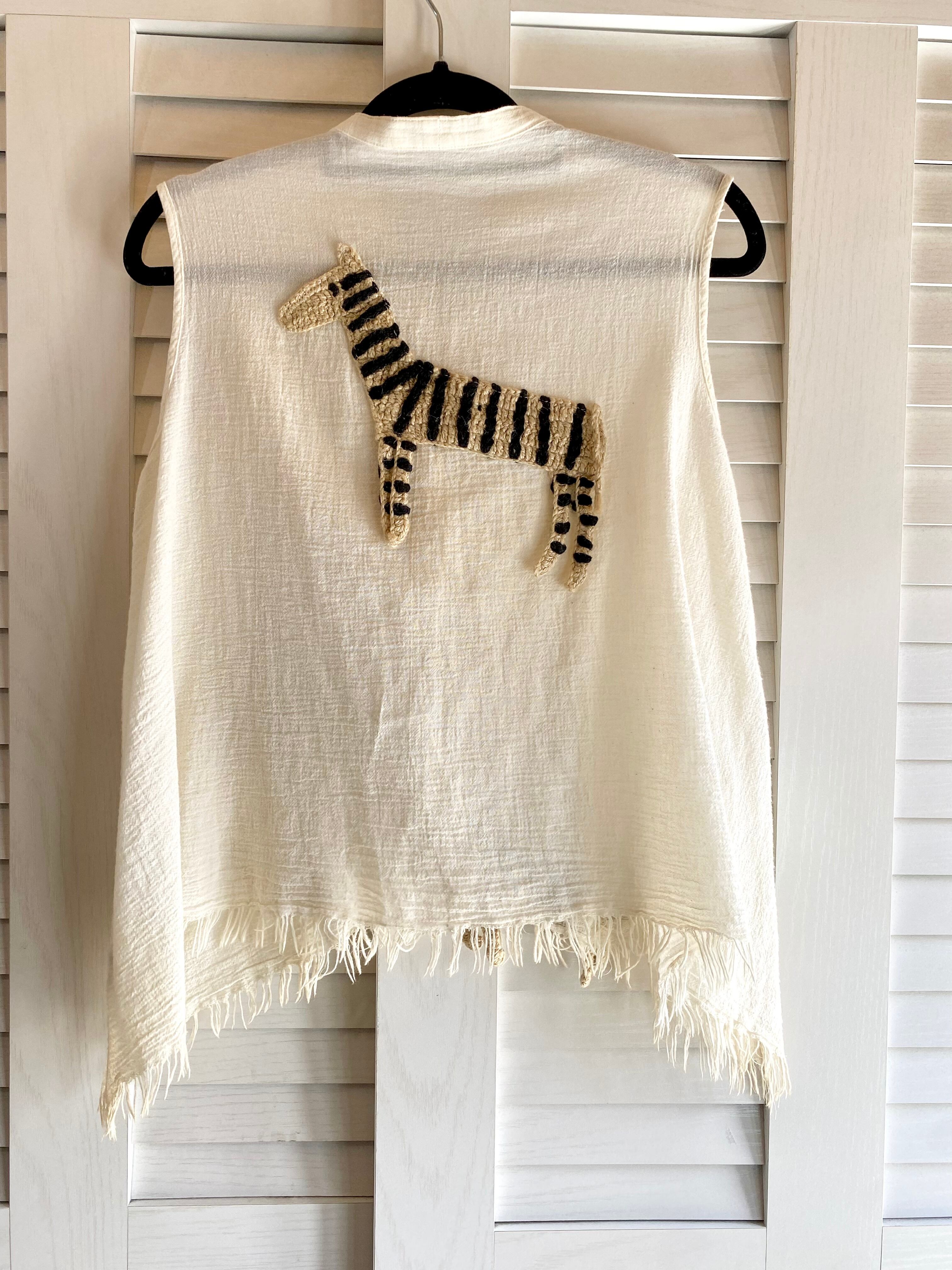 #12 TSUMORI CHISATO 激レア!!90S コットン楊柳カギ編みリネンアニマルモチーフ イレギュラーヘムジレ アイボリー