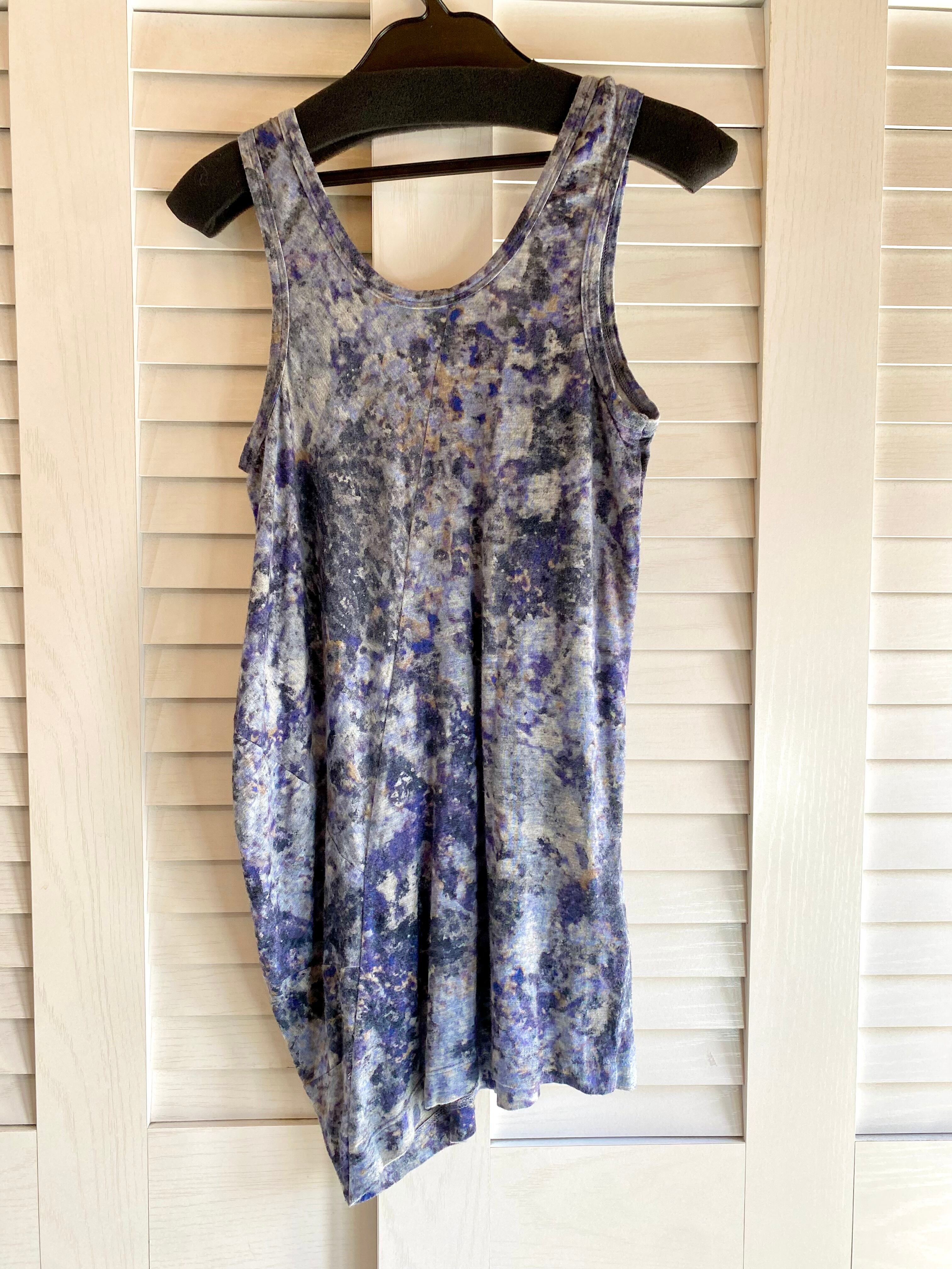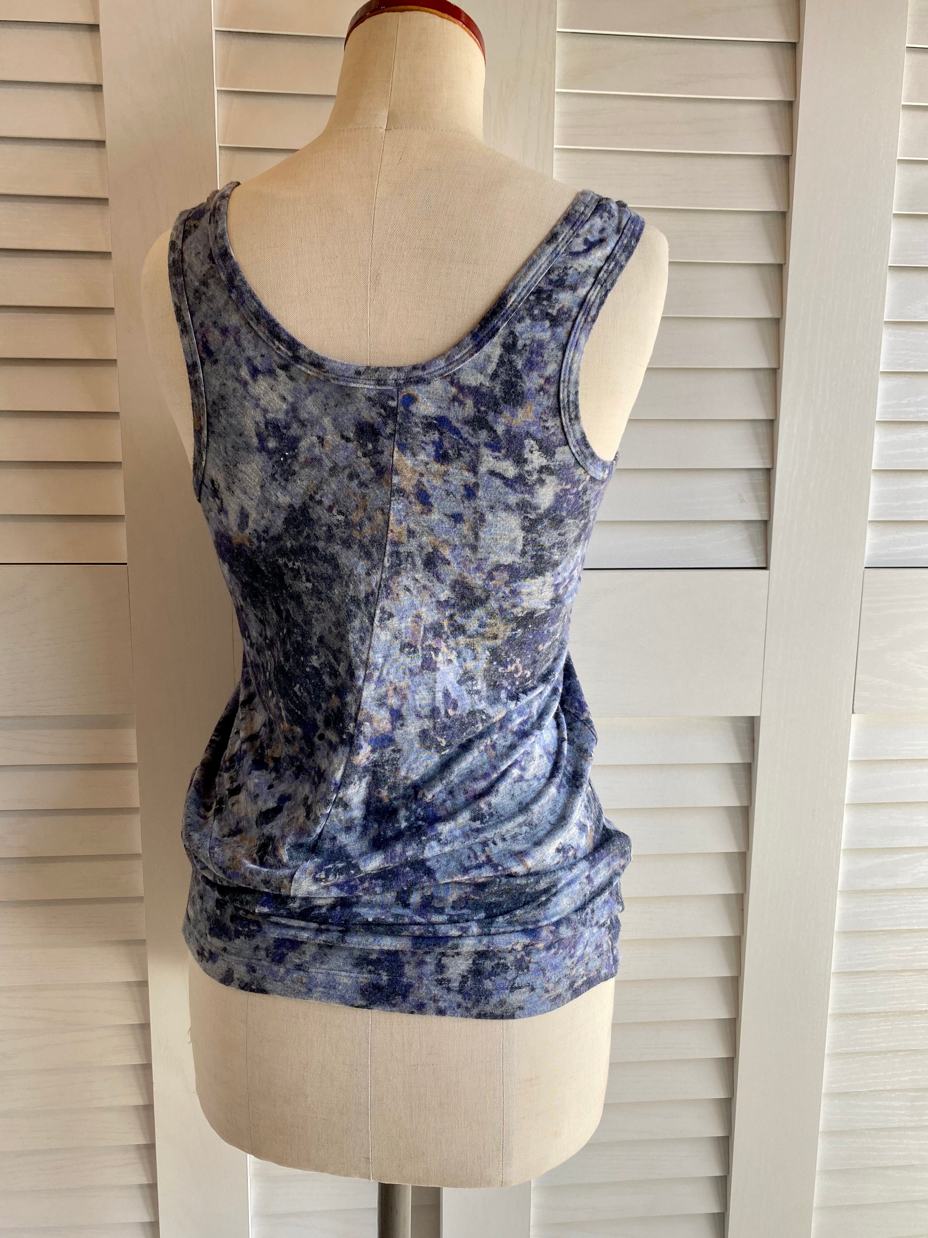 #12 theory ムラ染 立体パターン レーヨンカットソーノースリーブブラウス ブルー