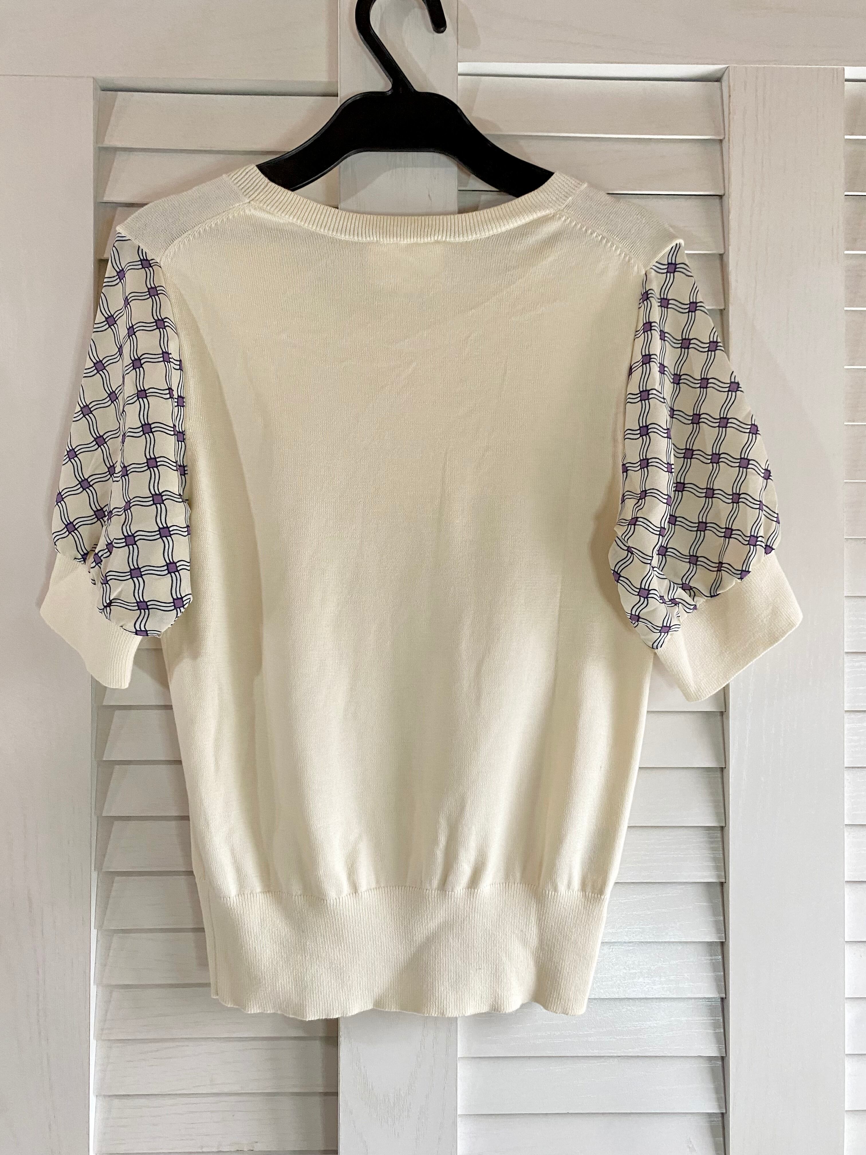 #13 LAURA ASHLEY London デザインプリントスリーブ コットンニット アイボリー
