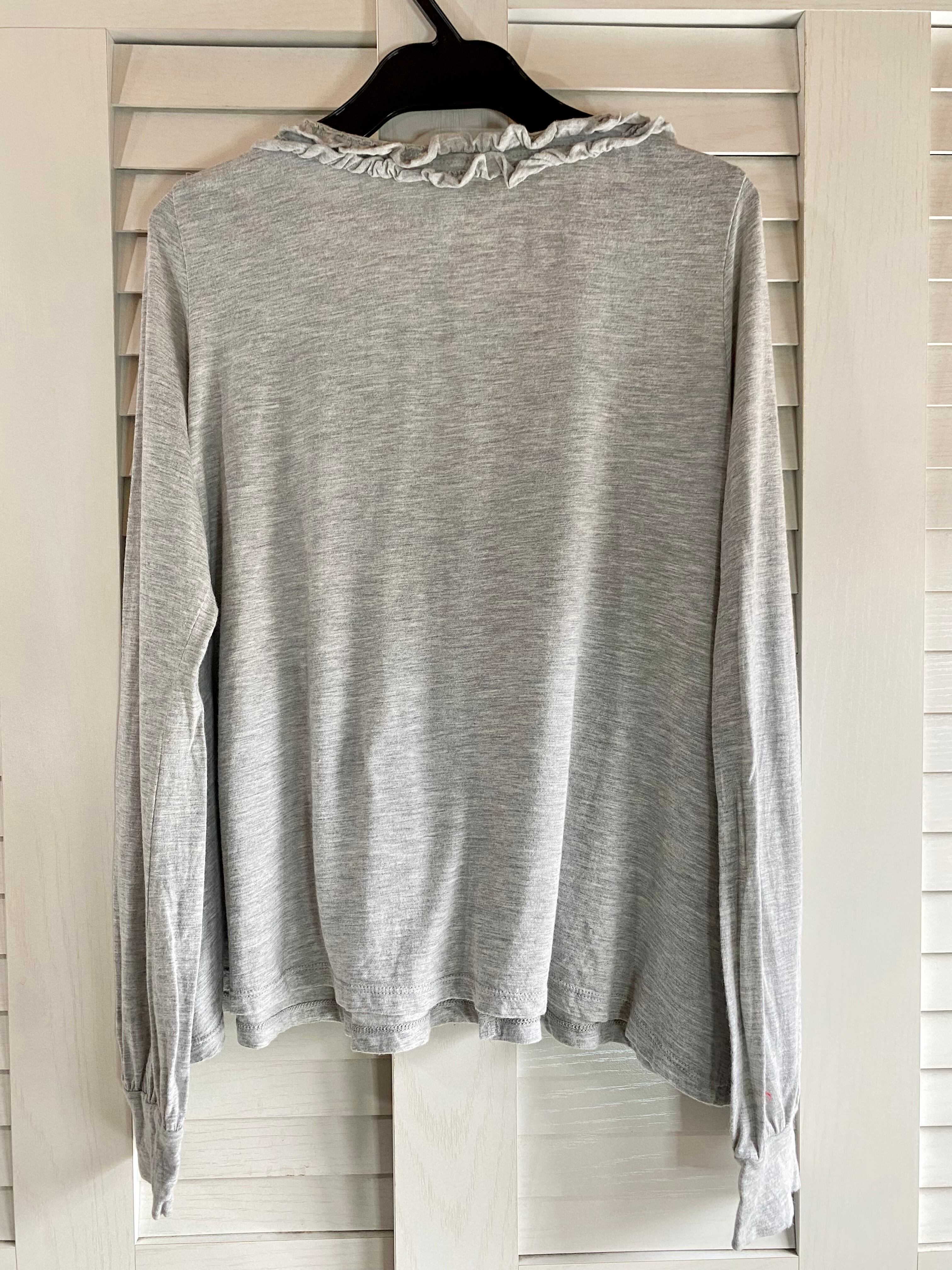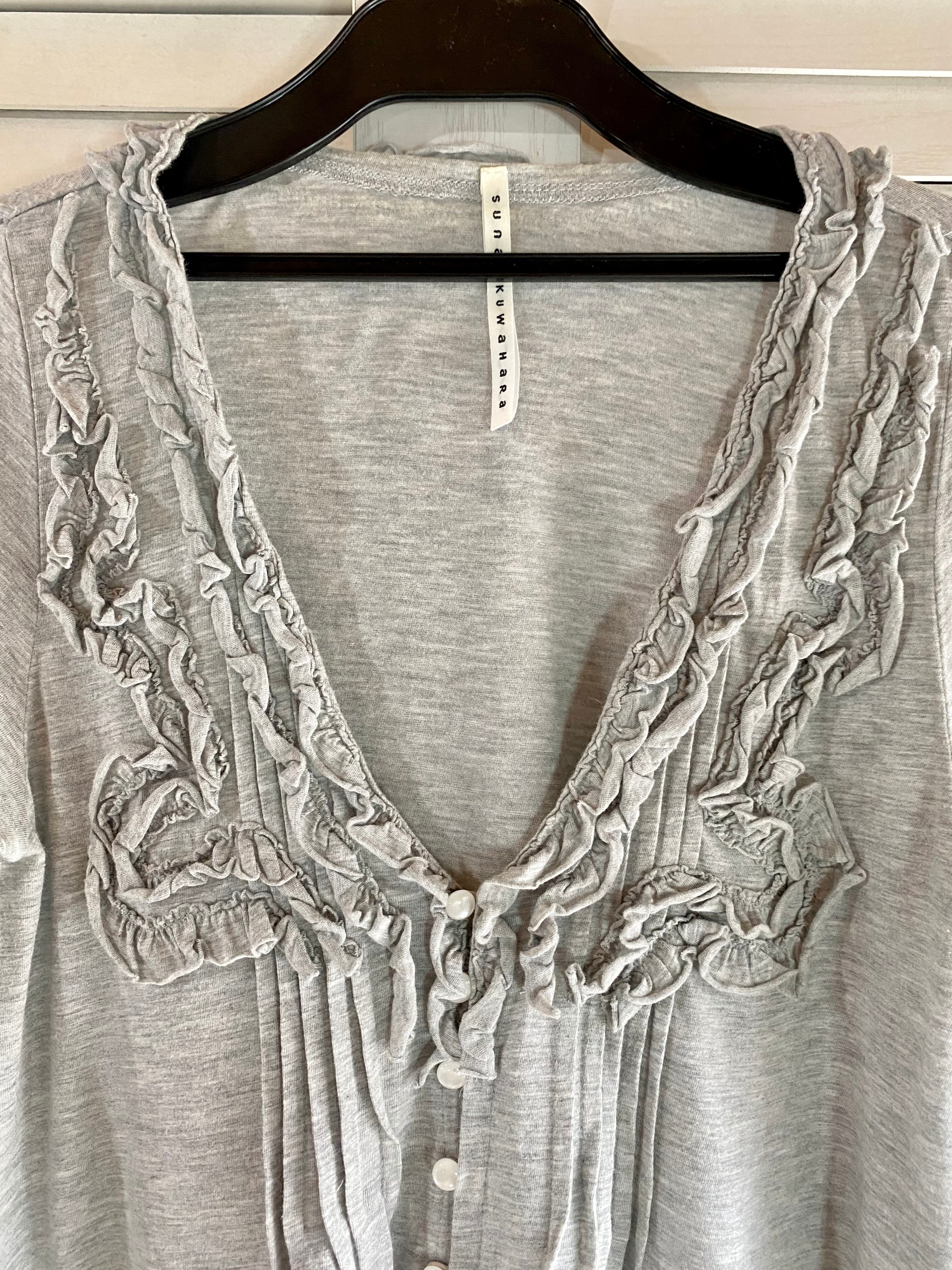 #13 SUNAOKUWAHARA フリルデザイン コットンレーヨン カットソーカーデ グレー