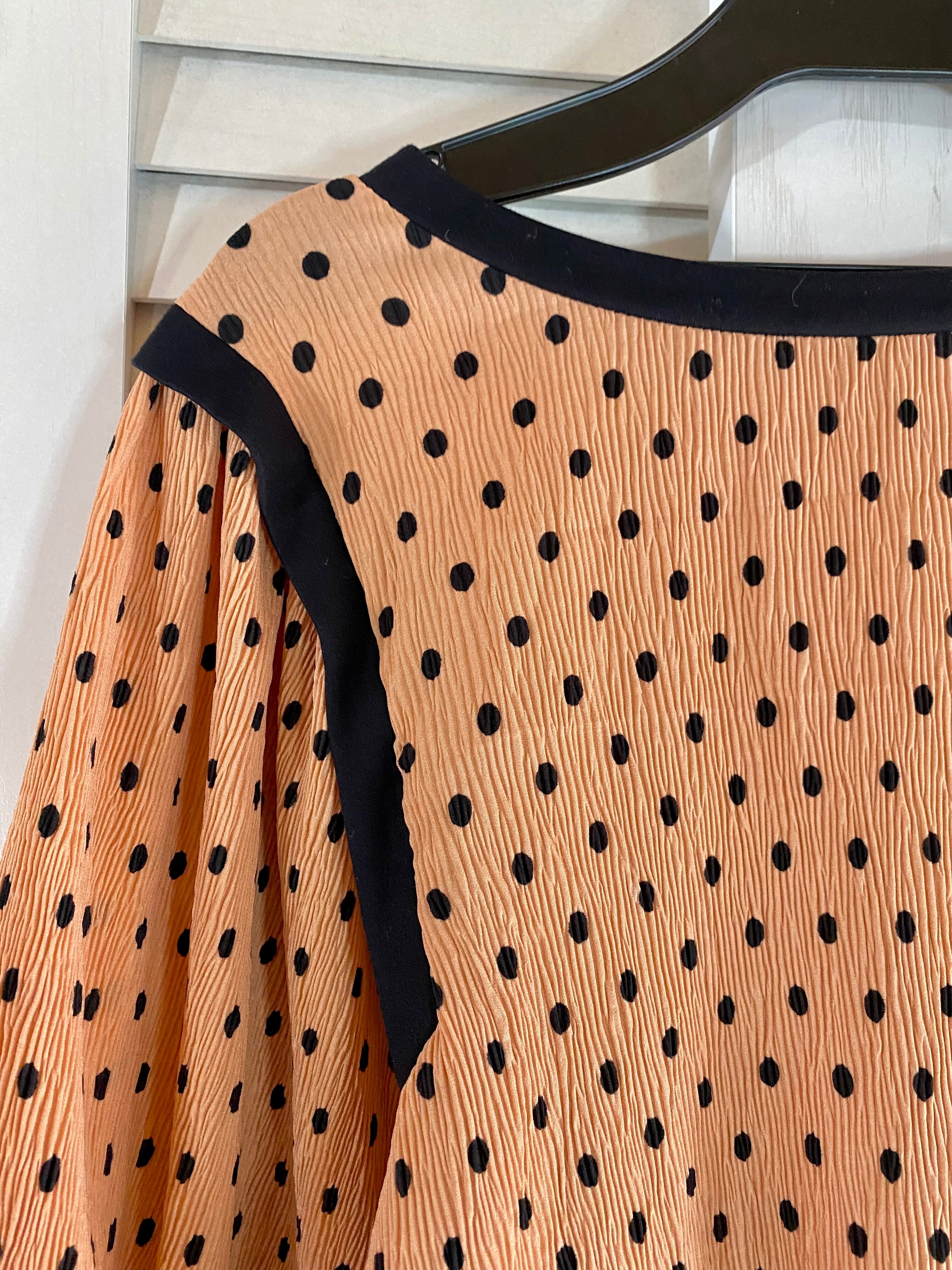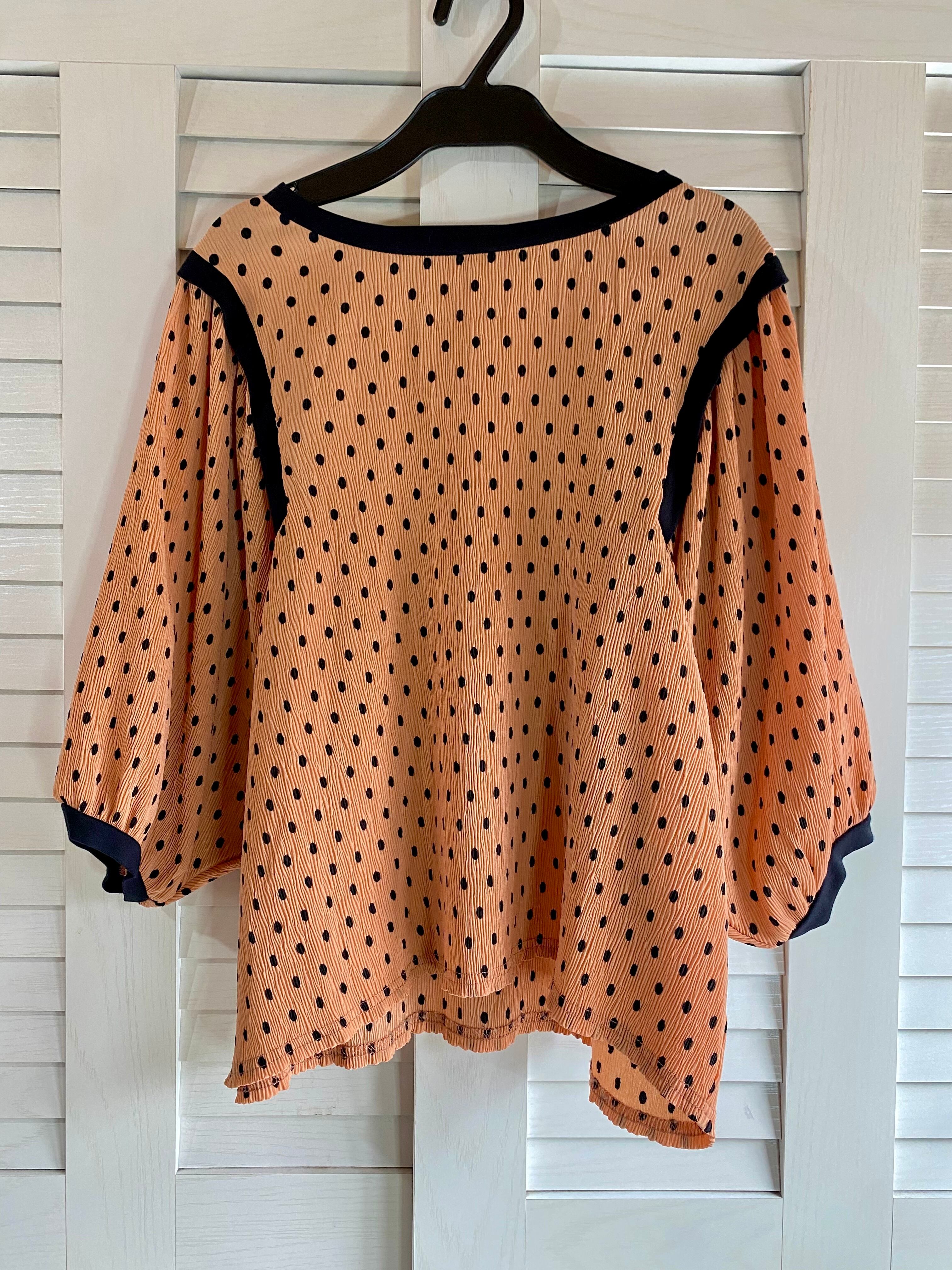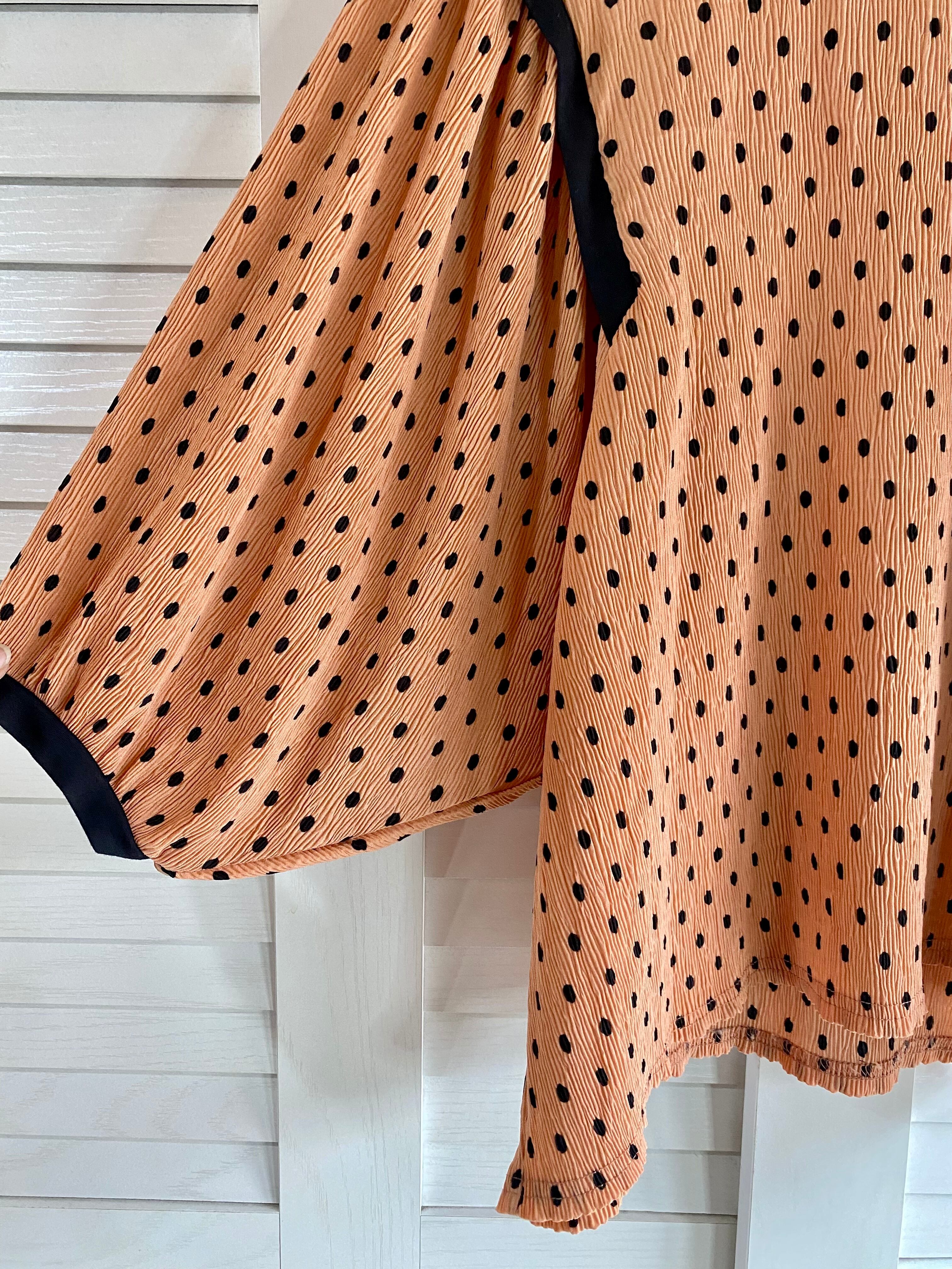 #13【デザインサンプル】楊柳ジョーゼット パイピング切替 ドットボリュームスリーブブラウス シャーベットオレンジ