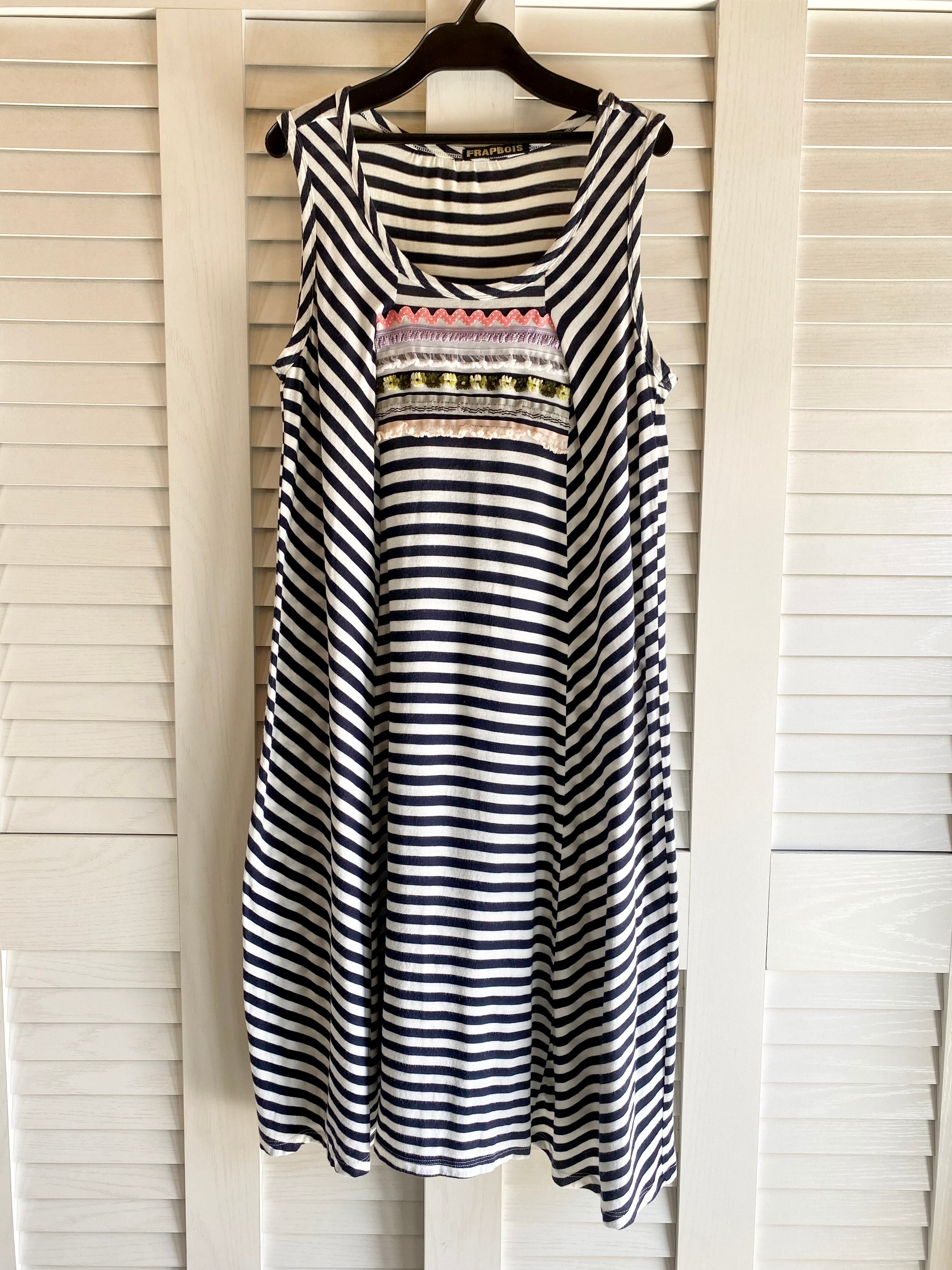#14 FRAPBOIS チロリアンテープライン ボーダー切替ノースリーブカットソーワンピ ネイビー