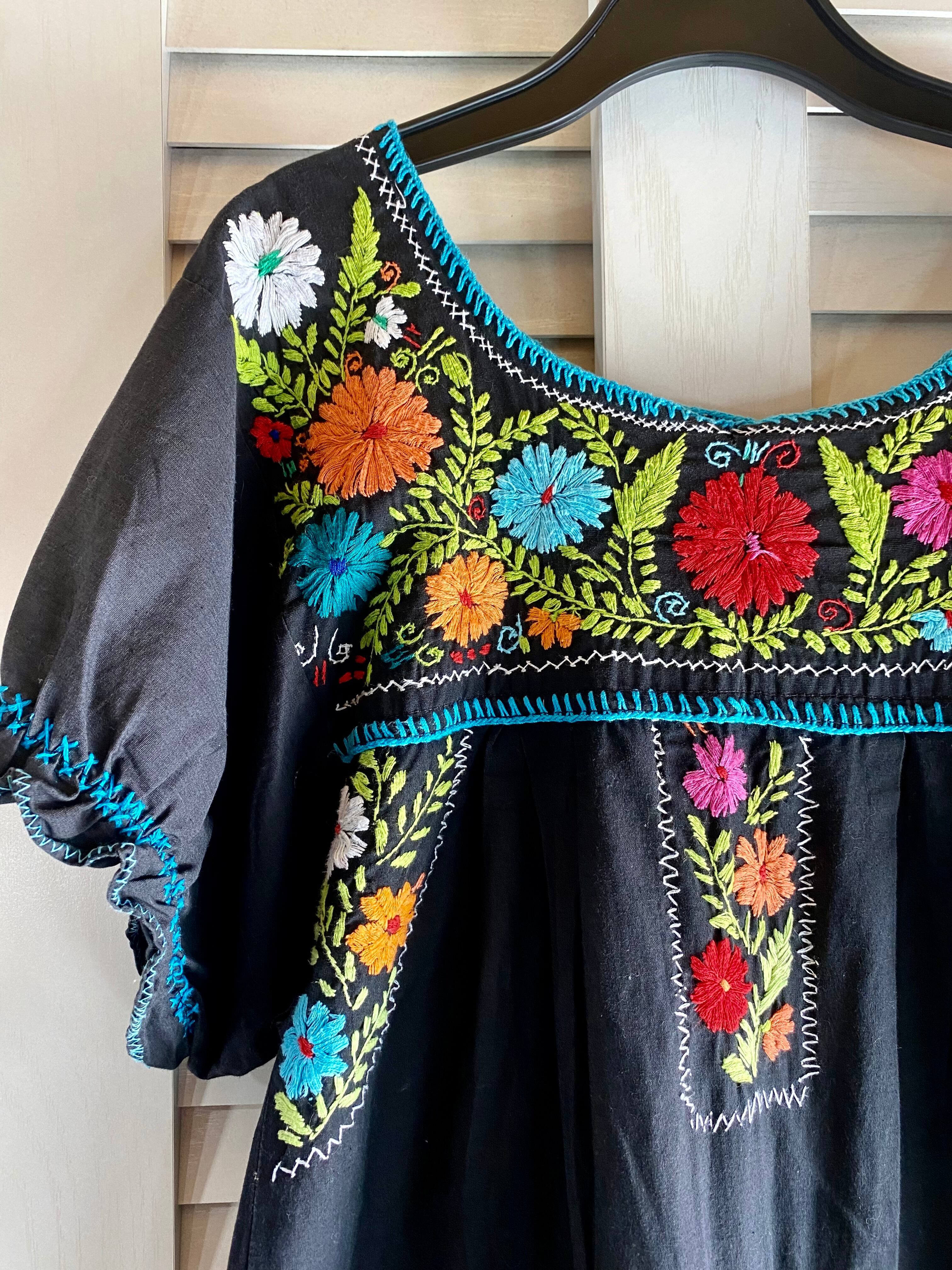 #14【古着屋購入】70Sヴィンテージ フラワー刺繍ボリュームワンピ ブラック