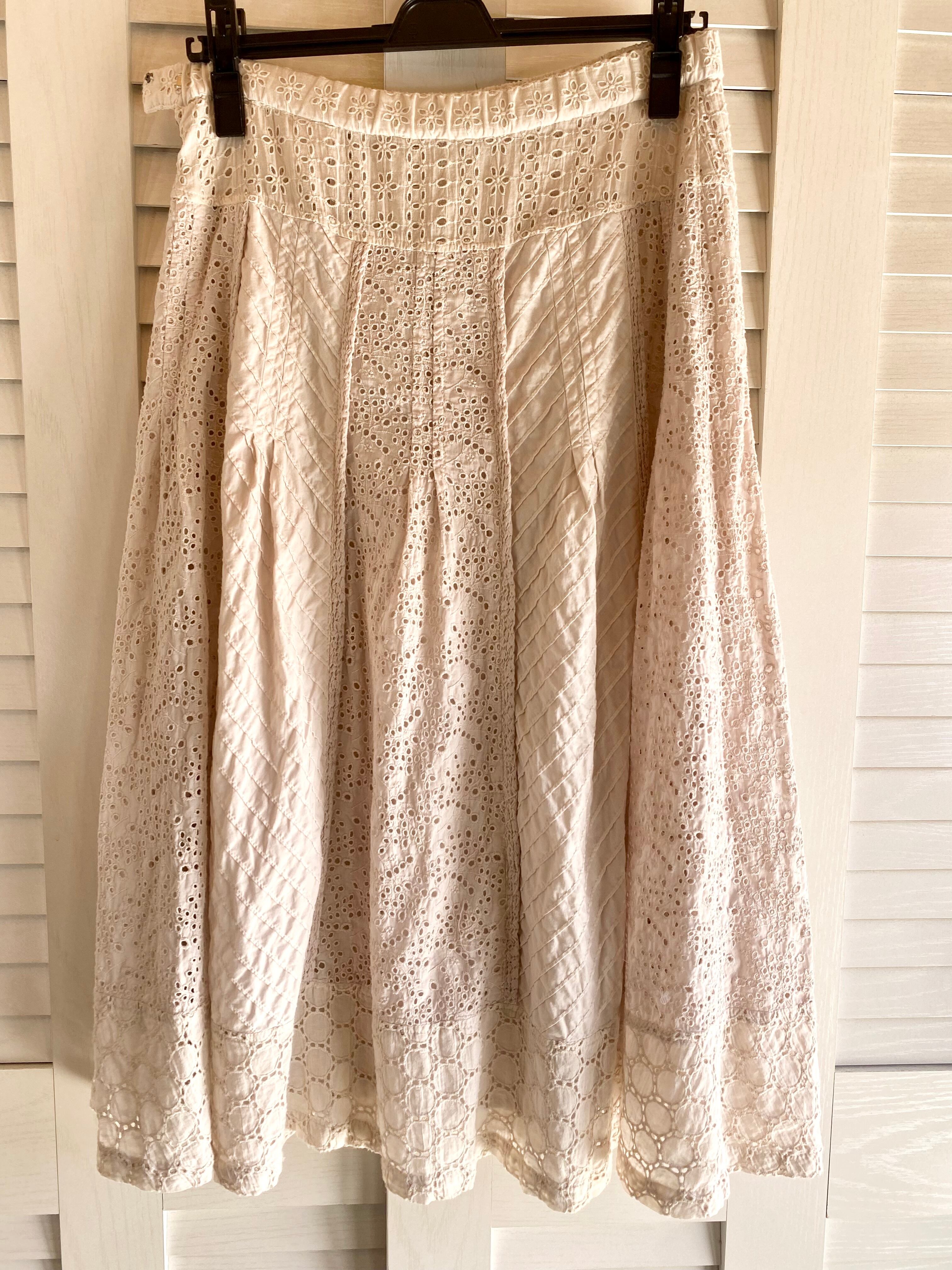 #14 Fashion Villege カッティングレースパッチワークフレアースカート アンティークページュ