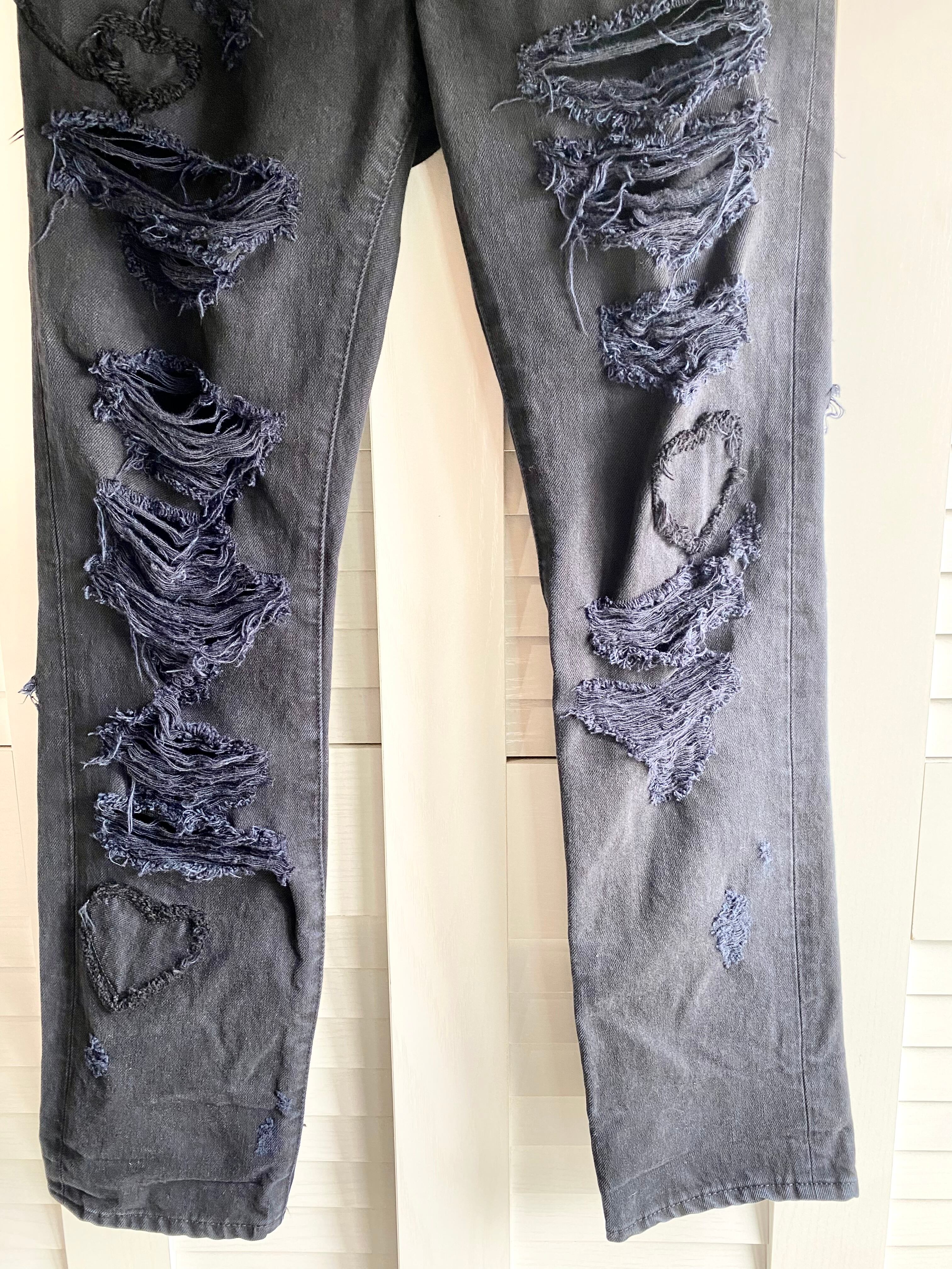 #15 RNA 後染めブラックデニム めっちゃダメージ加工ジーンズ ネイビーブラック