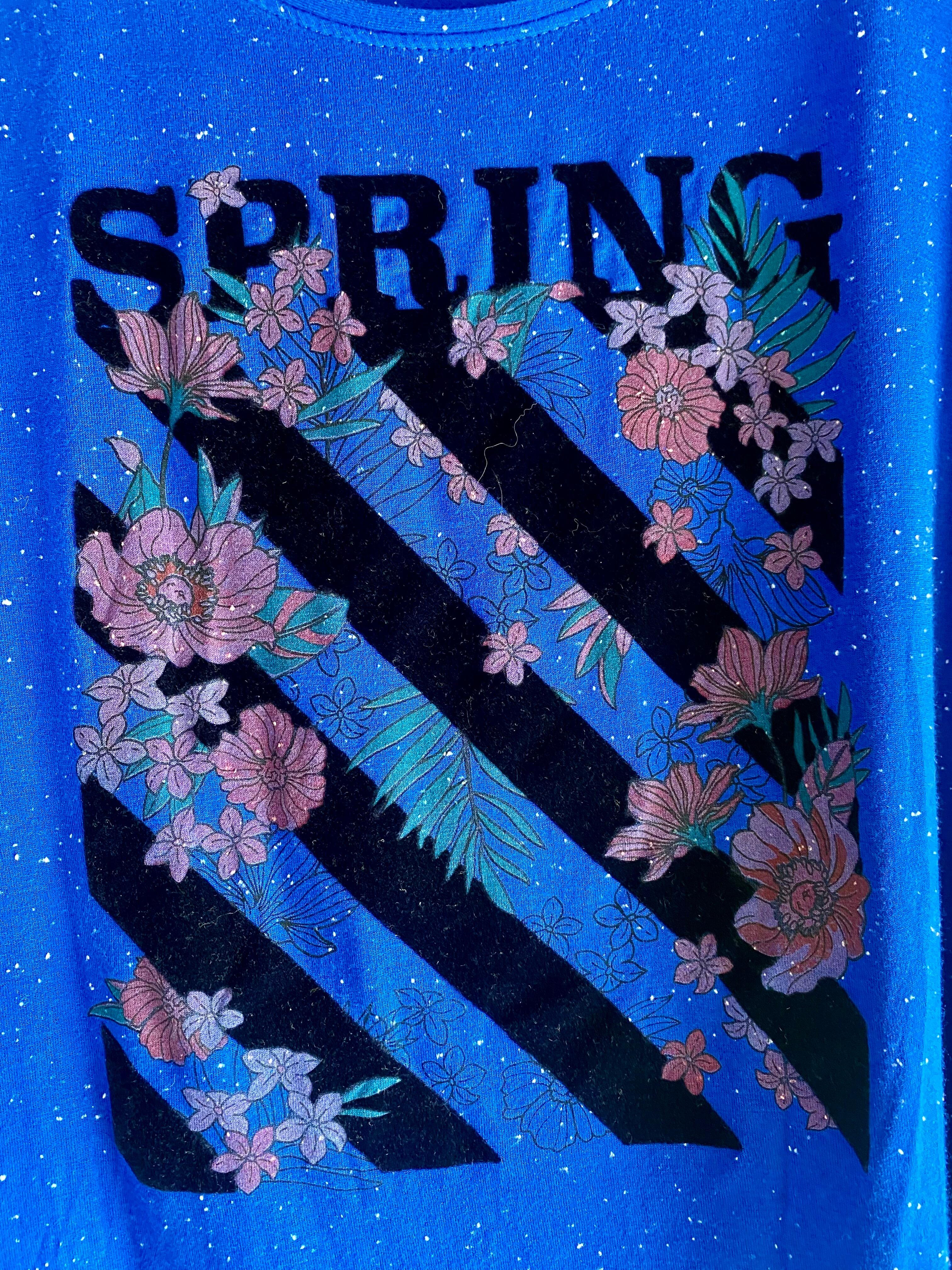 #17 MALWEE レア!白ネップベース フロッキープリントTシャツ ブルー
