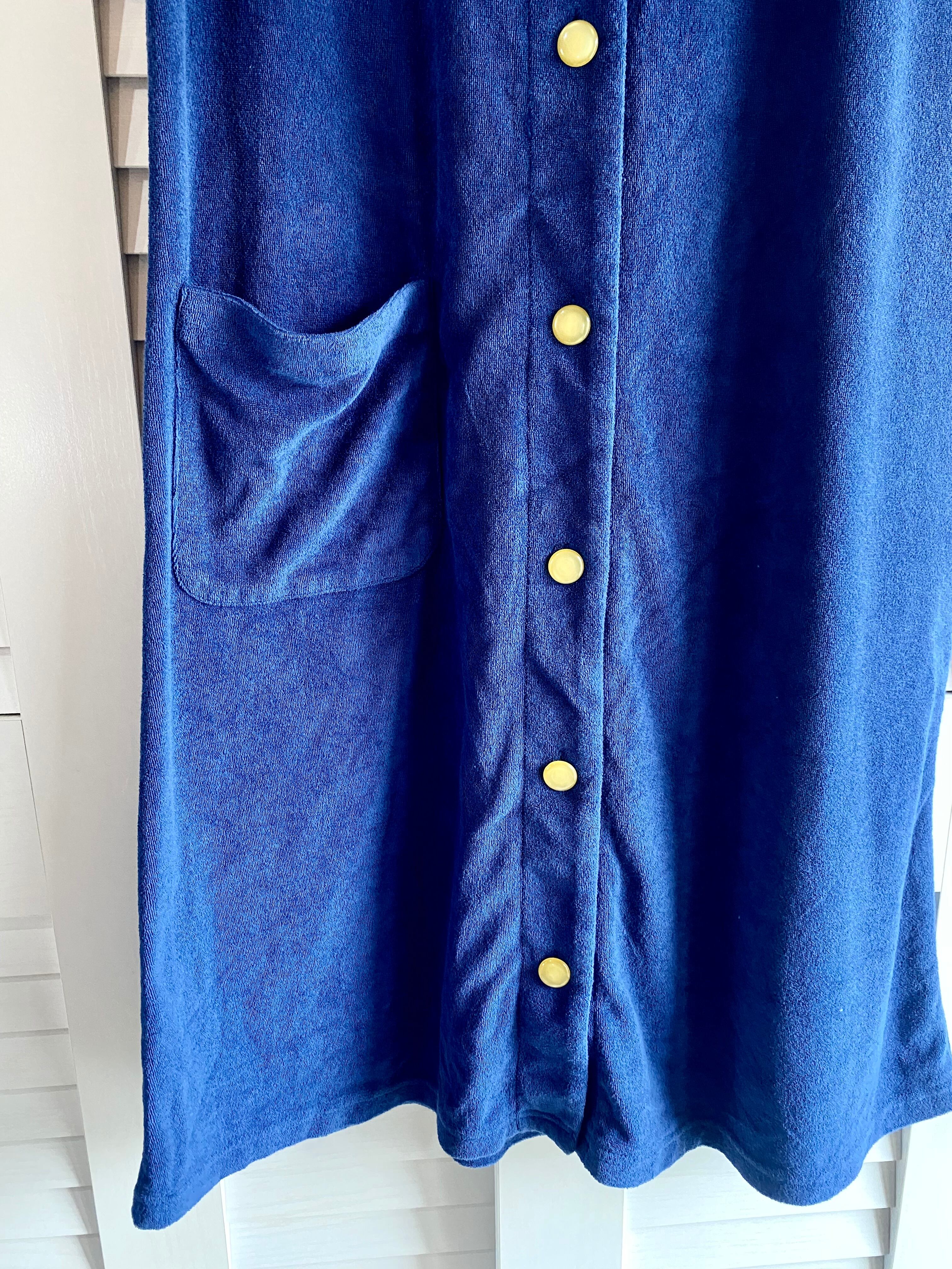 #17 Cozyfeels 70S風レトロデザイン フラワーパッチ&刺繍 配色パイル地ワンピ ブルー