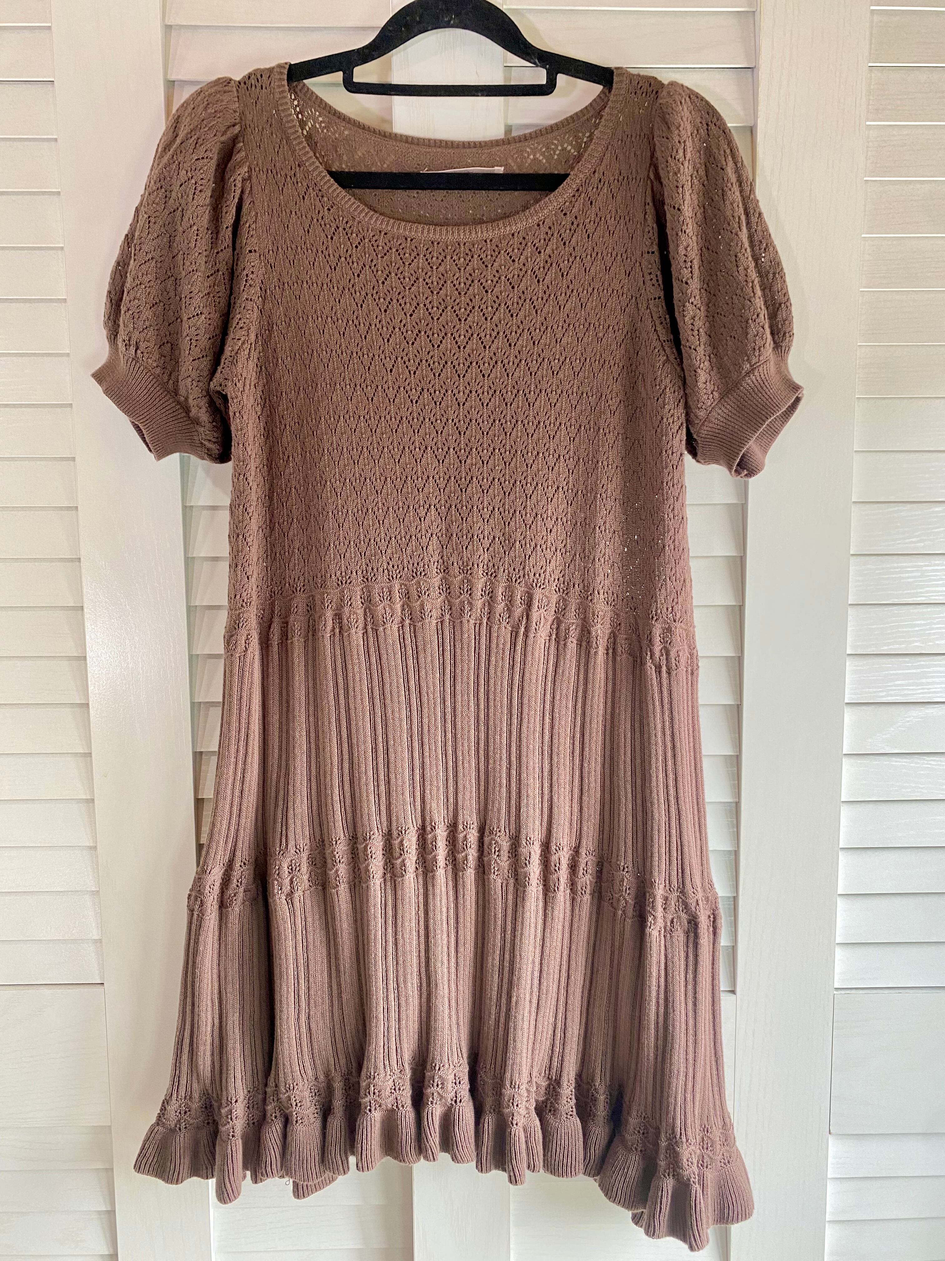 #18 NICE CLAUP 透かし編みニットチュニックワンピ モカブラウン | お洋服屋さん 『GOKKO』