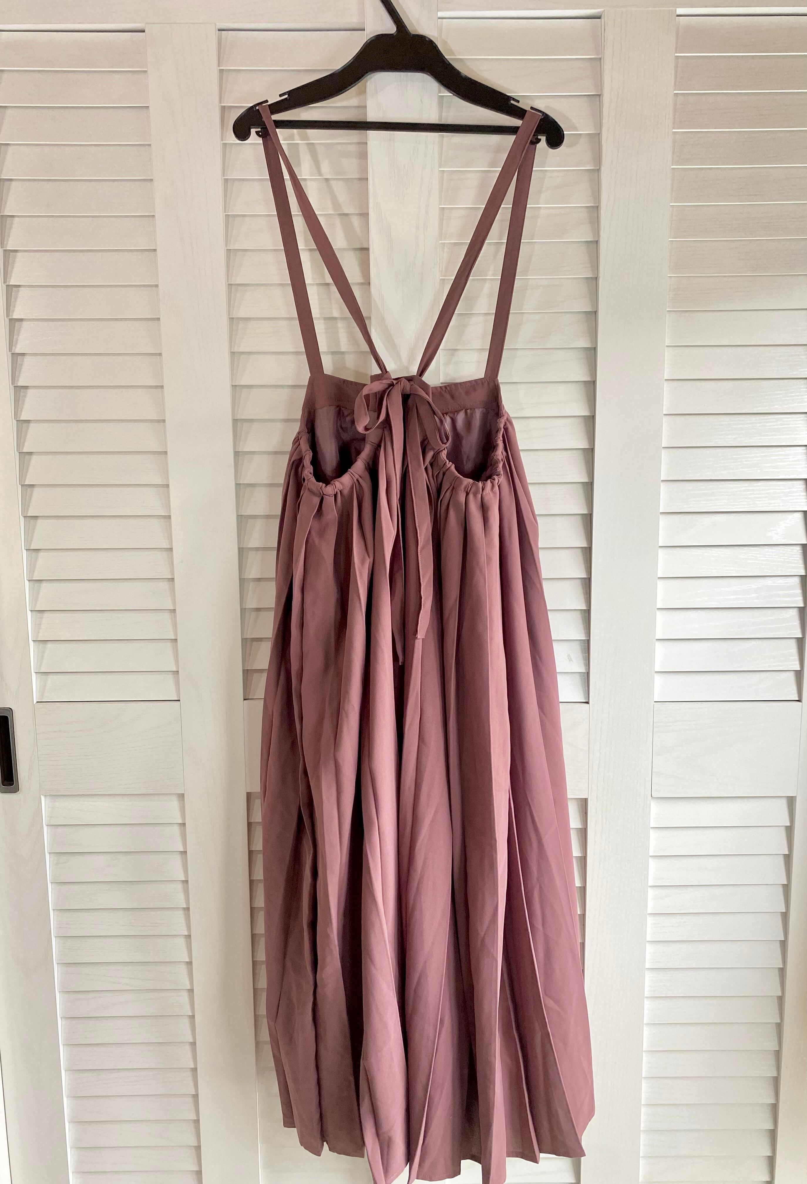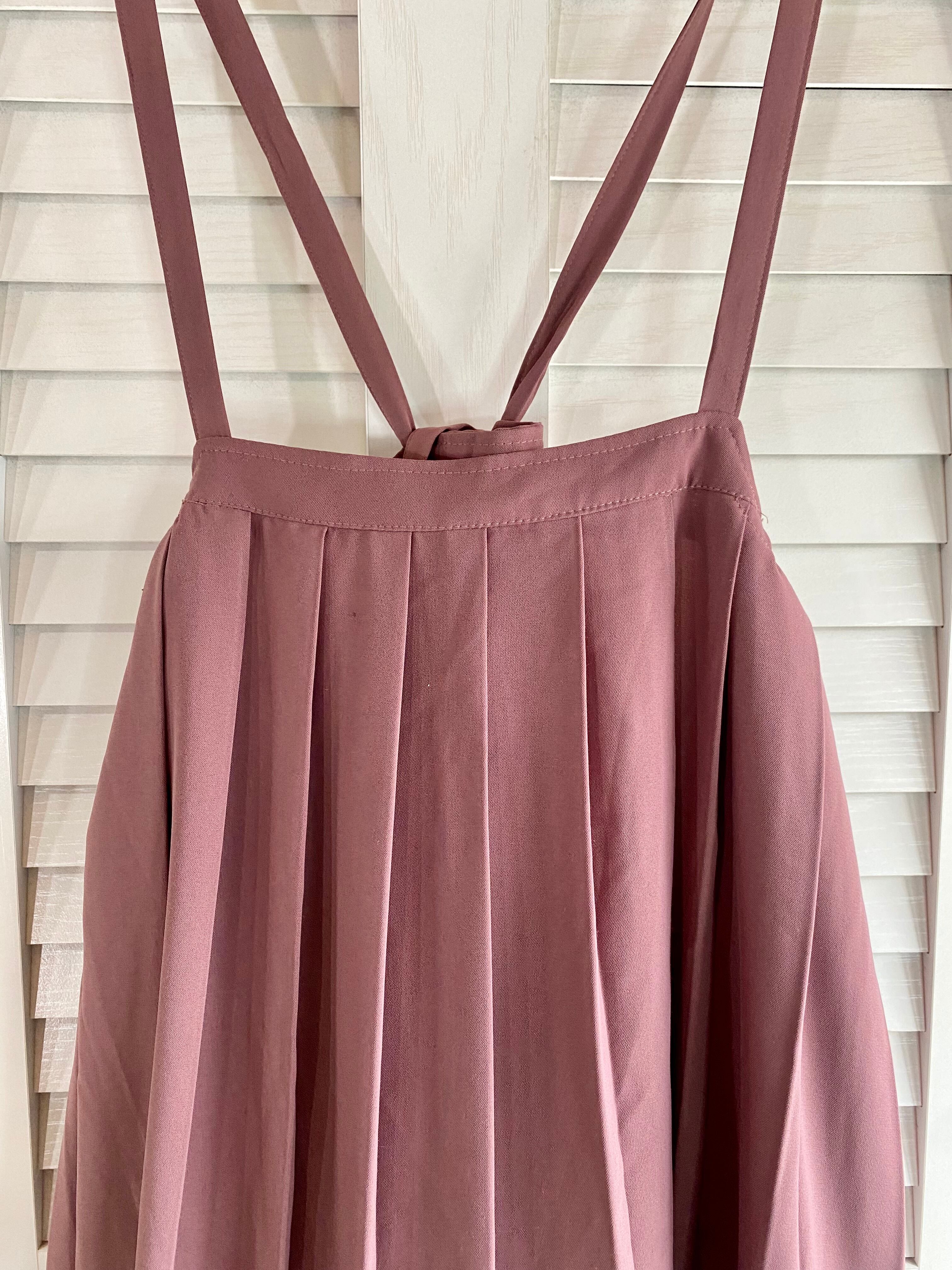 #18【デザインサンプル】ポリエステルジョーゼット サスペンダープリーツスカート モカピンク