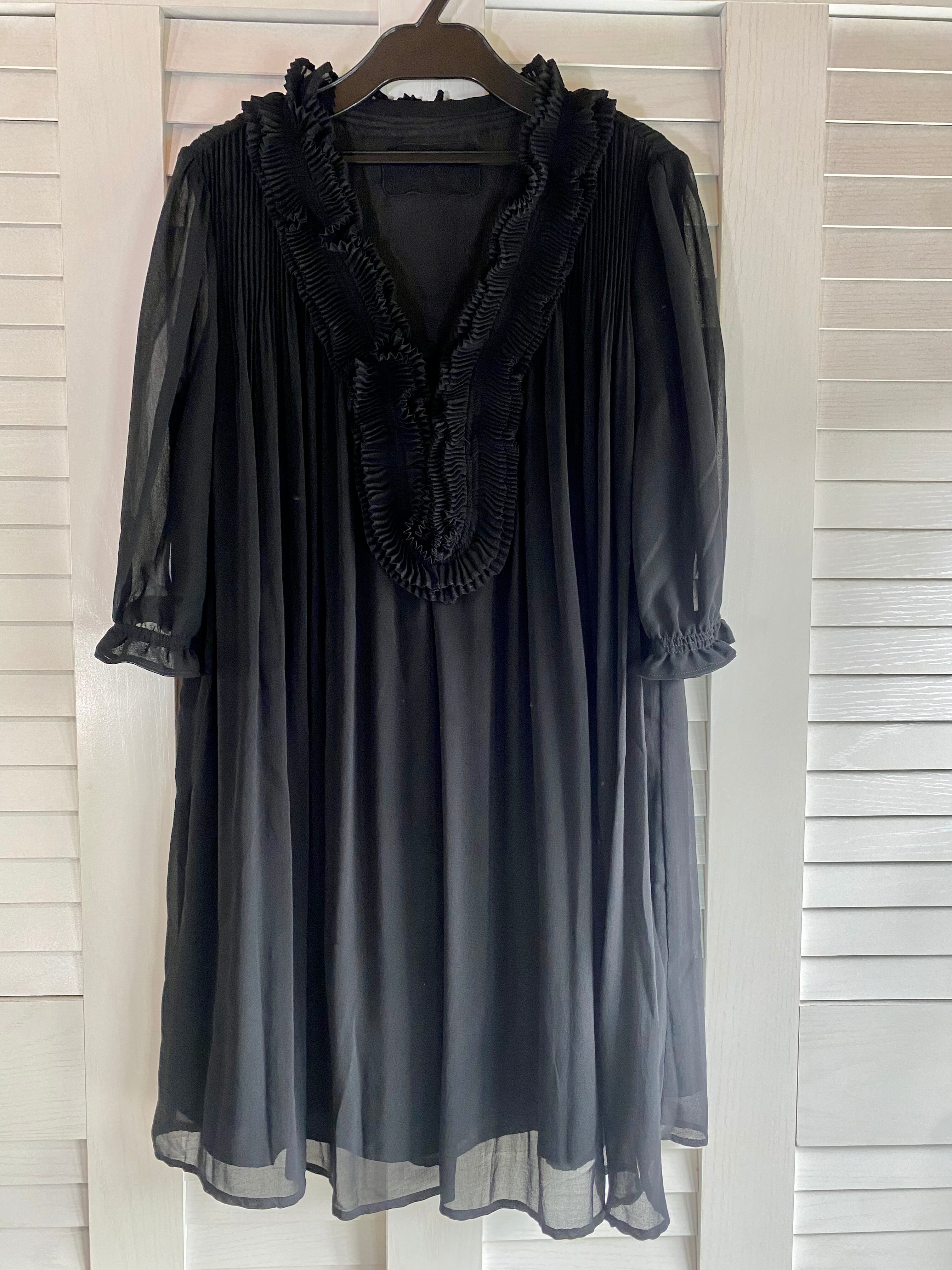 #18 Ray Beams ジャバラプリーツカラー シフォンジョーゼット チュニックワンピ ブラック