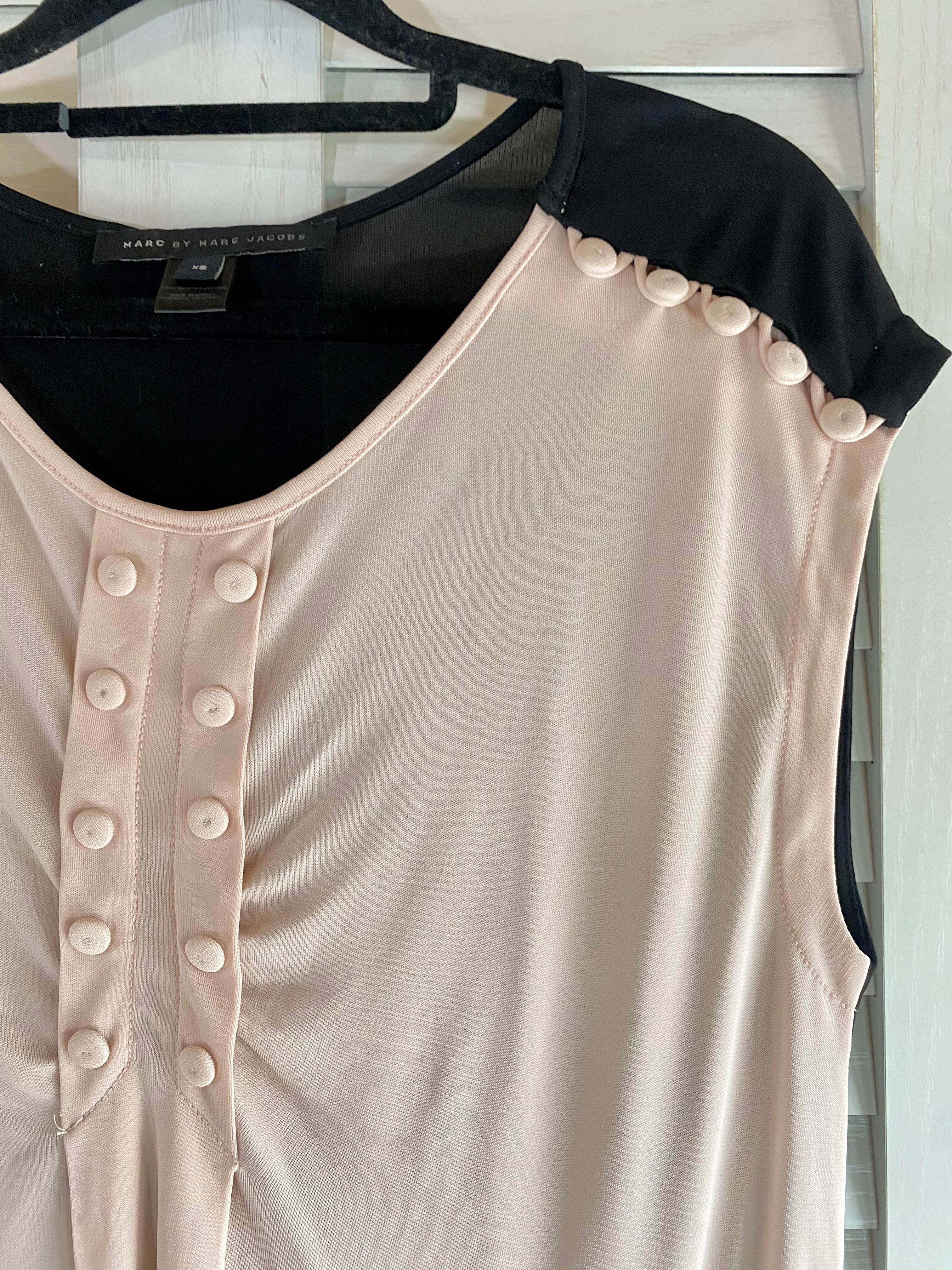 #18 MARC JACOBS バイカラー ボタンデザイン フレンチスリーブ ストレッチジョーゼットブラウス ピンクベージュ×ブラック
