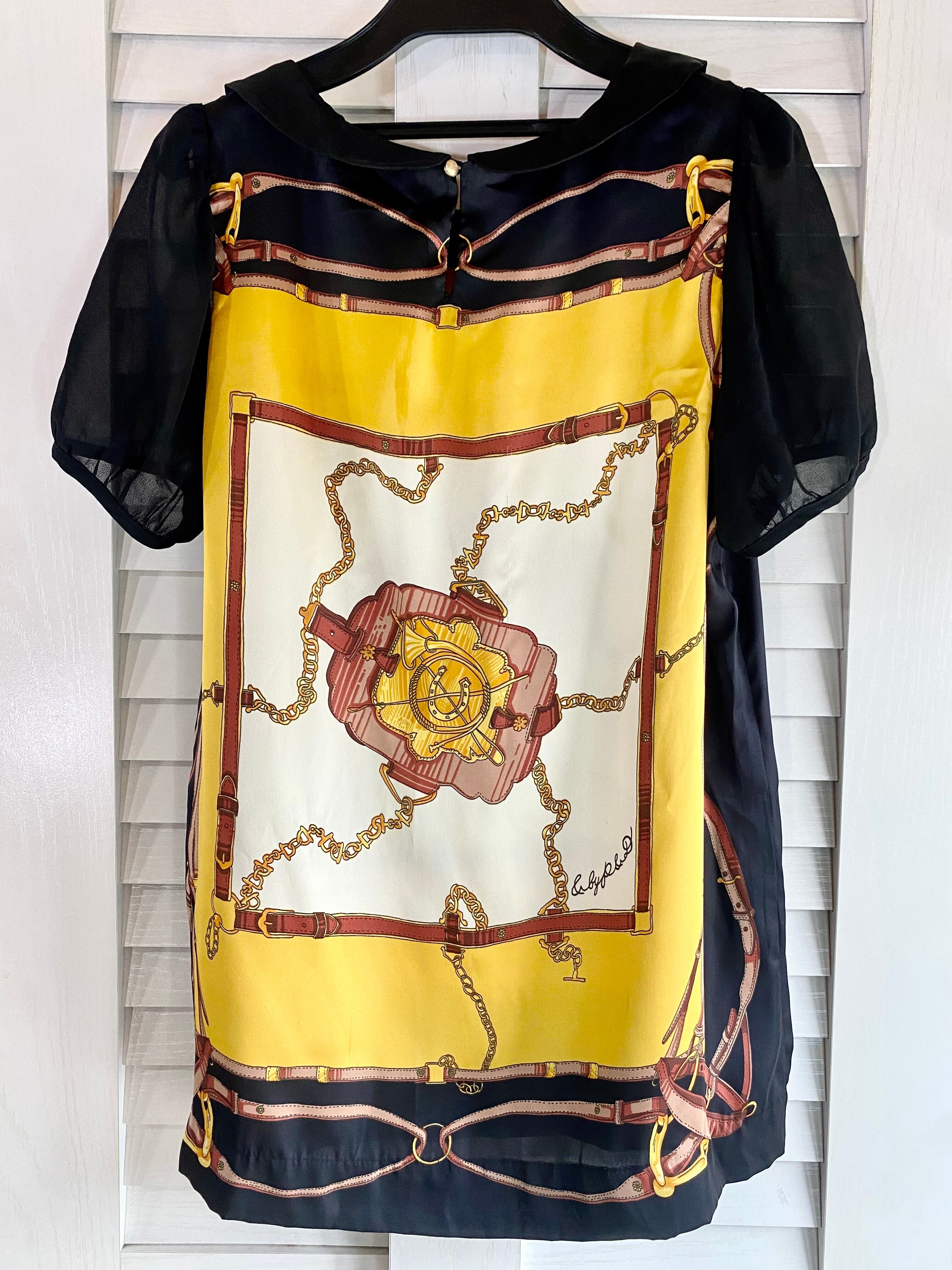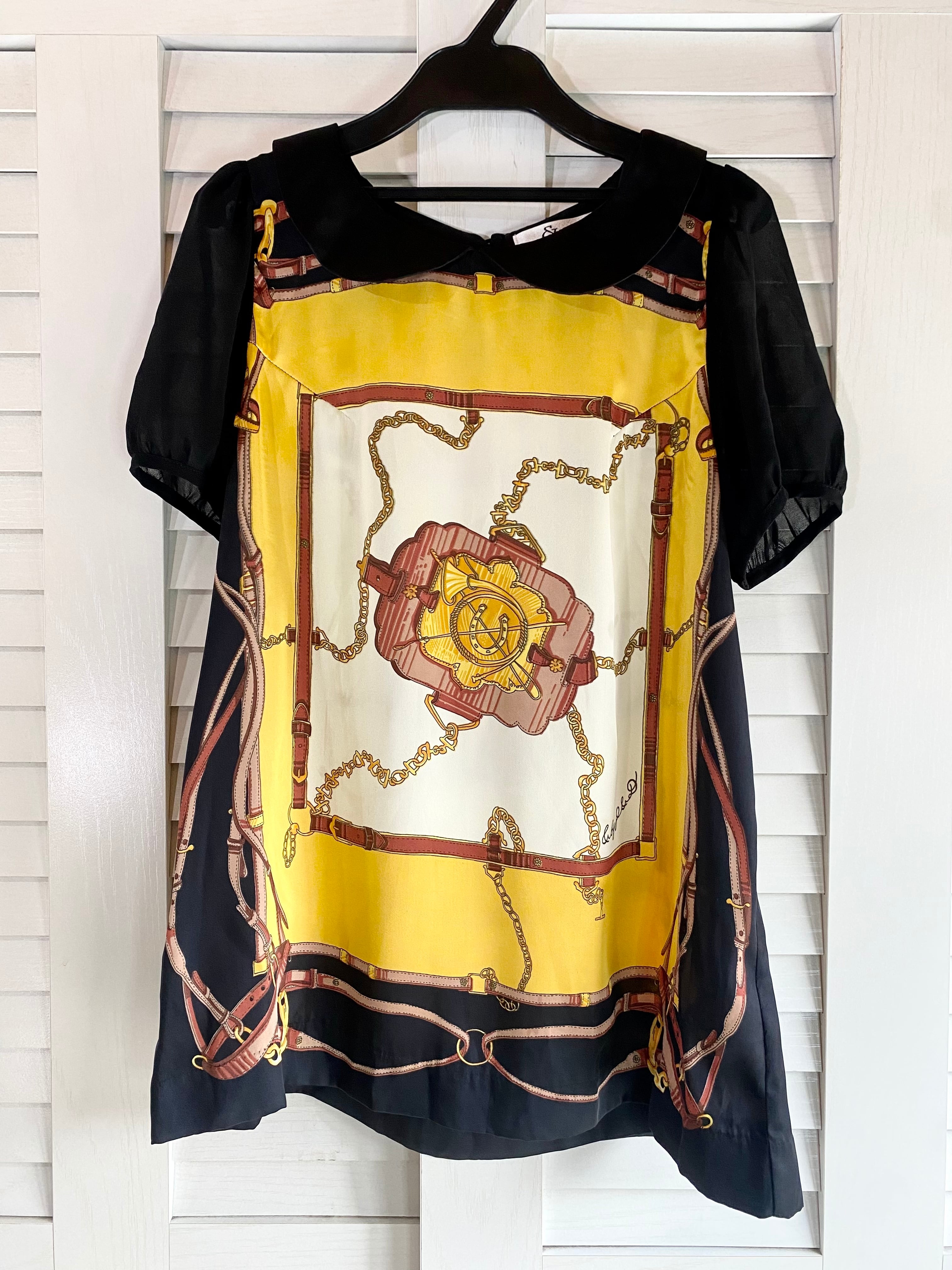 #18 & by P&D スカーフ柄フラットカラーシアースリーブブラウス ブラック