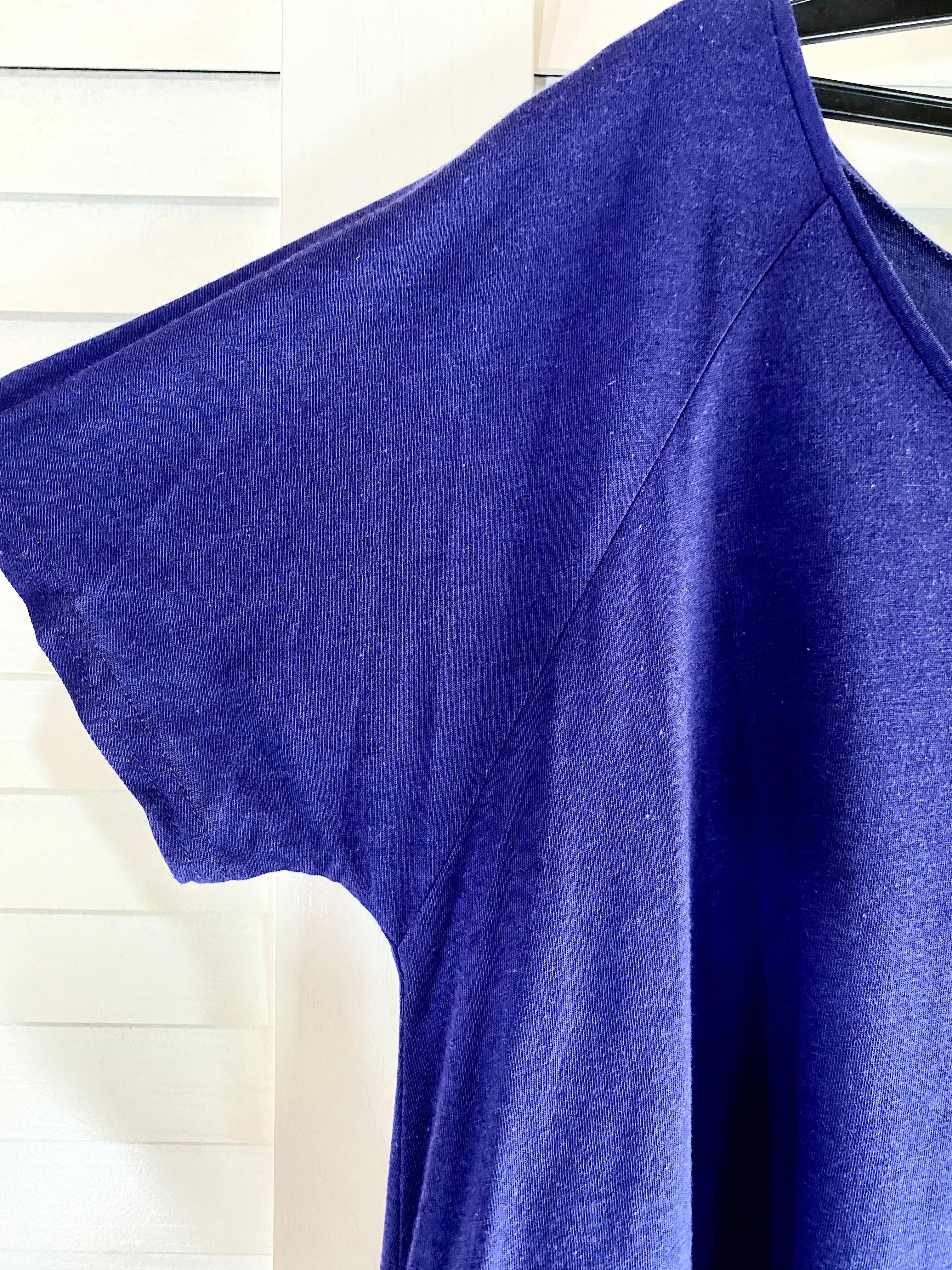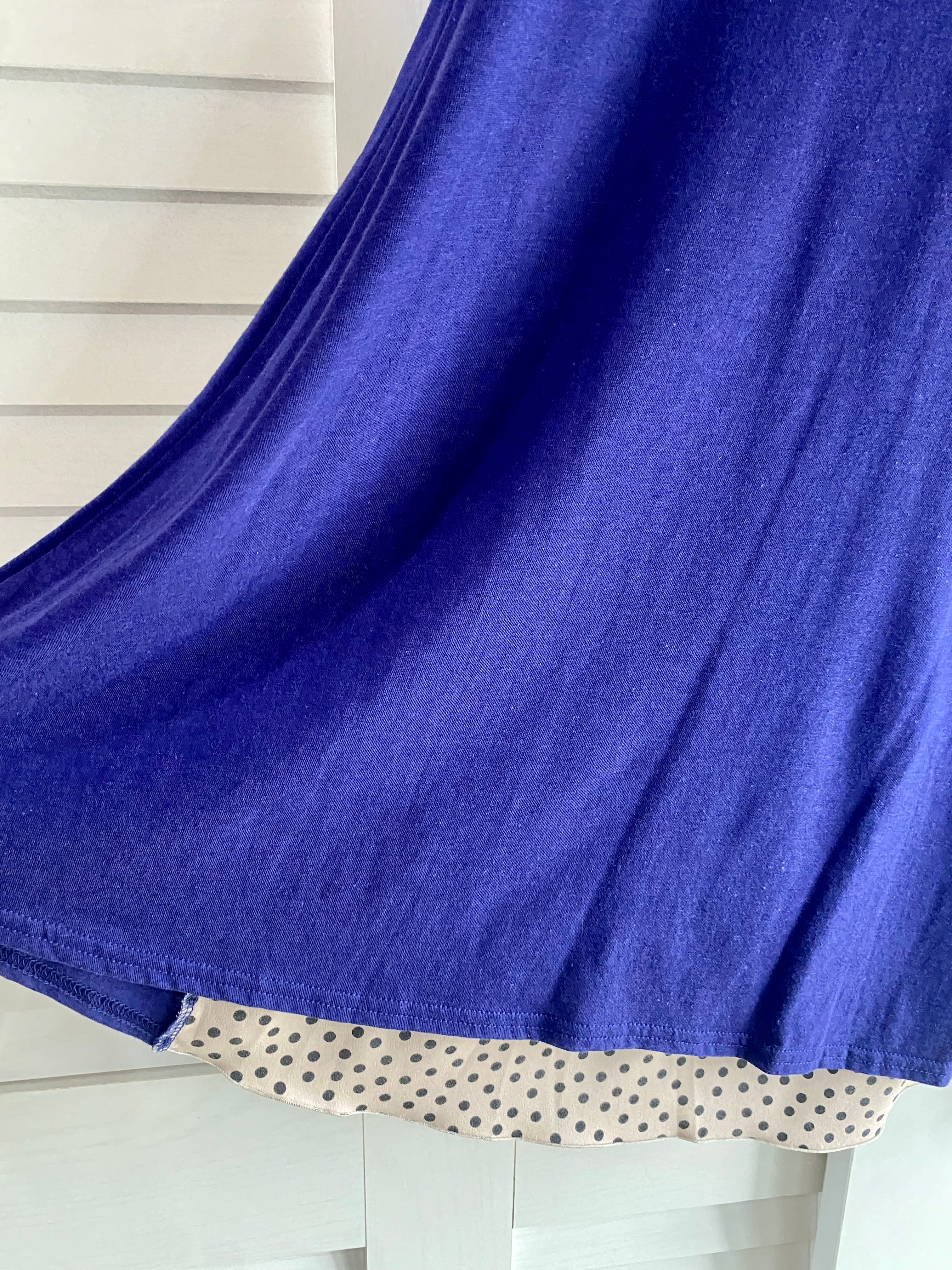 #18 Spick & Span ドットストレッチジョーゼット切替 コットンレーヨンカットソーボリュームブラウス ブルー