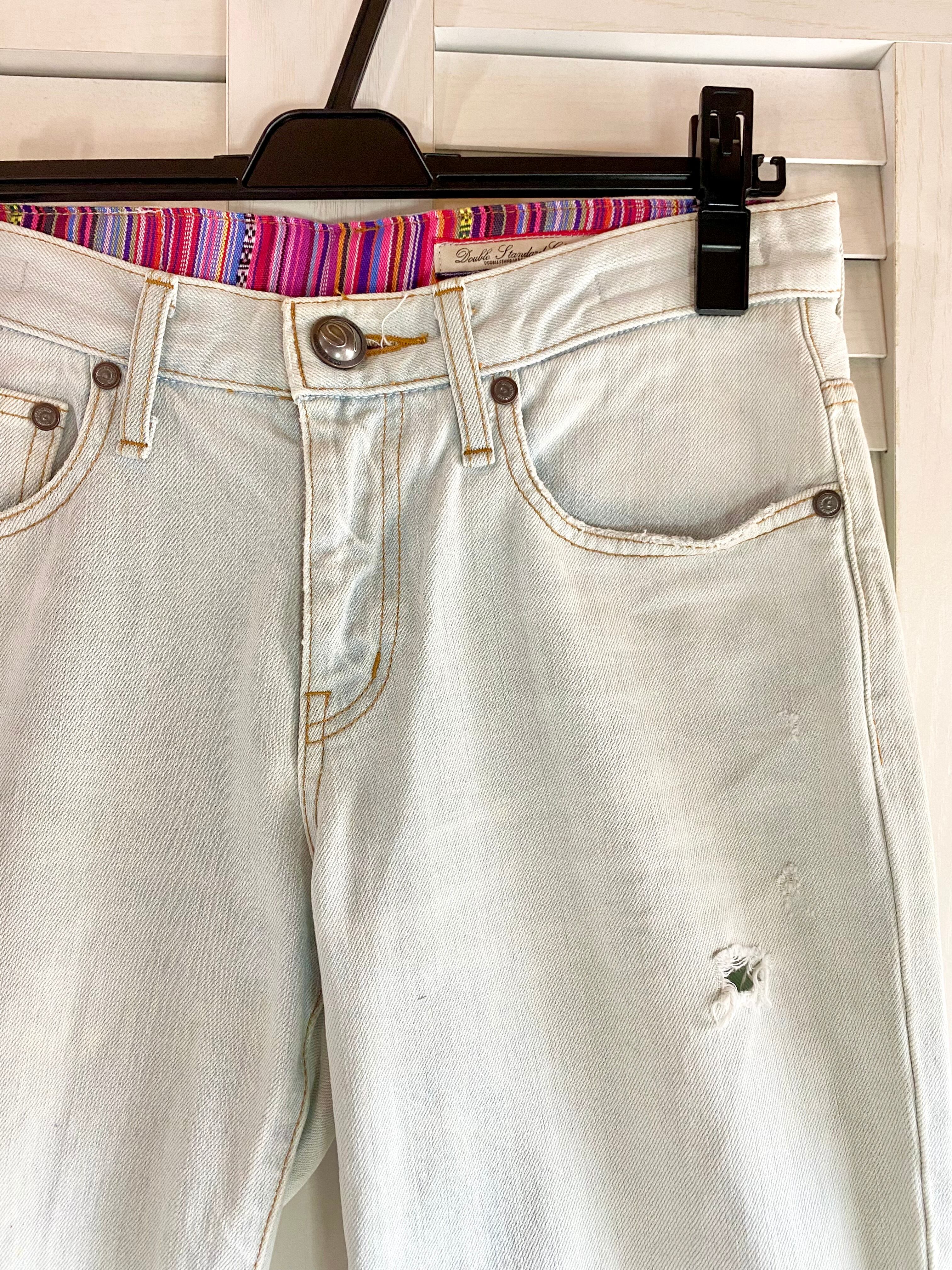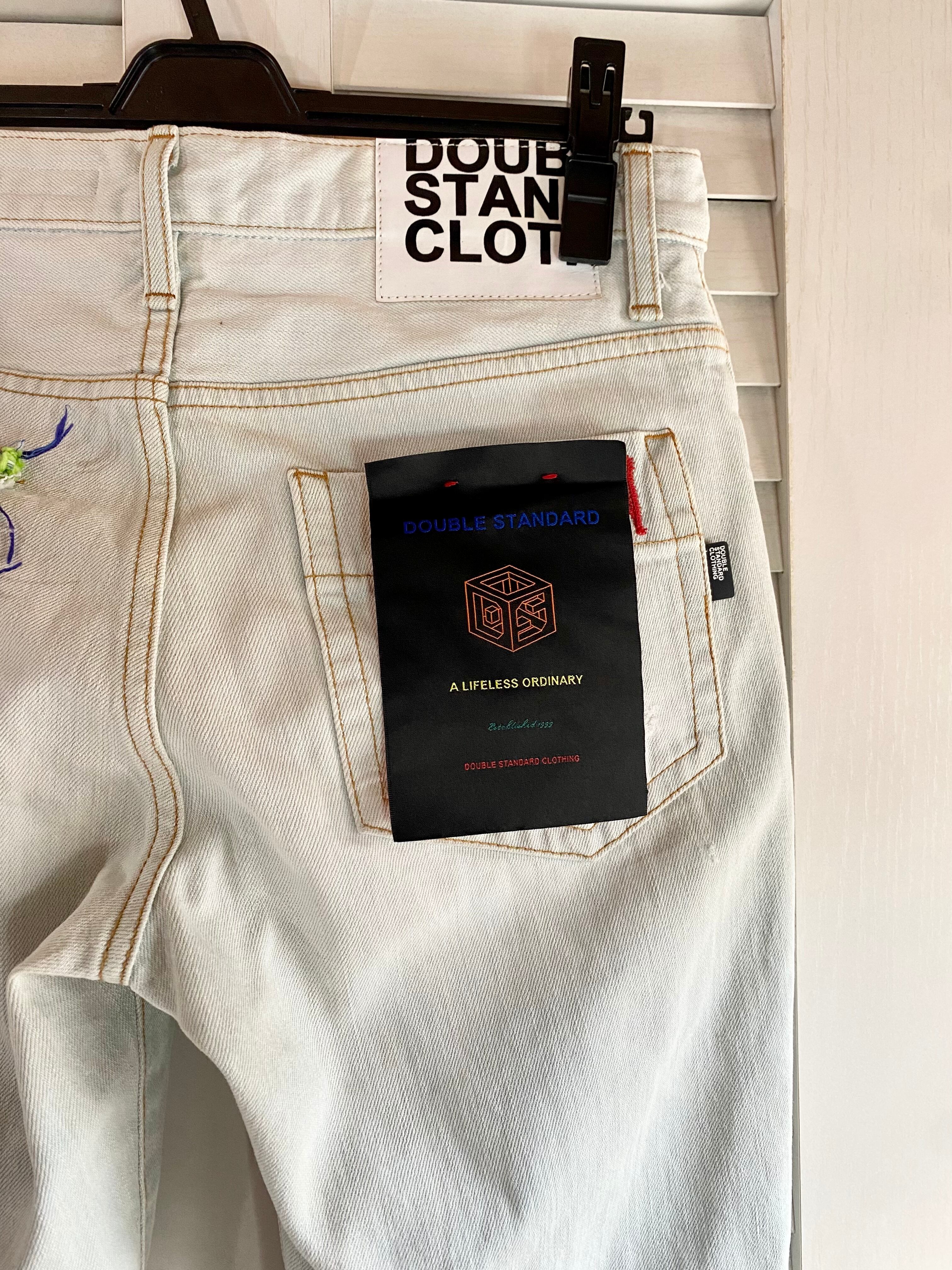 #19 DOUBLE STANDARD CLOTHING 定価4万!ダメージ加工 デザインテーパードジーンズ ライトブルー