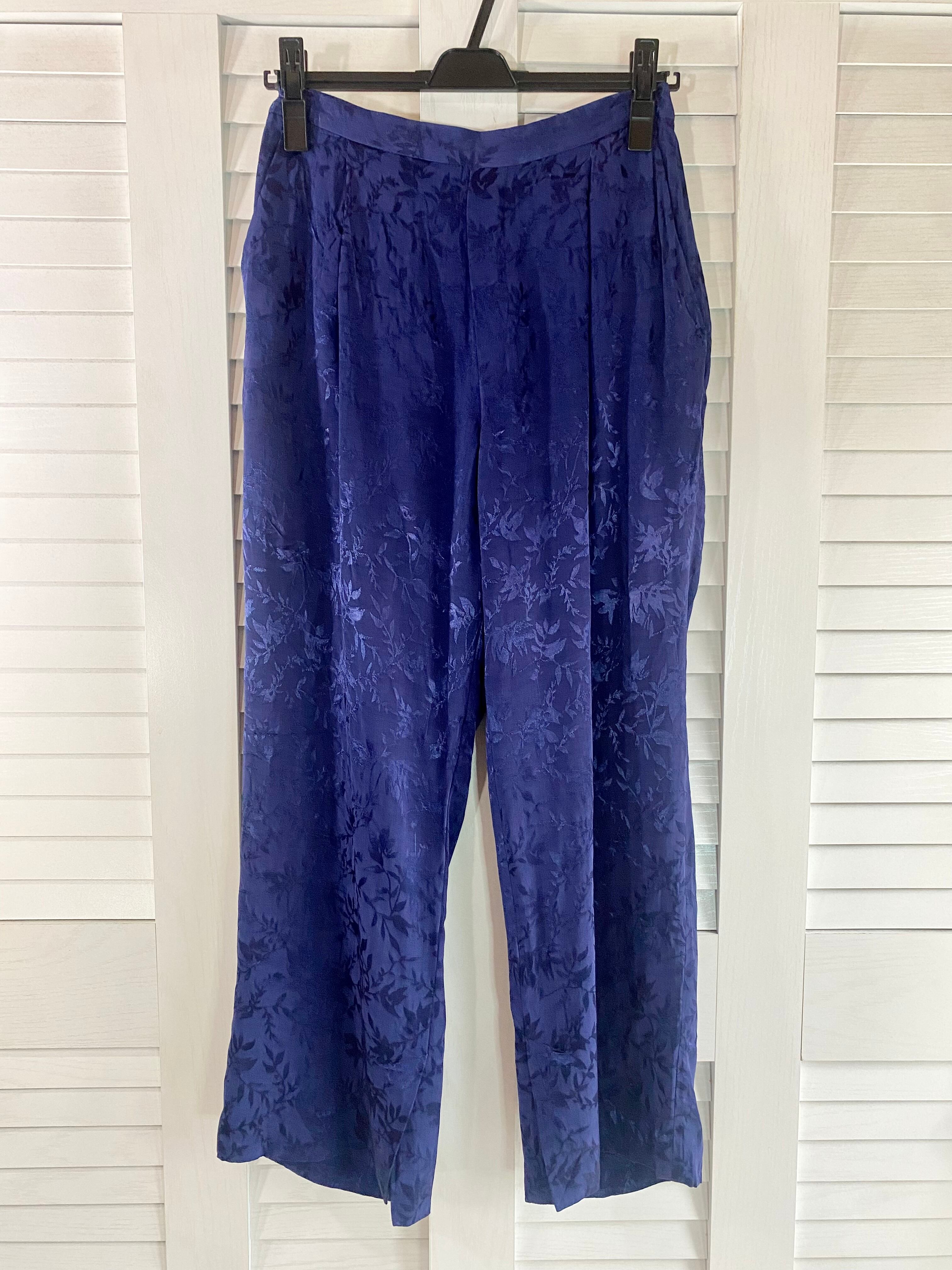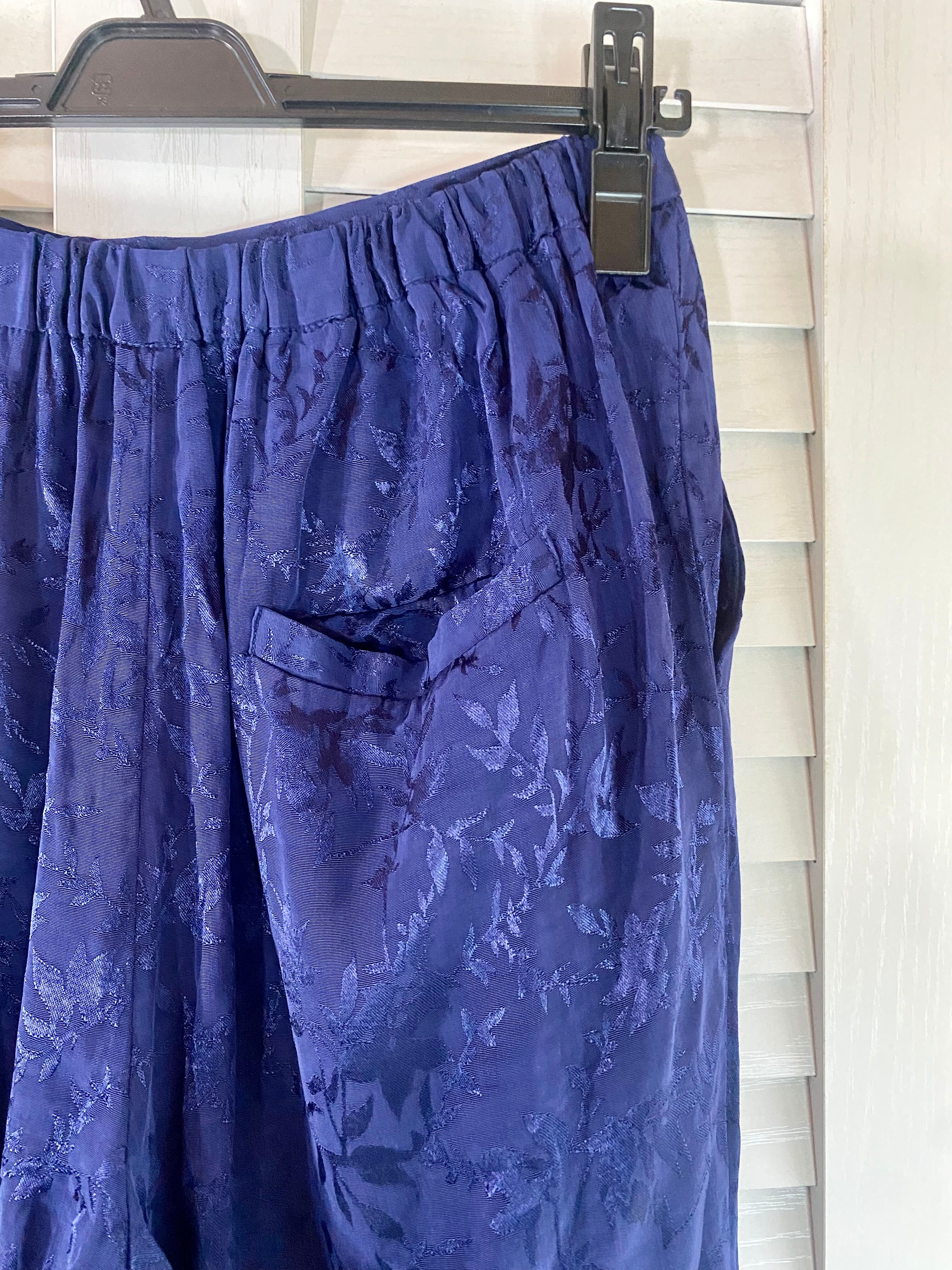 #20 Simplicite レーヨンジャガードサテン ワンタック ルーズストレートパンツ ネイビー