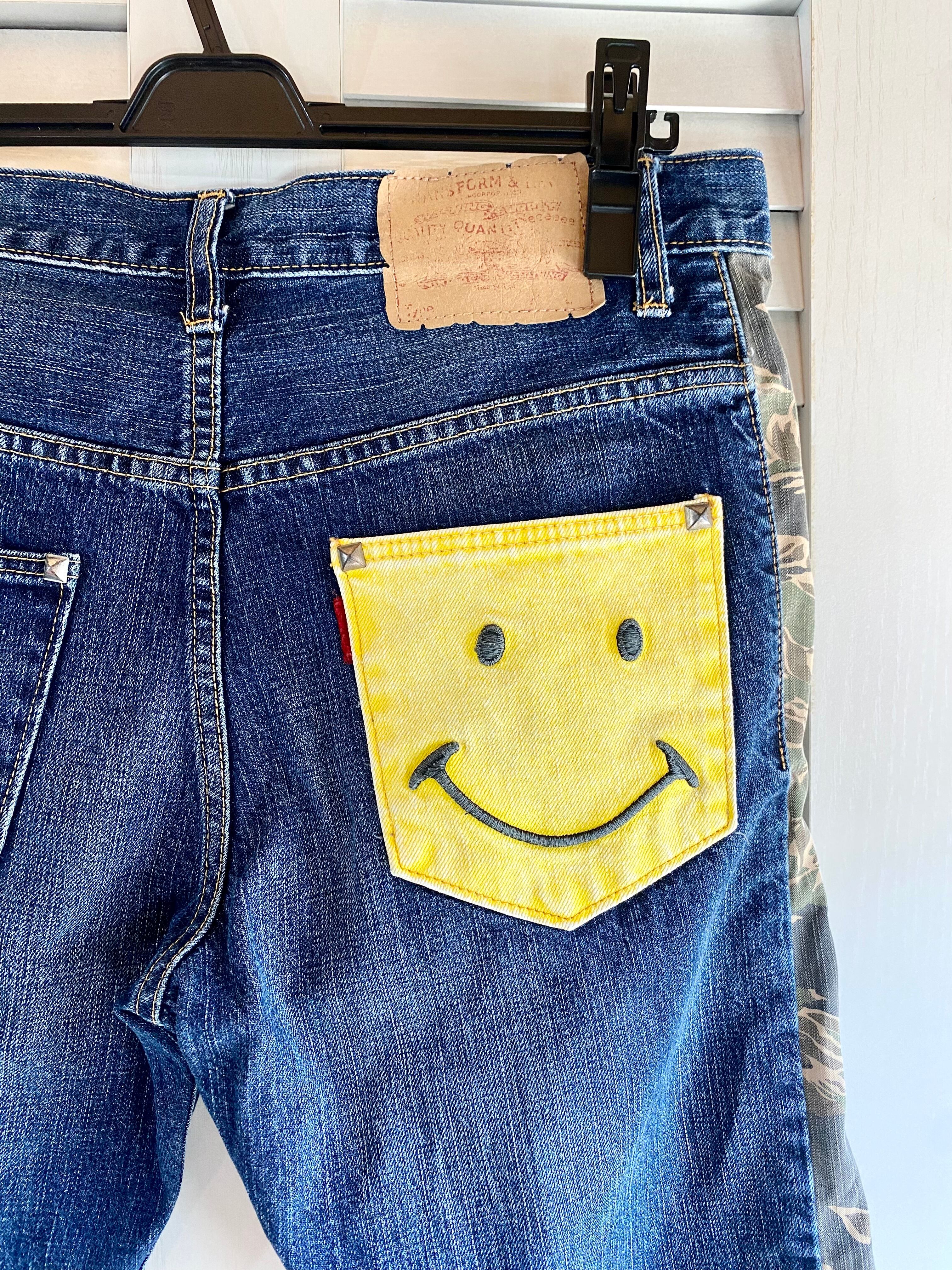 #21 RNA ヴィンテージSMILEポケット 迷彩ライン&スタッズデザイン クロップドジーンズ インディゴ