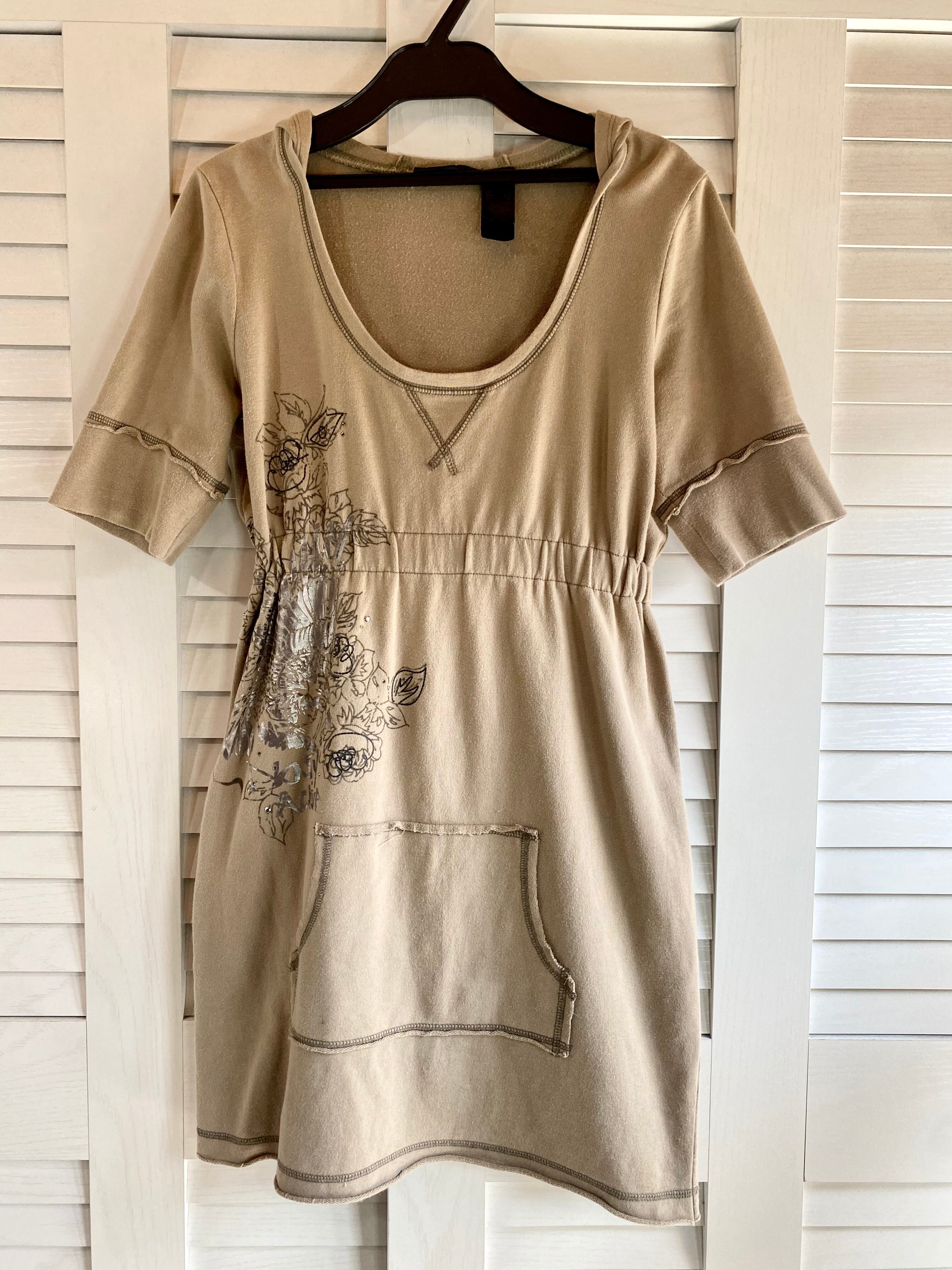 #21 DKNY フラワードローイングプリント スウェットフーディーチュニックワンピ ベージュ