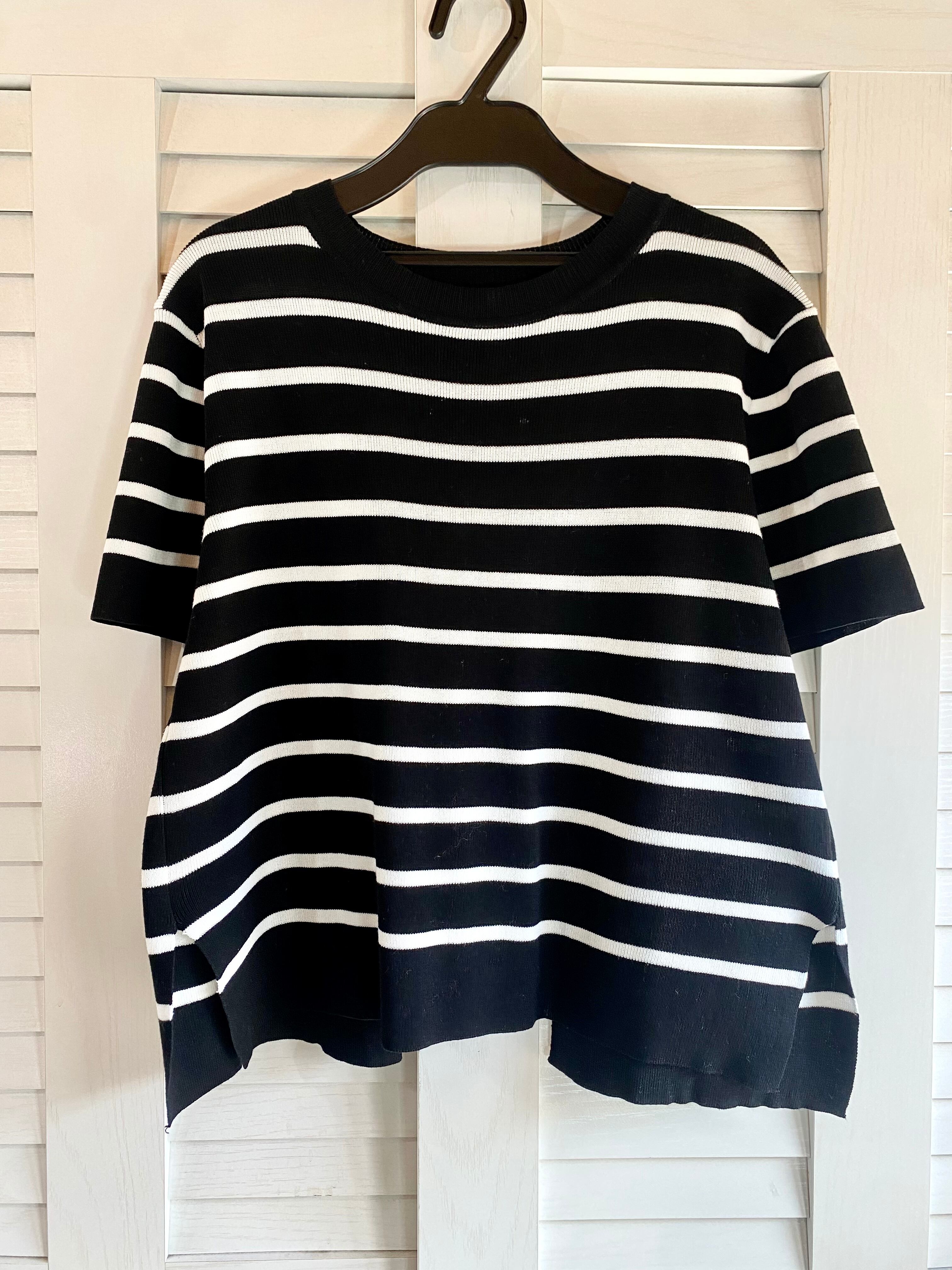 #21 coca バックスリット ボーダーレーヨンニット ブラック