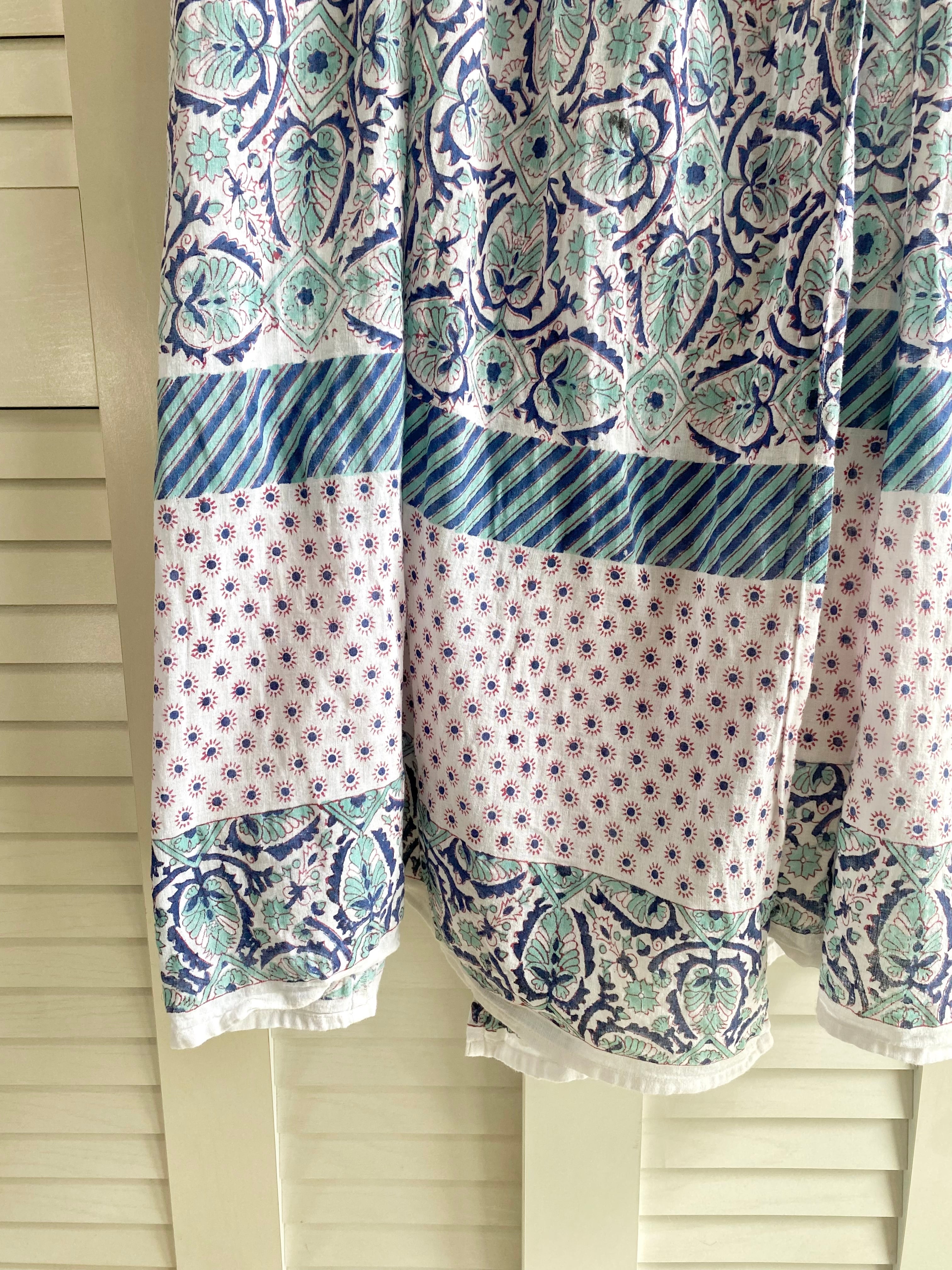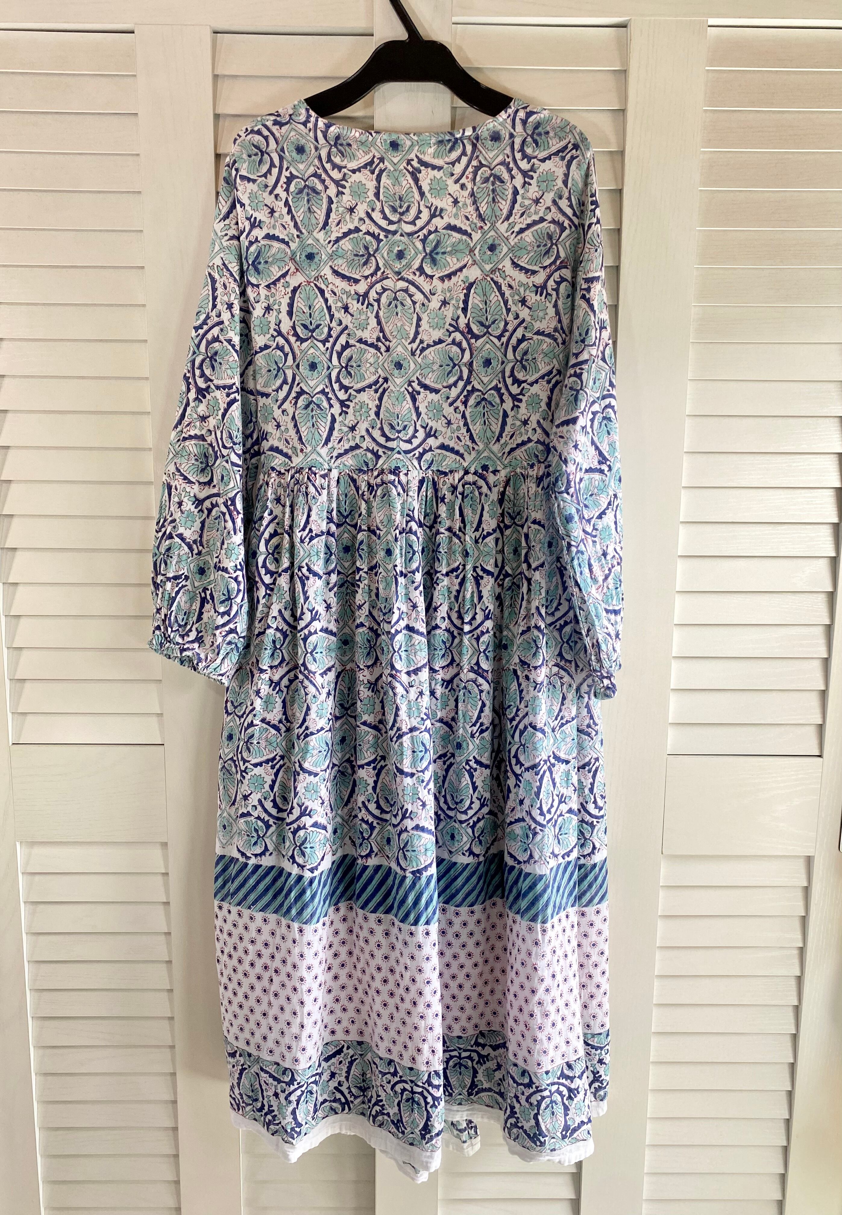 #22 yel コットンリネンガーゼ カシュクールボリュームワンピ ホワイト×ブルー
