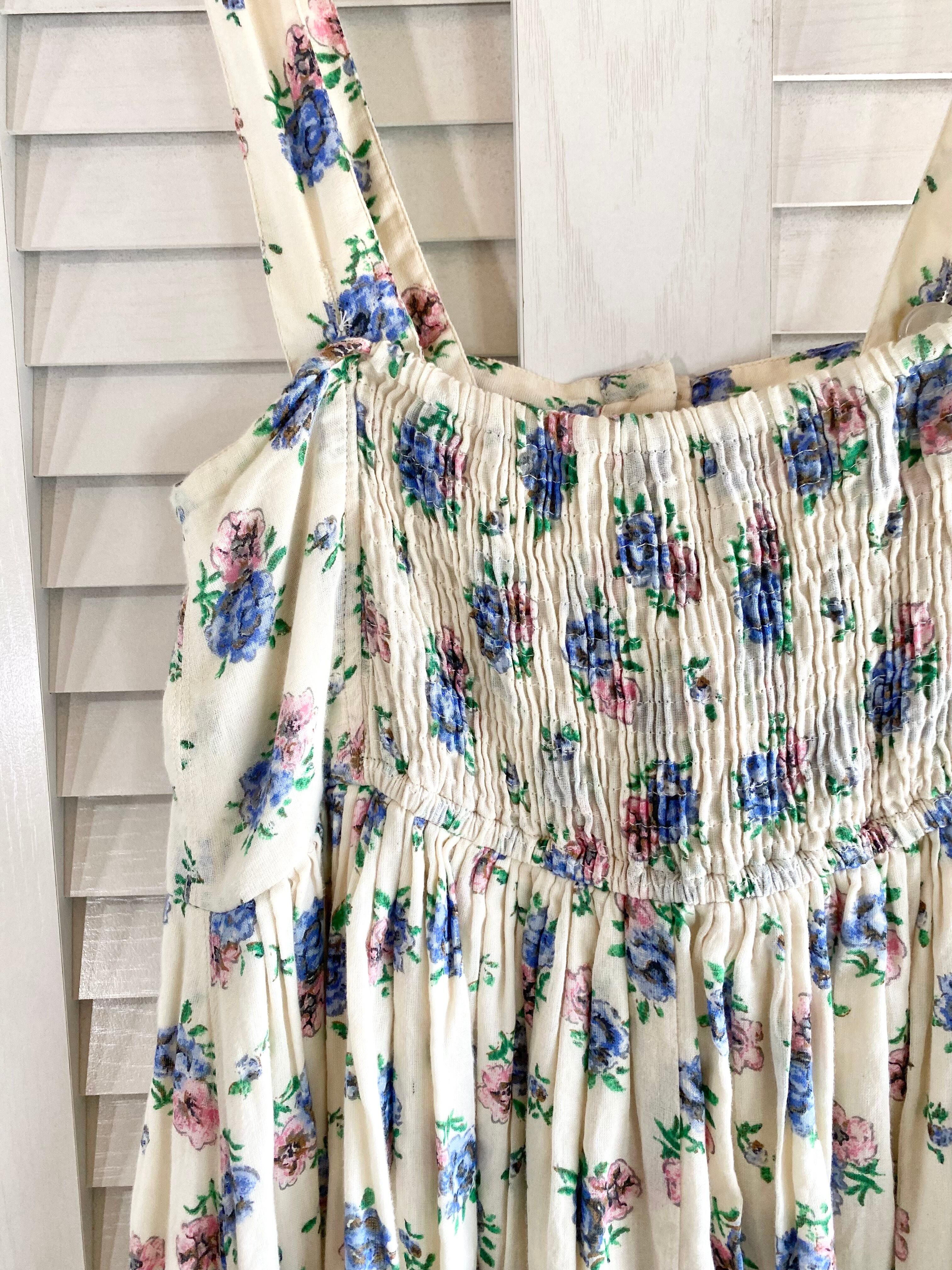 #22 Another Edition フラワープリント コットンガーゼ サロペットボリュームスカート クリーム ※保管シミ有り