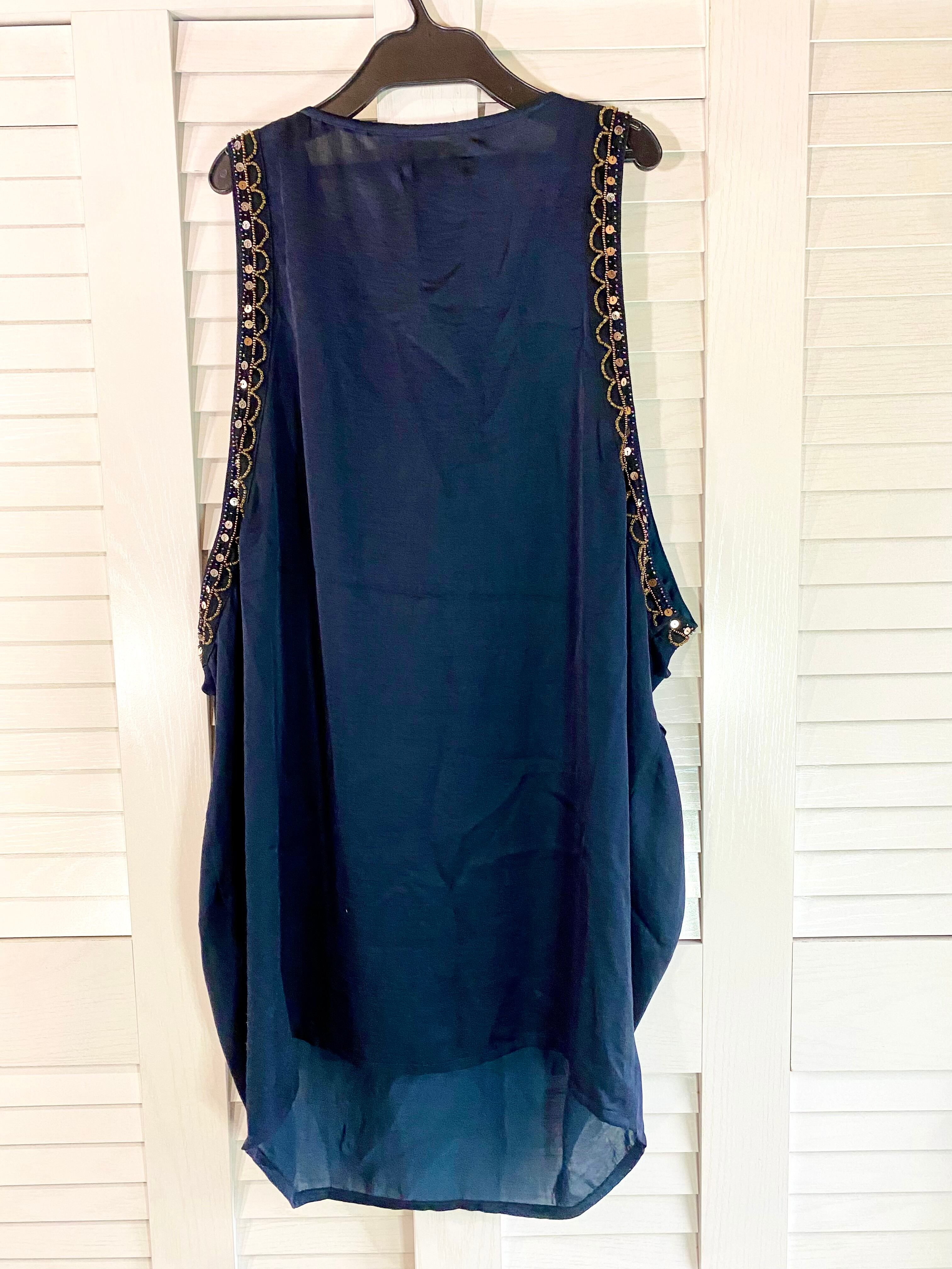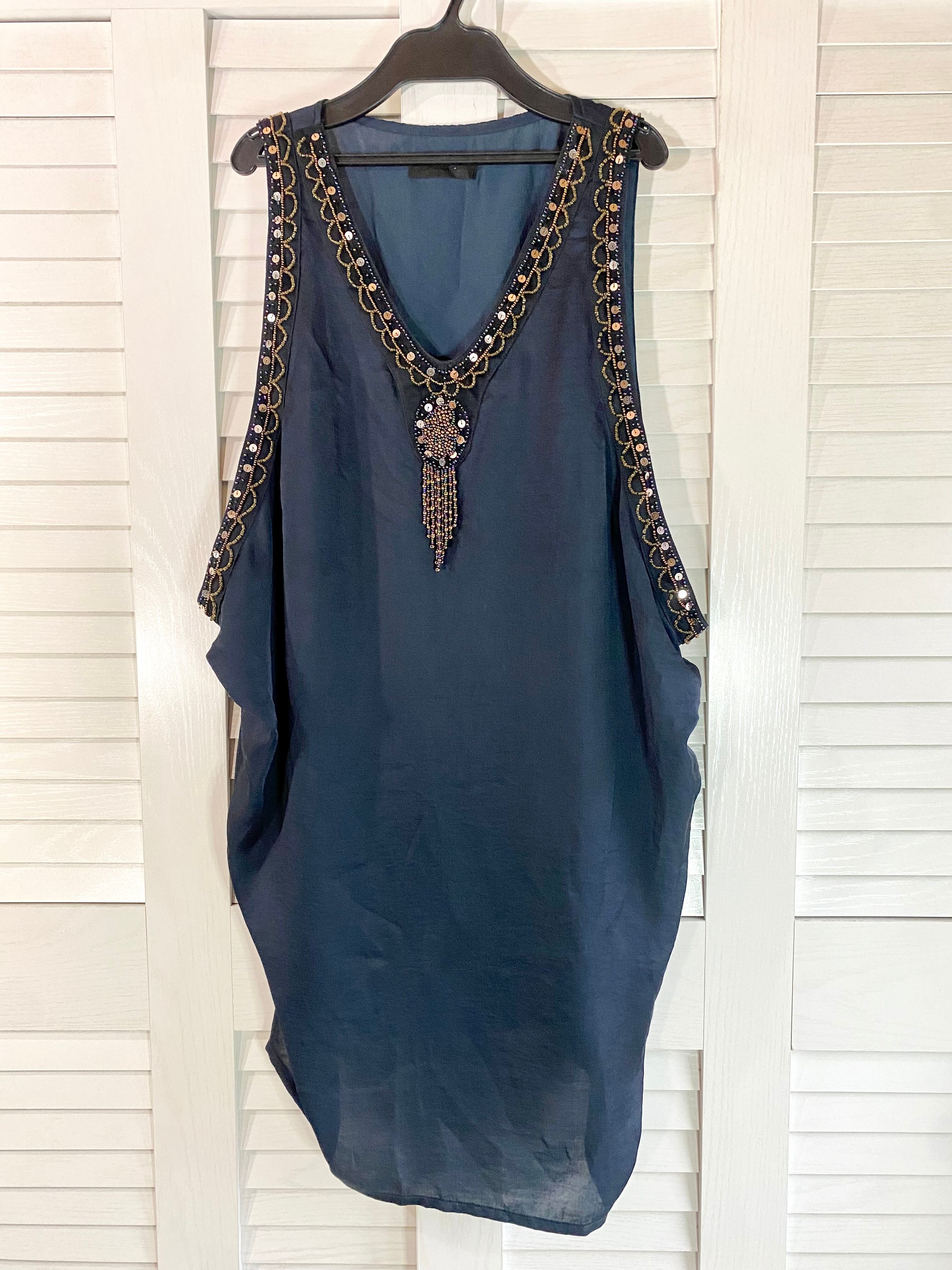 #23 JEANASIS ビーズ刺繍 ヴィンテージサテン ノースリーブチュニックワンピ ネイビー