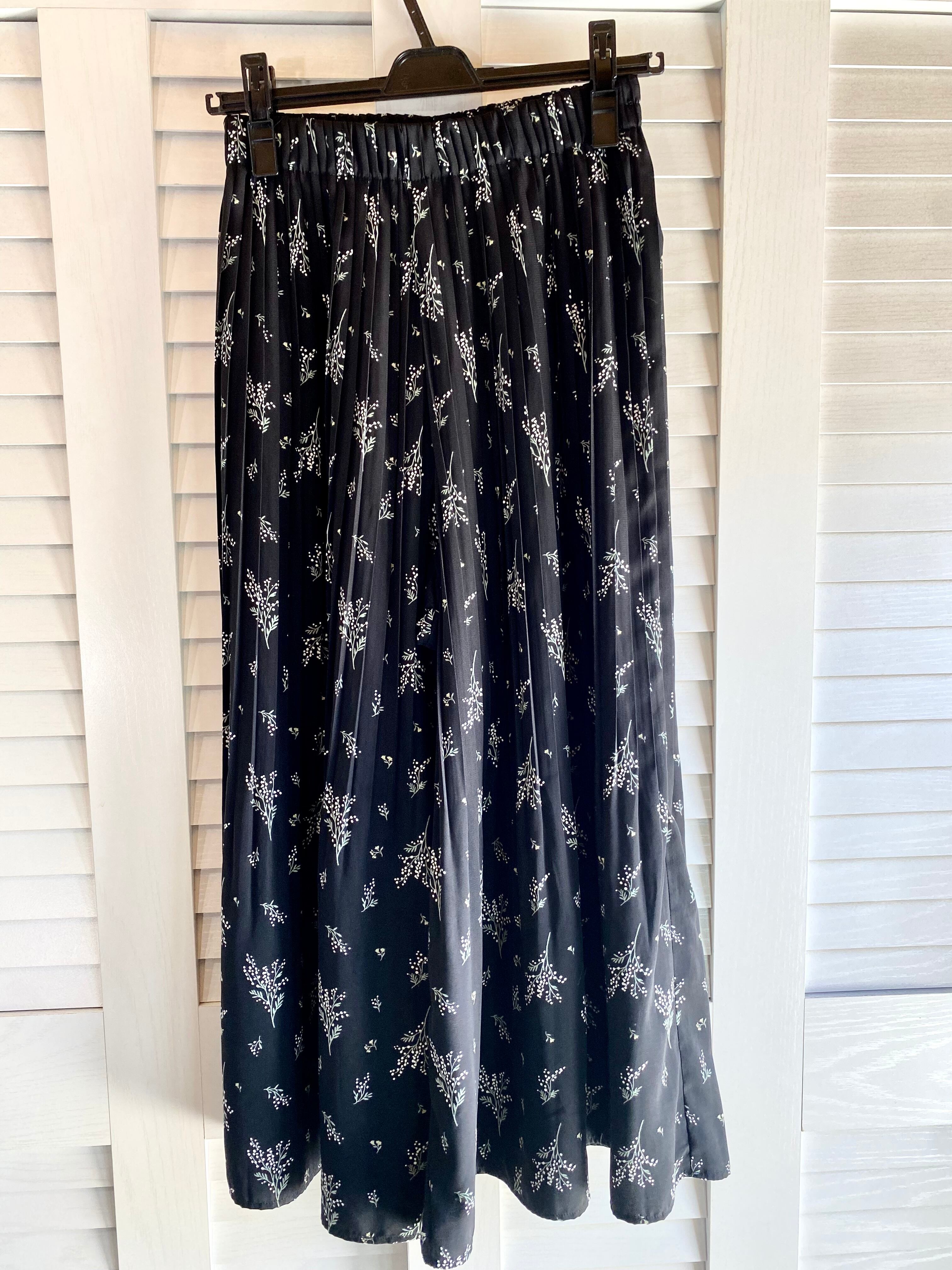 #24 grove インゲボルグなスズラン柄 プリーツワイドパンツ ブラック