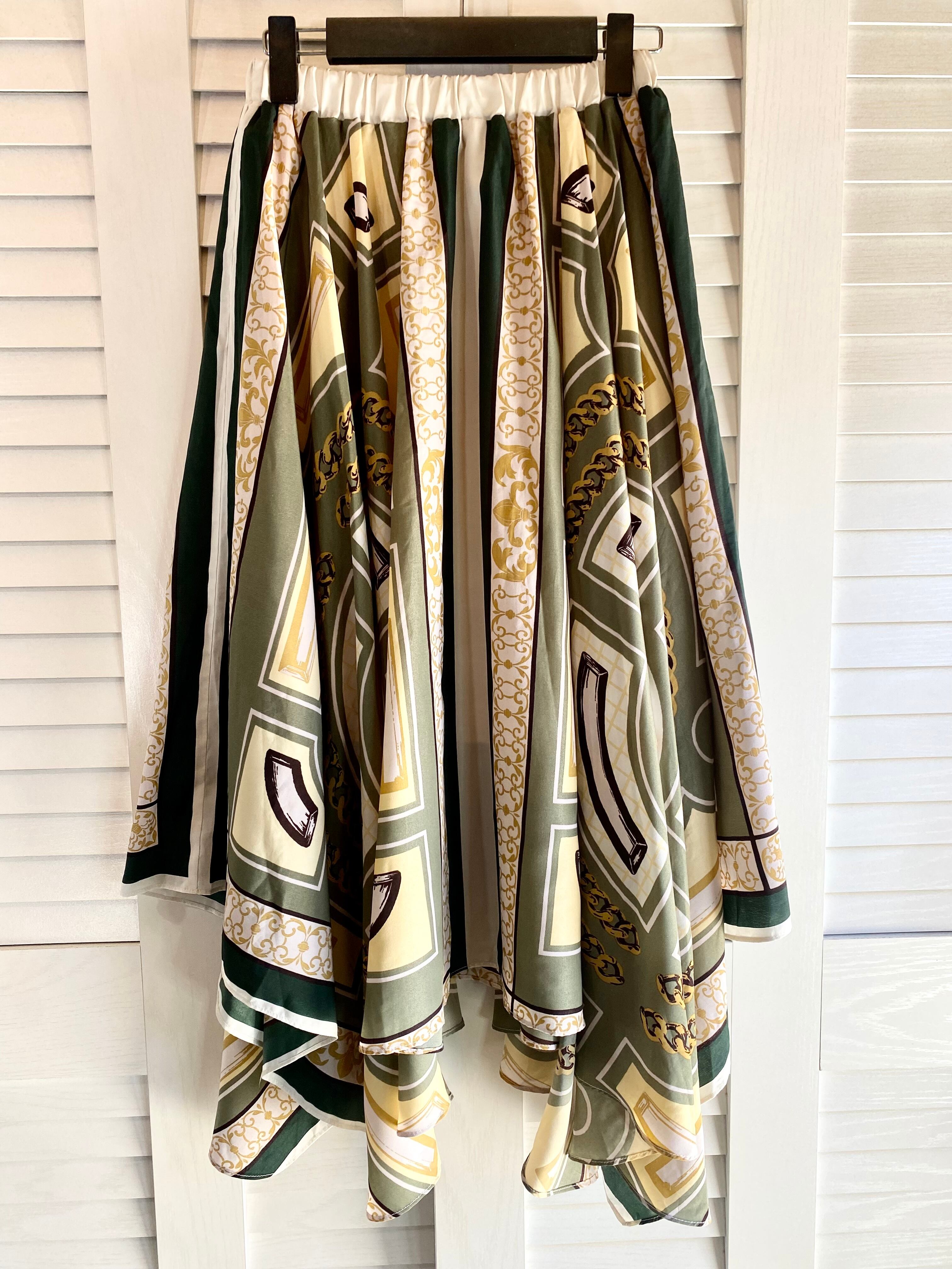#24 JEANASIS スカーフプリント イレギュラーヘム フレアースカート アイボリー