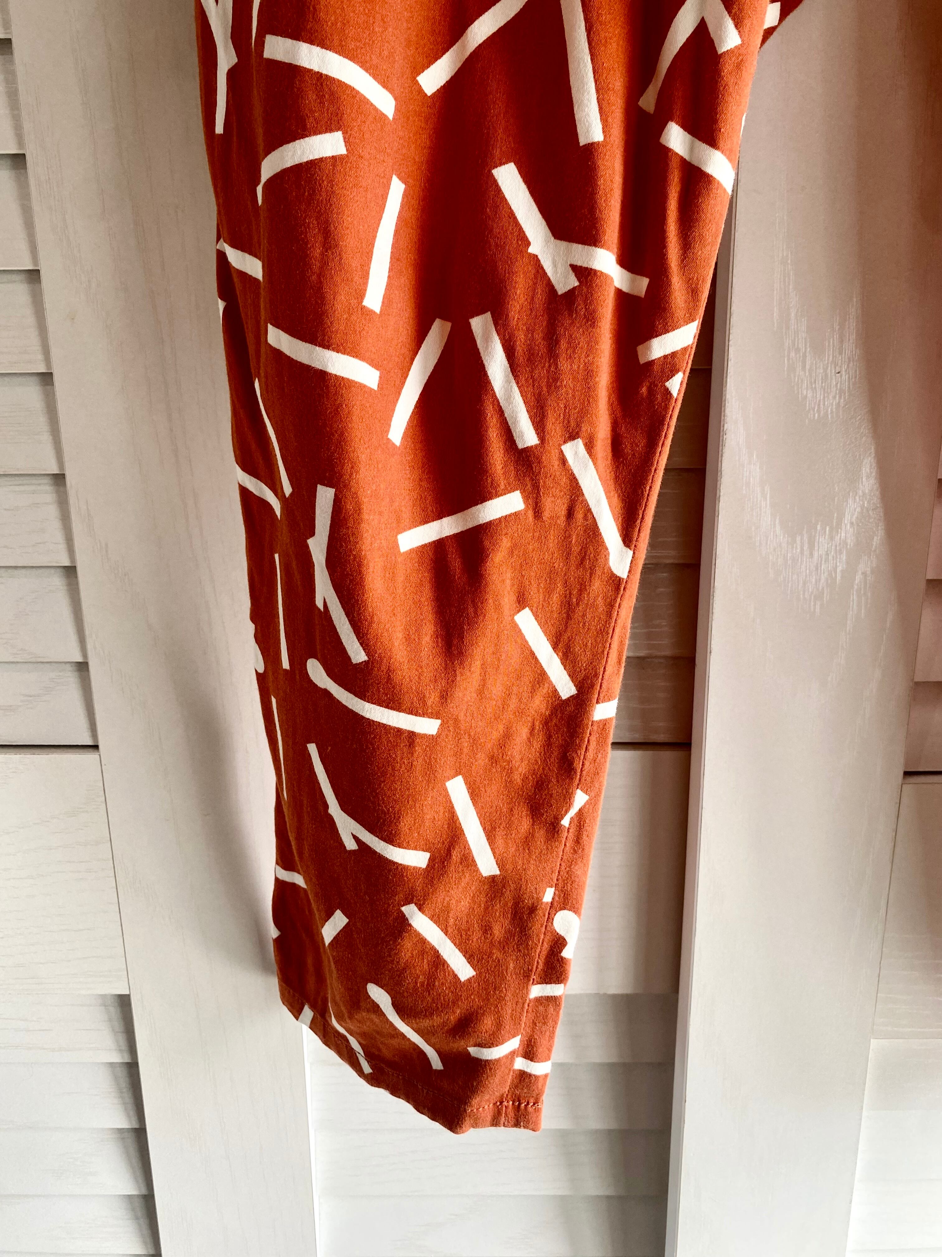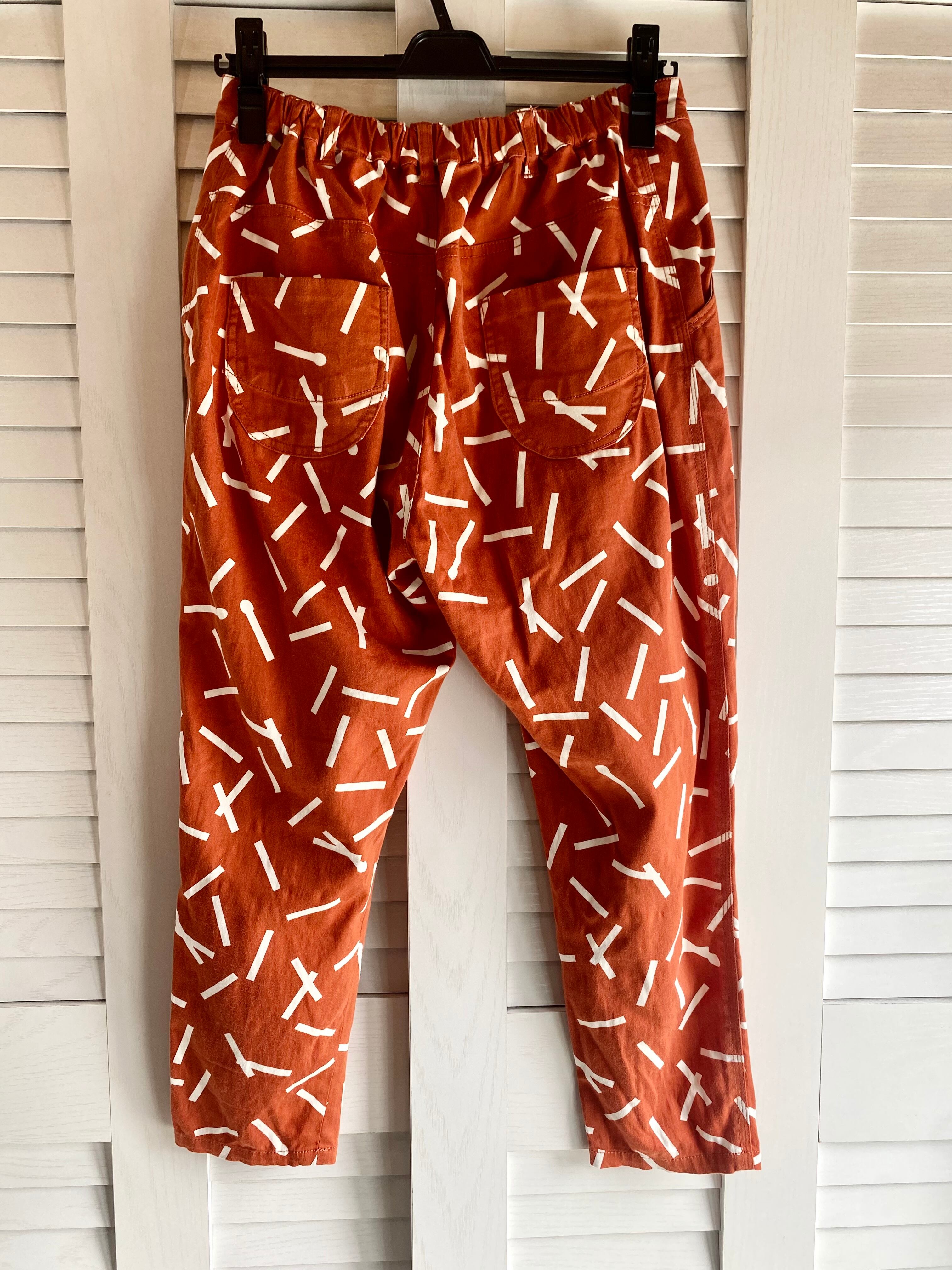 #25 bulle de savon マッチ棒柄 コットンストレッチ ワンタック クロップドテーパードパンツ オレンジ
