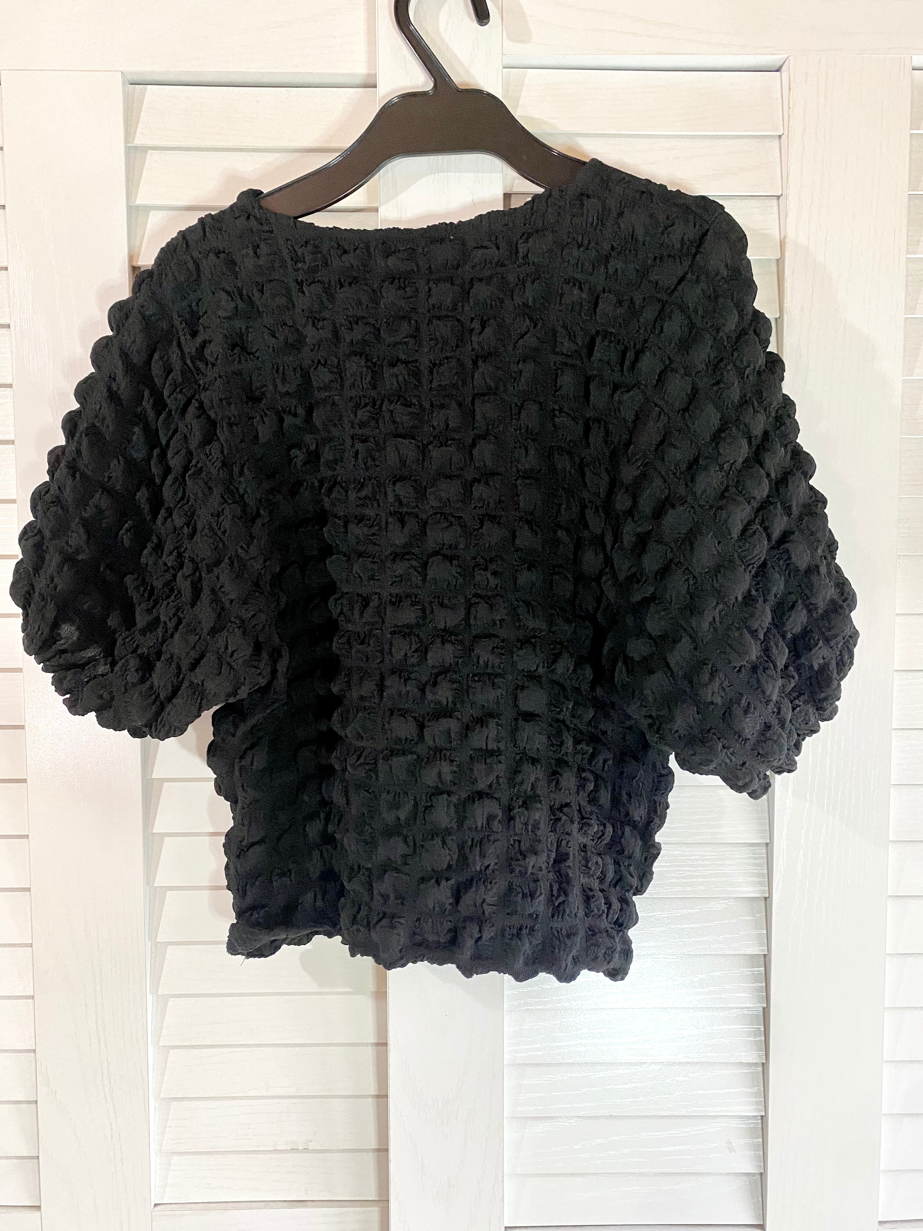 #26【デザインサンプル】BIGチェック リップル加工ブラウス ブラック
