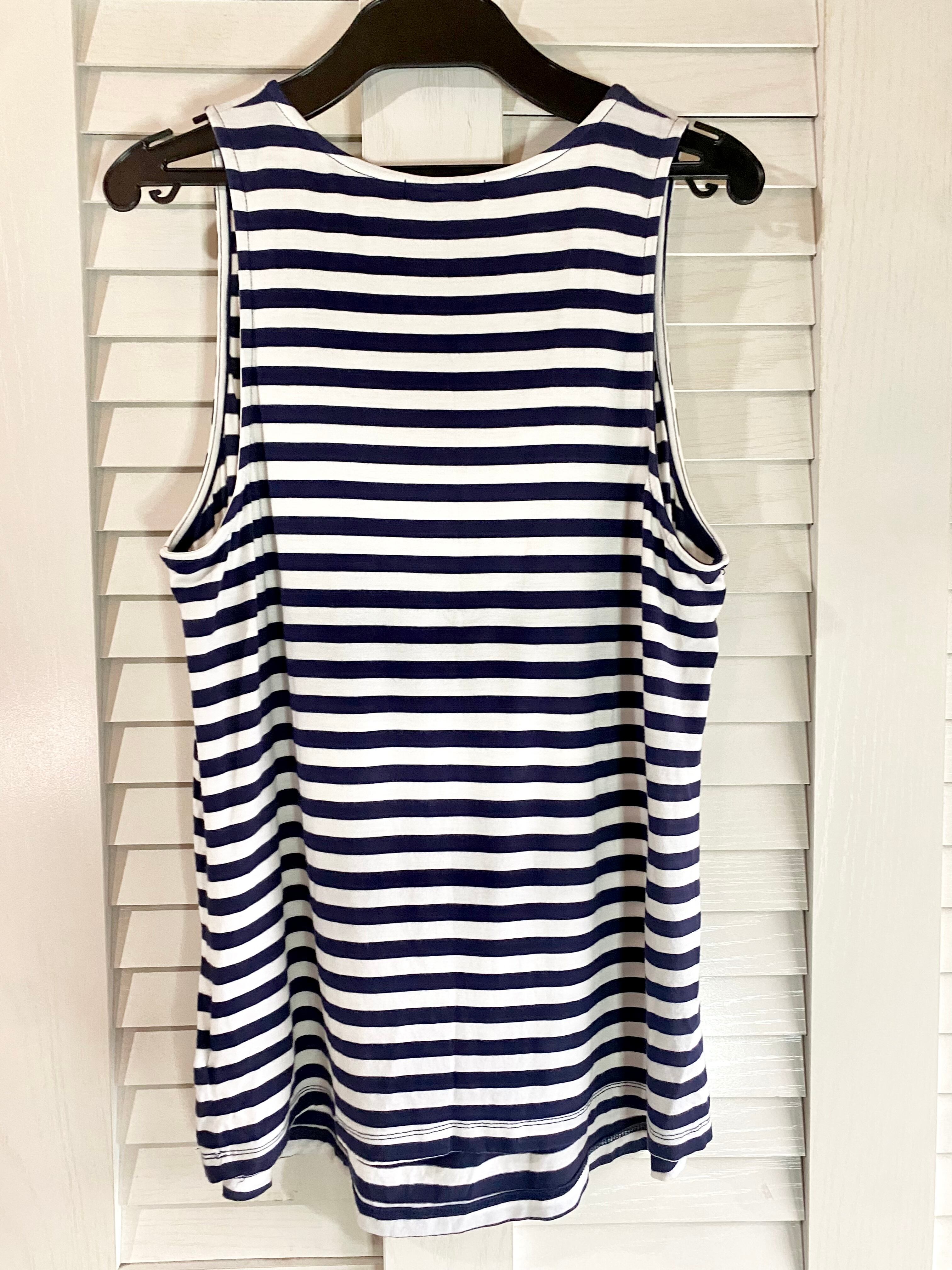#26 twentyone シャーリングデザイン ボーダーノースリーブカットソー ネイビー