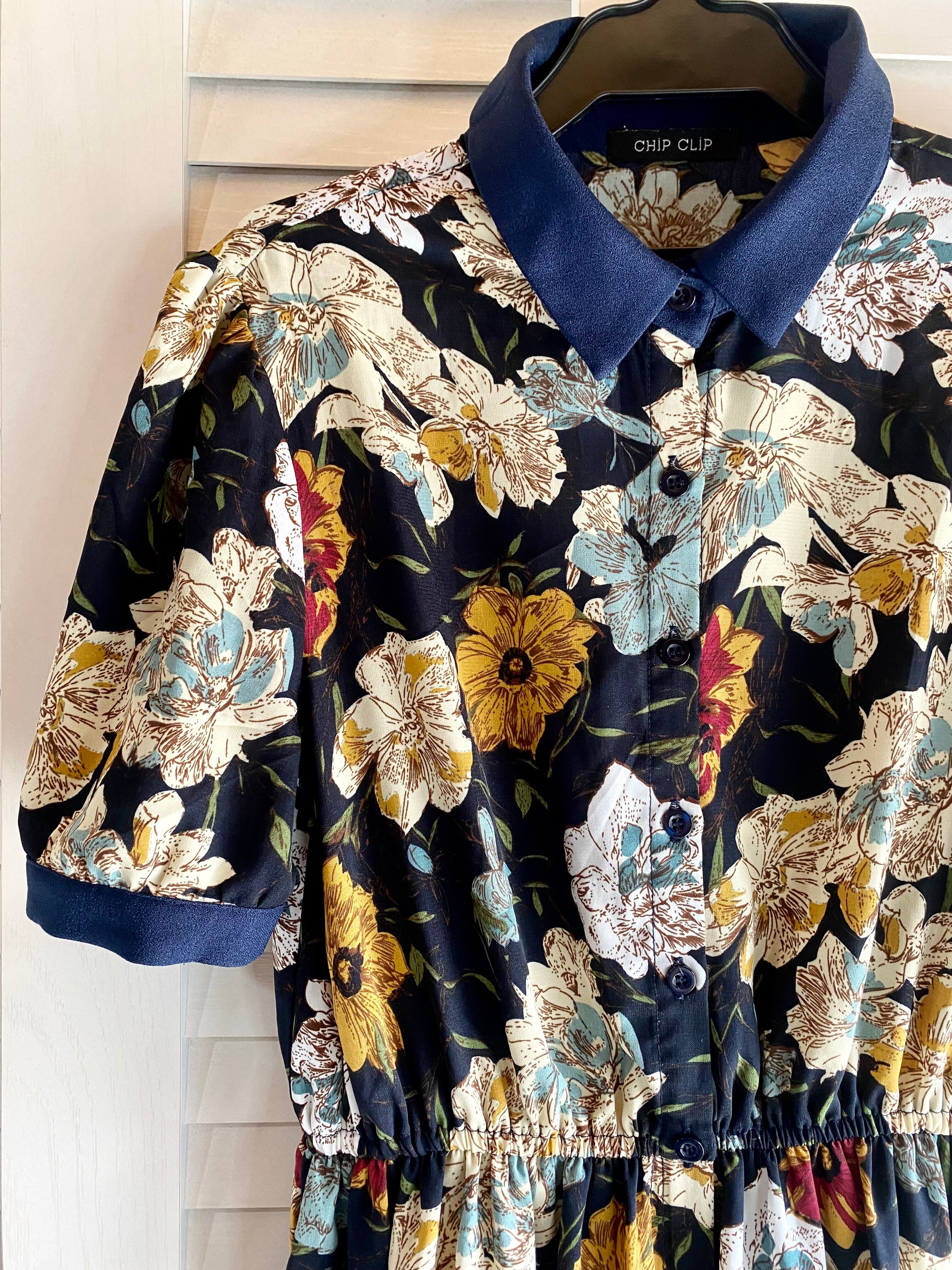 #27 CHIP CLIP BIGフラワープリント シャツカラージョーゼットワンピ ネイビー