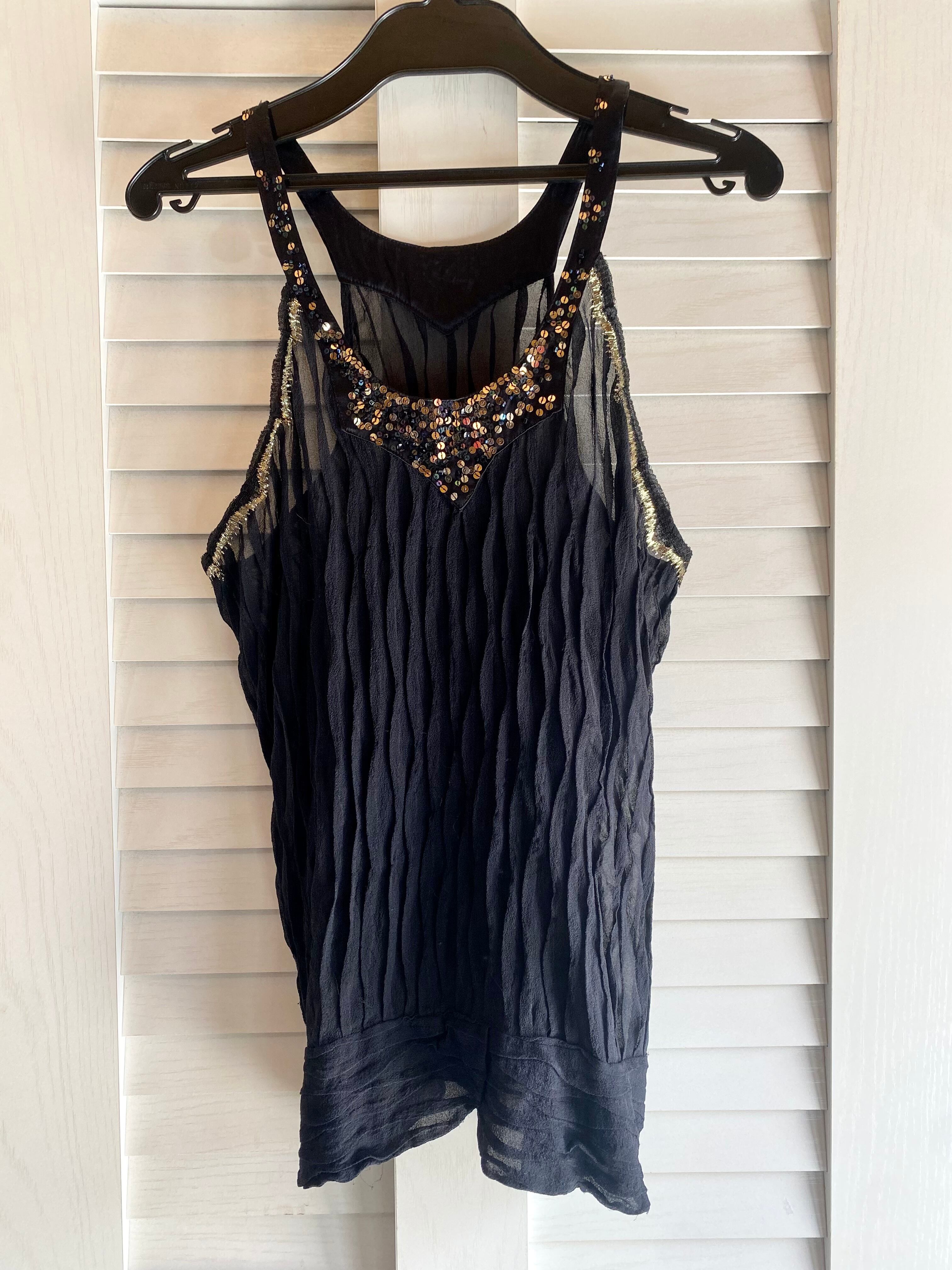#27 TSUMORI CHISATO ゴールド&オーロラスパン シルク楊柳ジョーゼット キャミソール ブラック