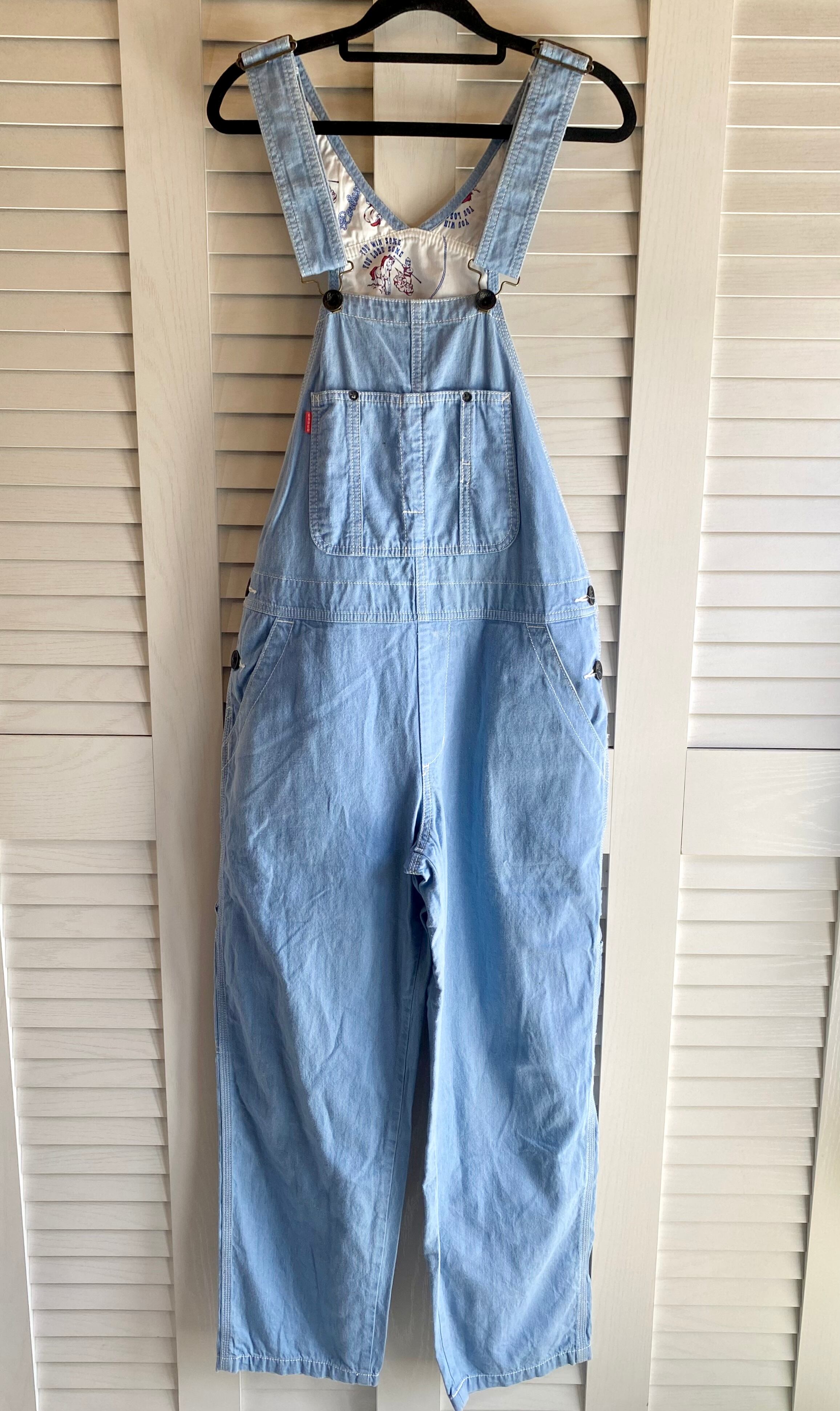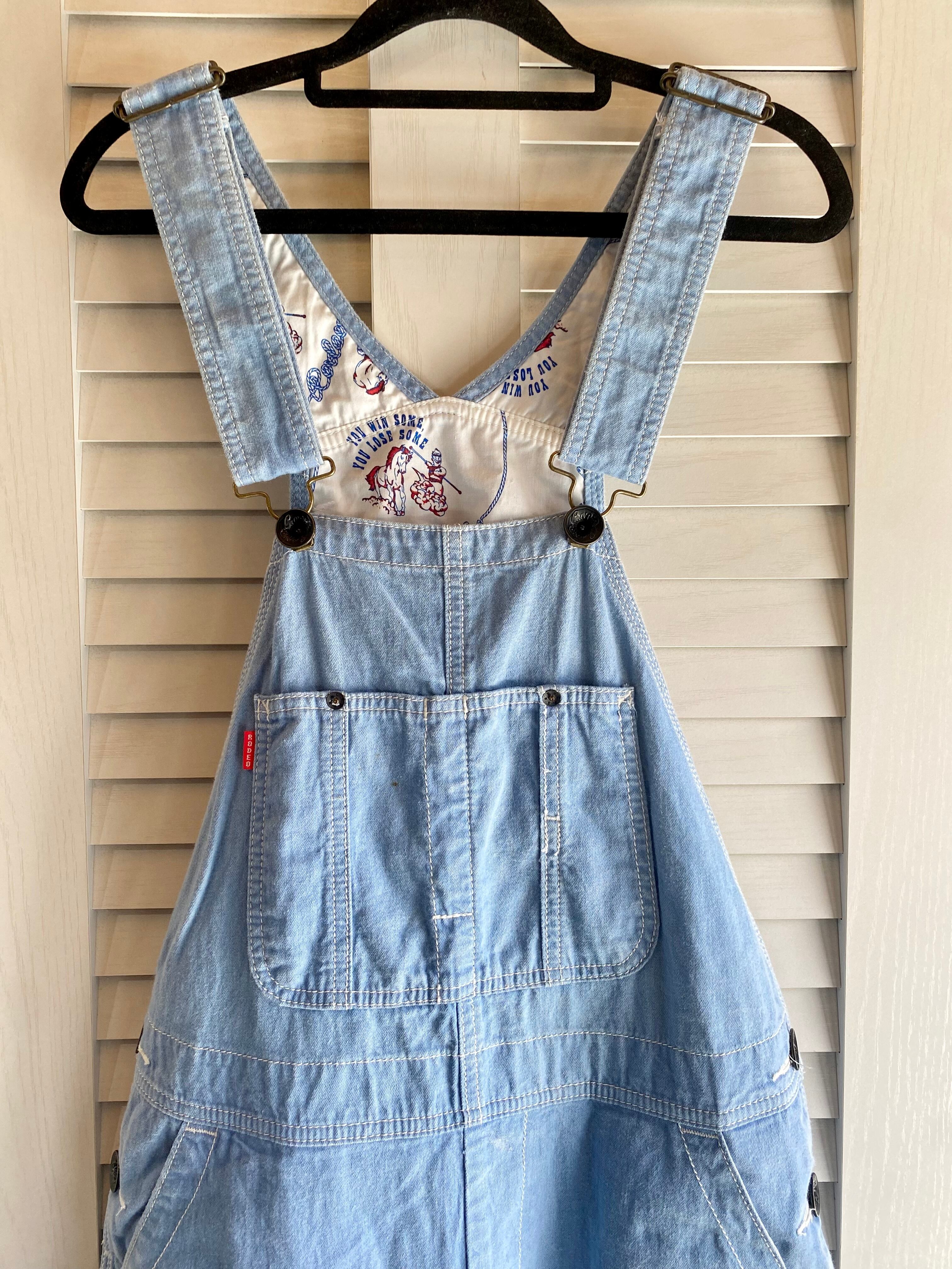 #27 RODEO CROWNS ヴィンテージ風イラスト孫悟空柄裏地!!カラーデニム サロペットパンツ ライトブルー【B品】