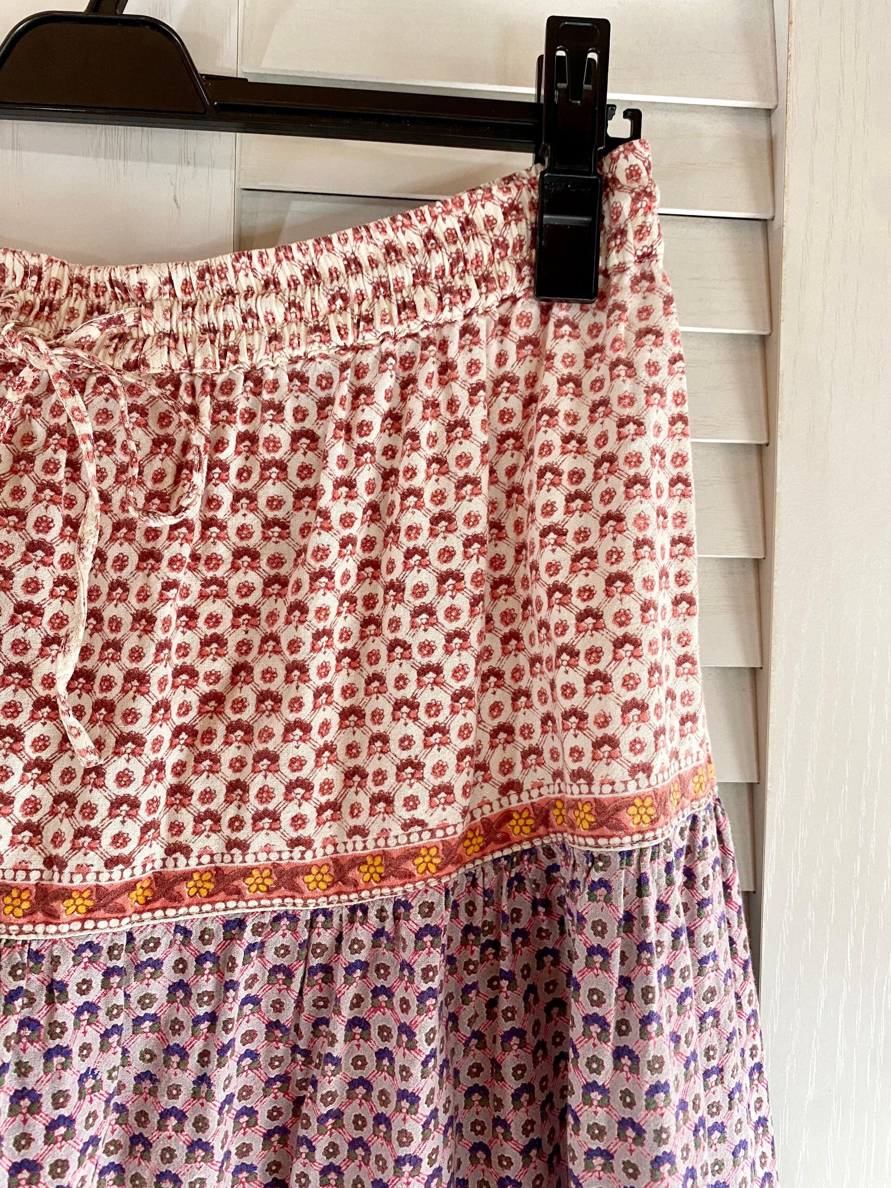 #28【インポート古着】インドコットン ティアードスカート パールトーンマルチ