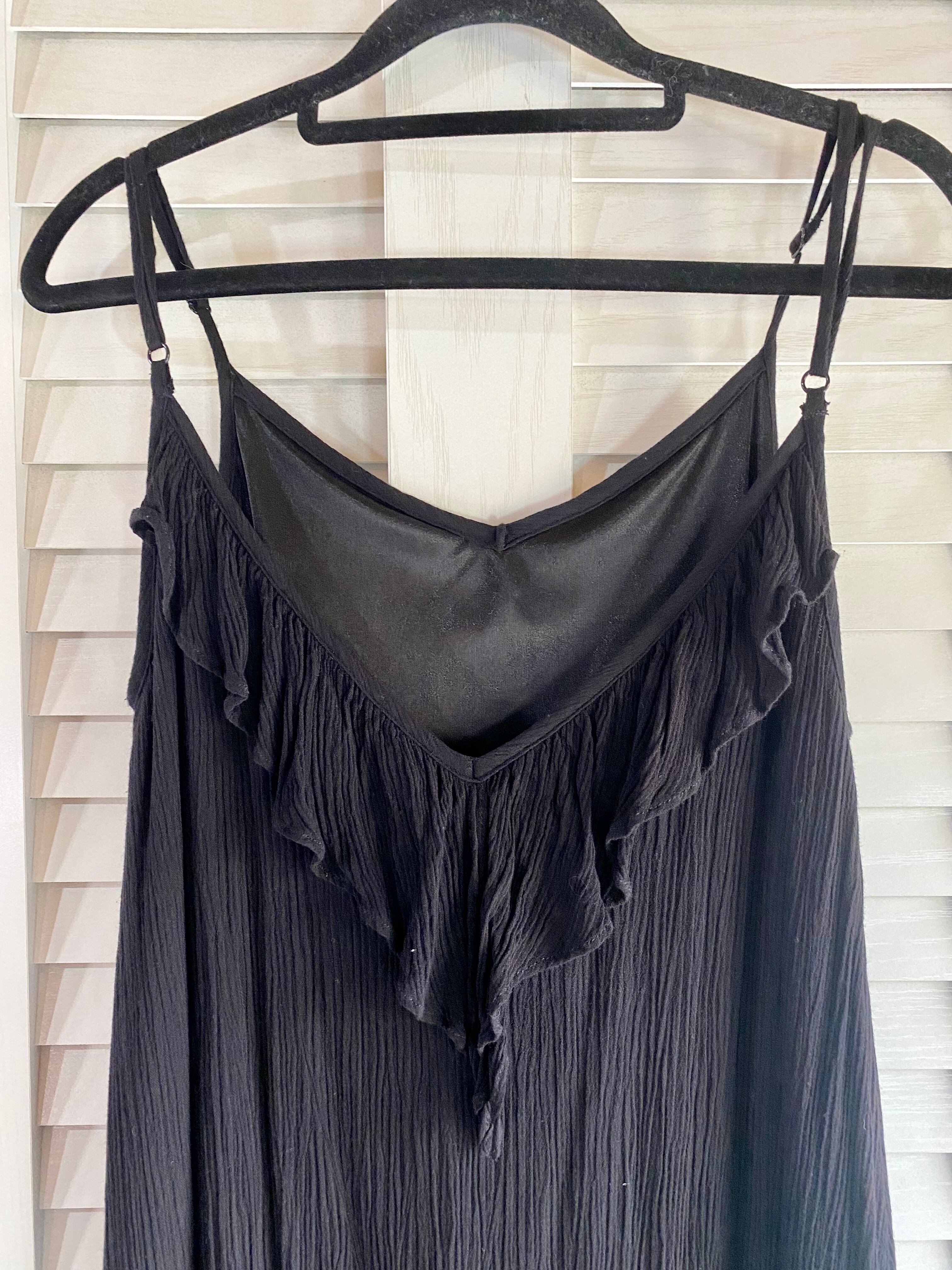 #28 DURAS 楊柳レーヨン フリルデザイン キャミワンピ ブラック