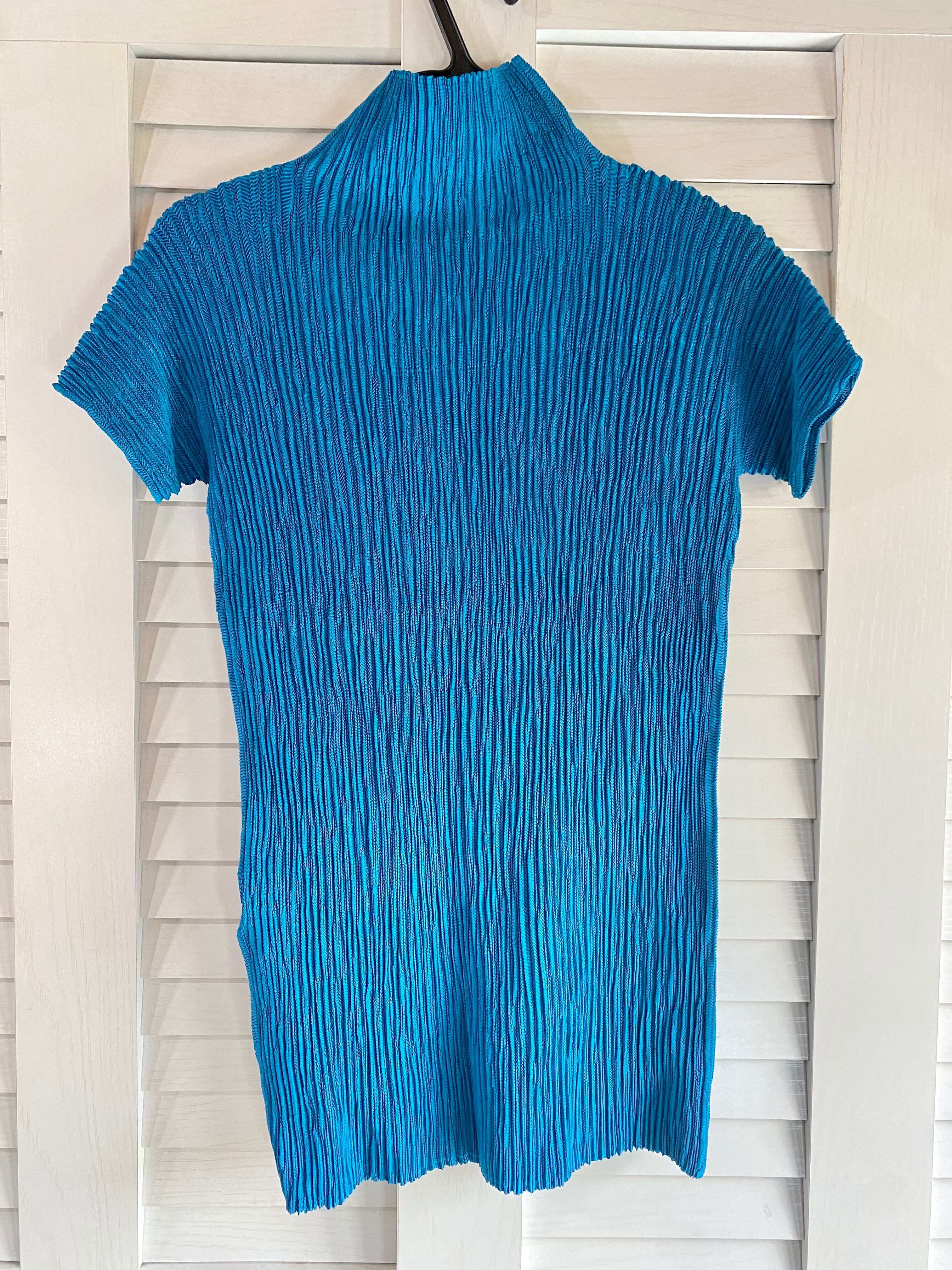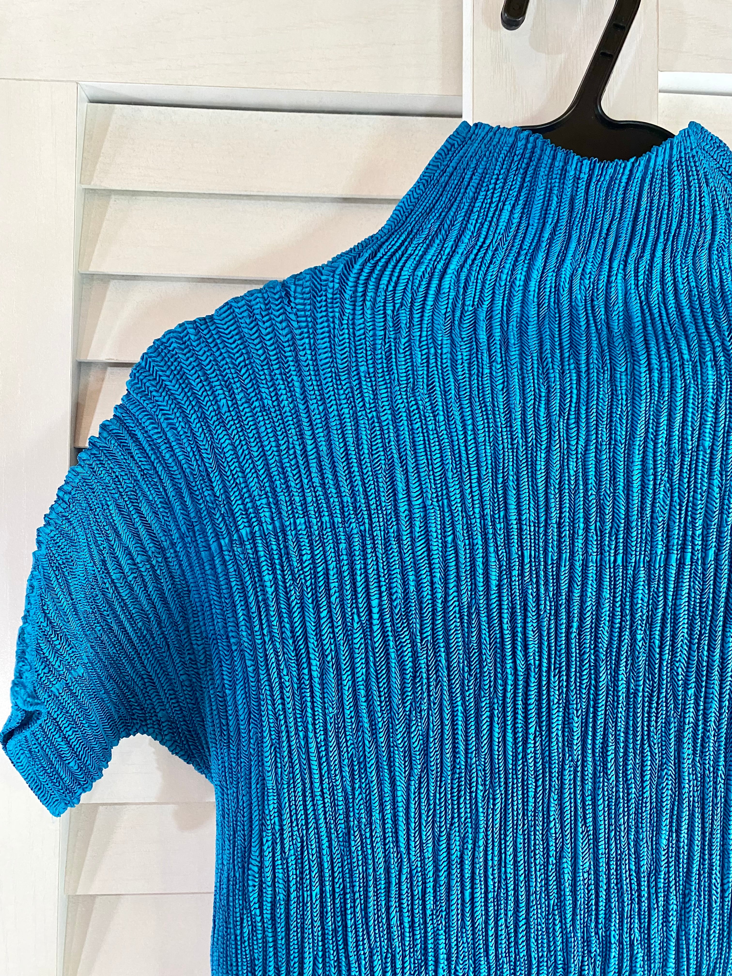 #28 HIROKO BIS プリーツ加工ストレッチメッシュブラウス ブルー | お洋服屋さん 『GOKKO』