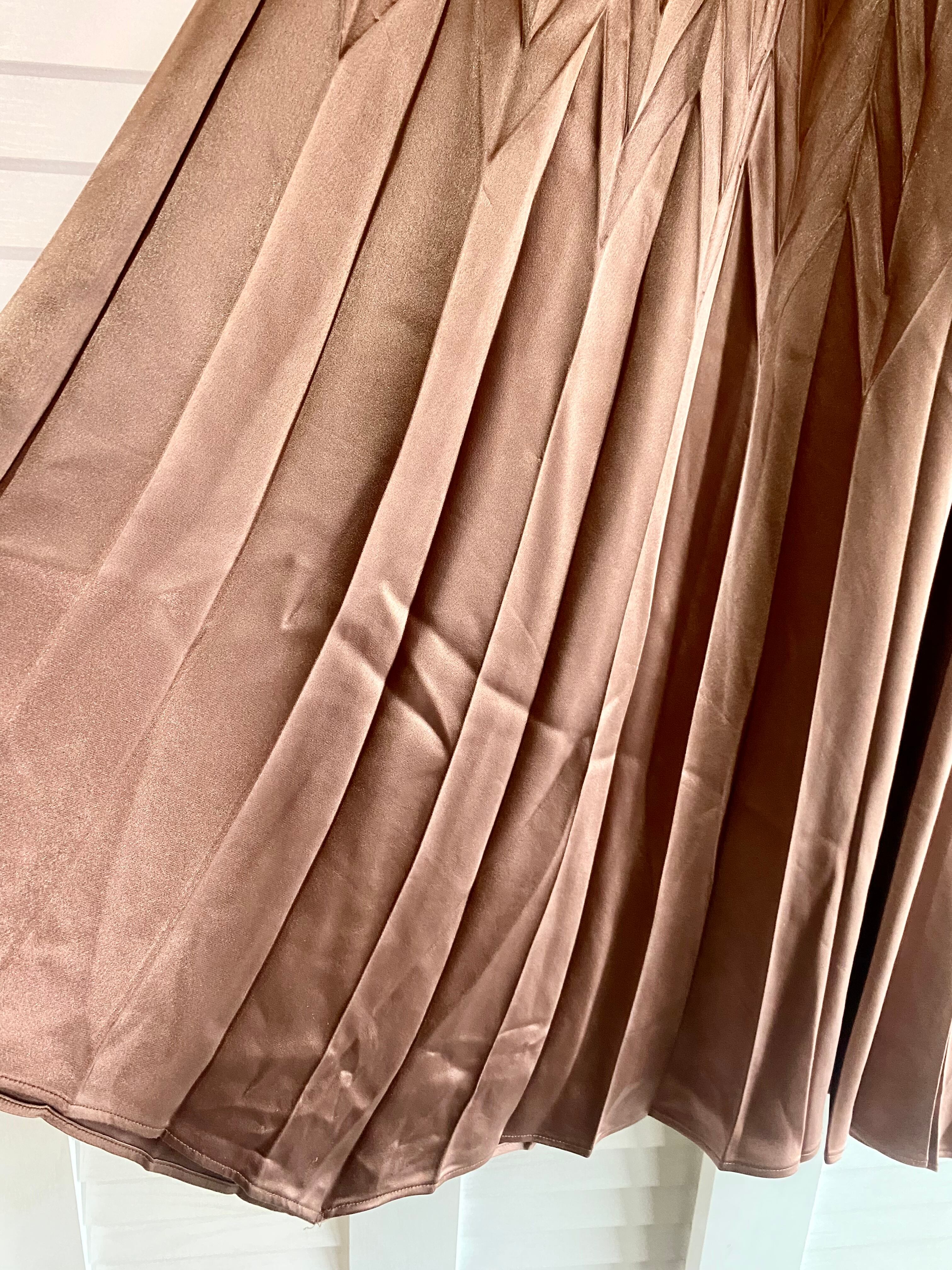#29 LOVELESS サテン変形デザイン イレギュラーヘム プリーツスカート ピンクベージュ