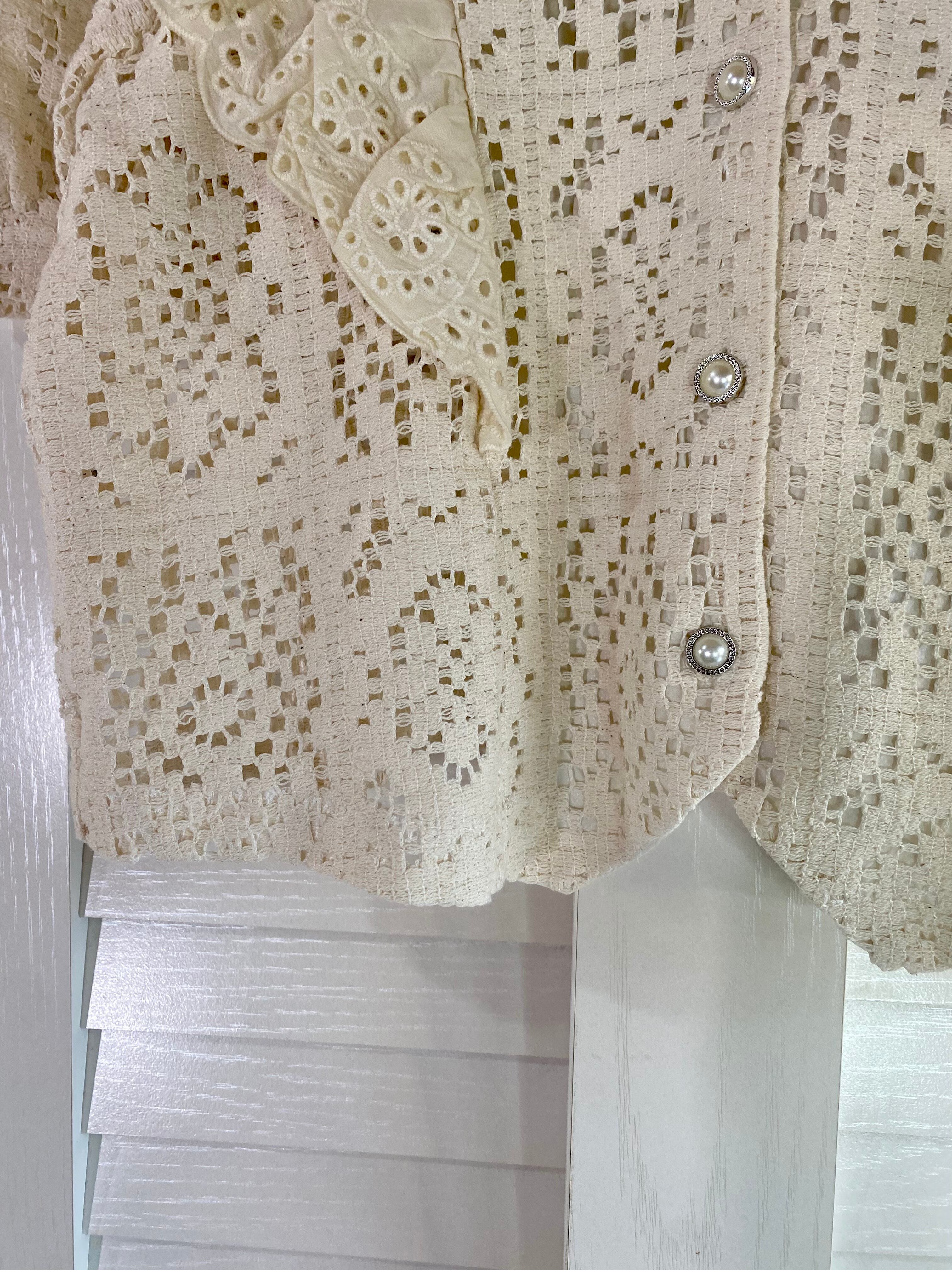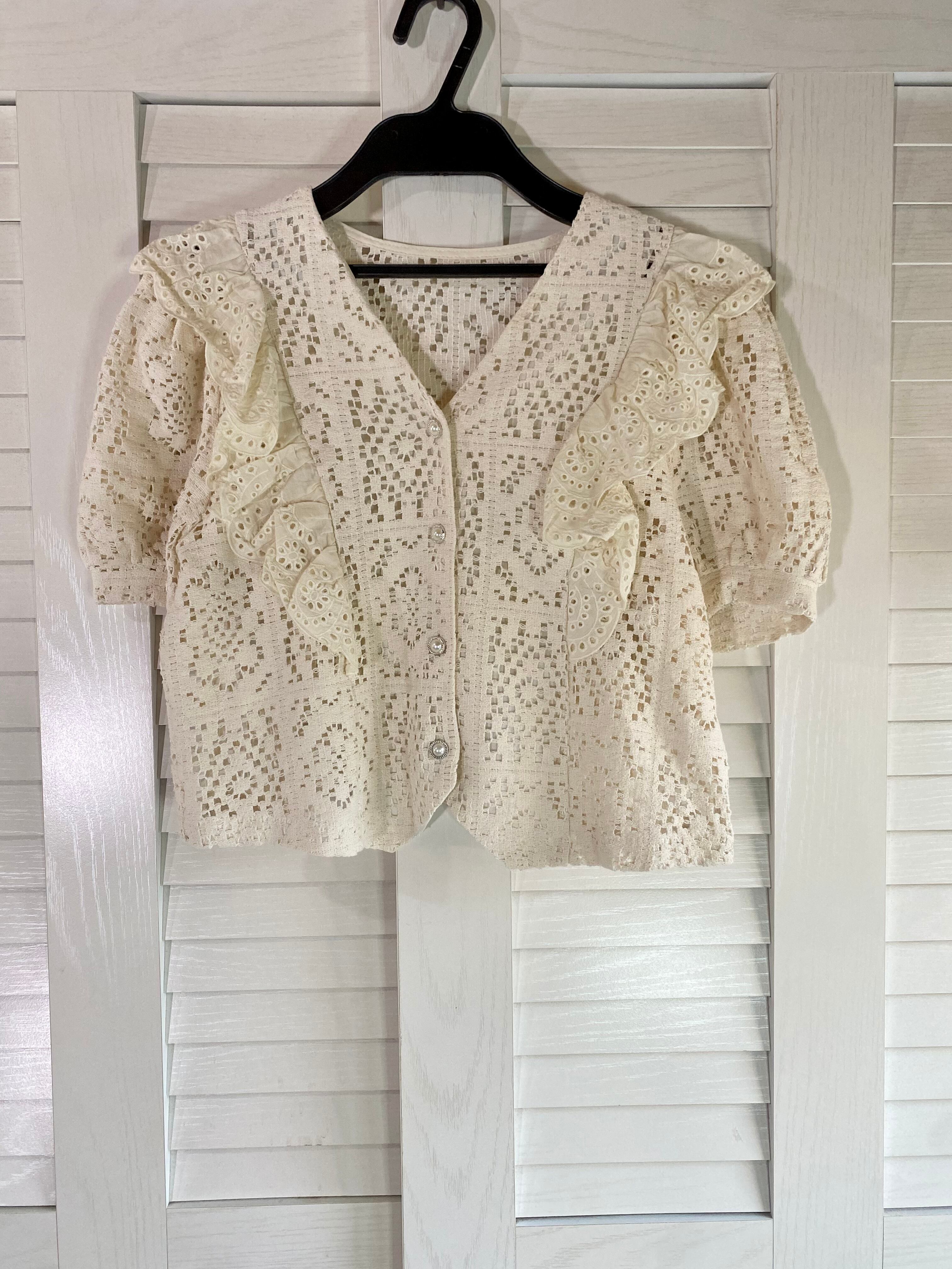 #29【デザインサンプル】 モザイクコットンレース&フリル ショート丈ブラウス アイボリー