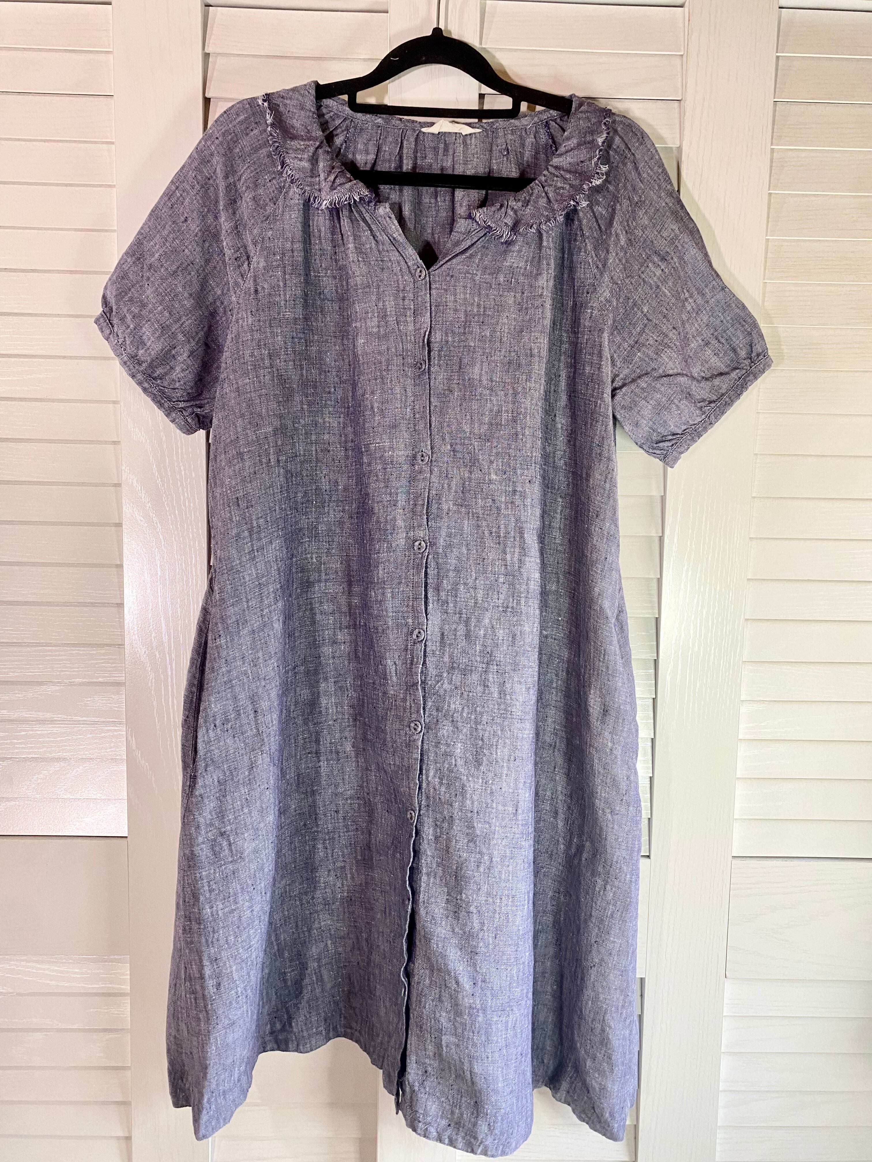 #29 Samansa mos2 リネンシャンブレー ボリュームシャツワンピ インディゴ | お洋服屋さん 『GOKKO』